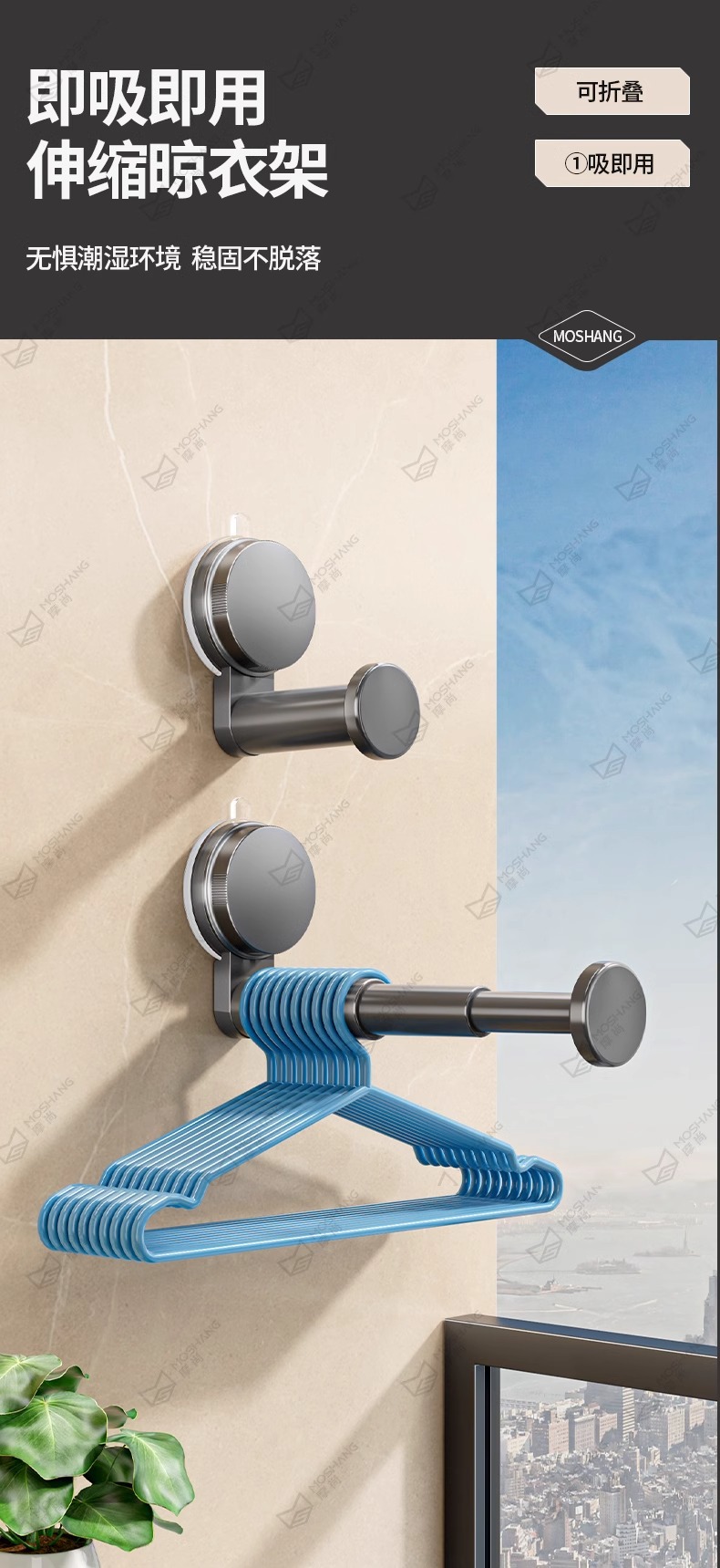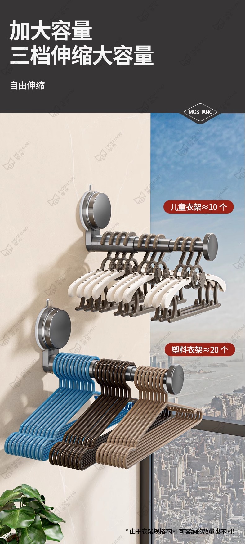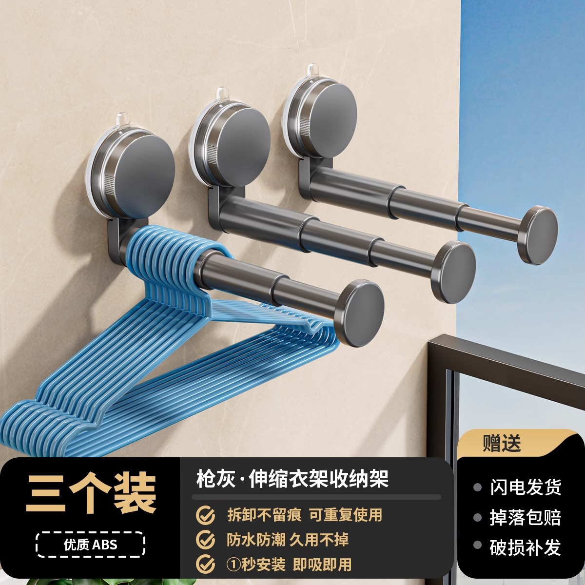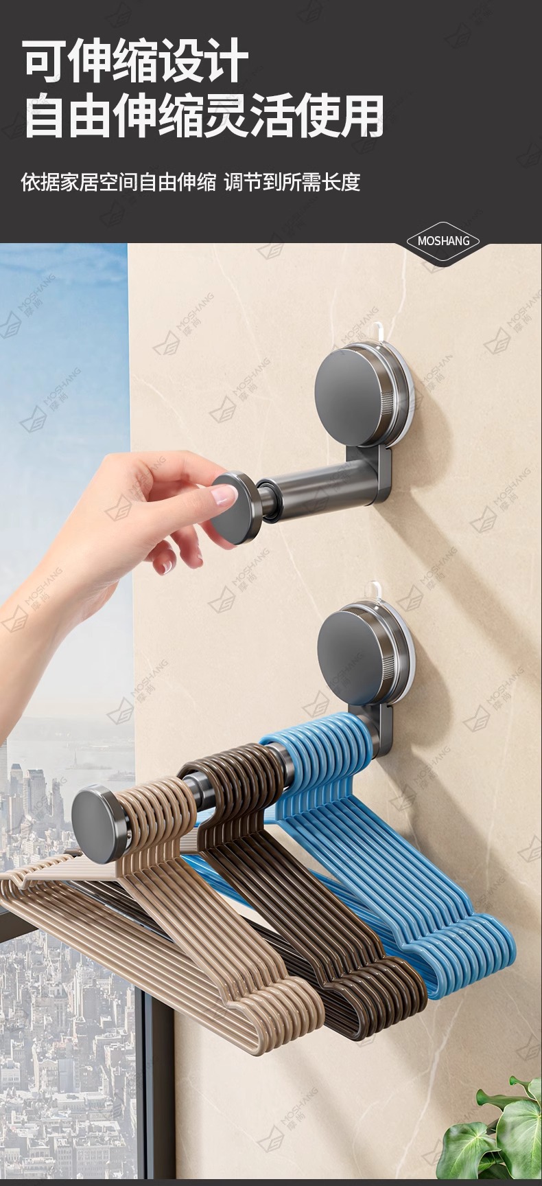 석션 컵 행거 보관 아티팩트 가정용 발코니 다기능 텔레스코픽 비 펀치 벽 교수형 원활한 옷 랙스토어 가기