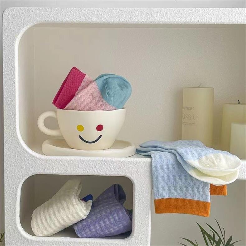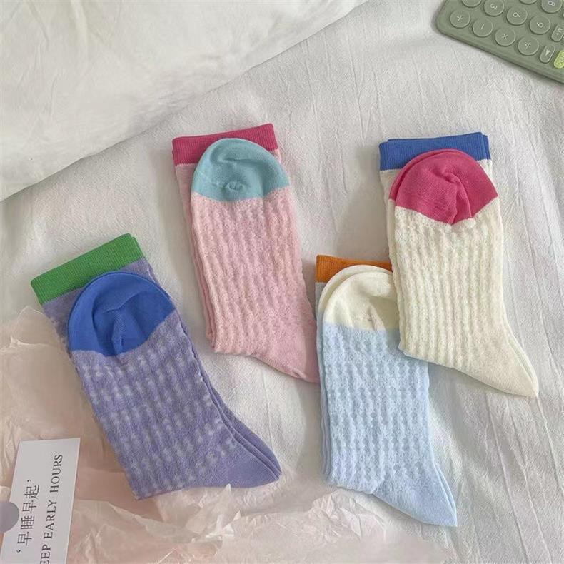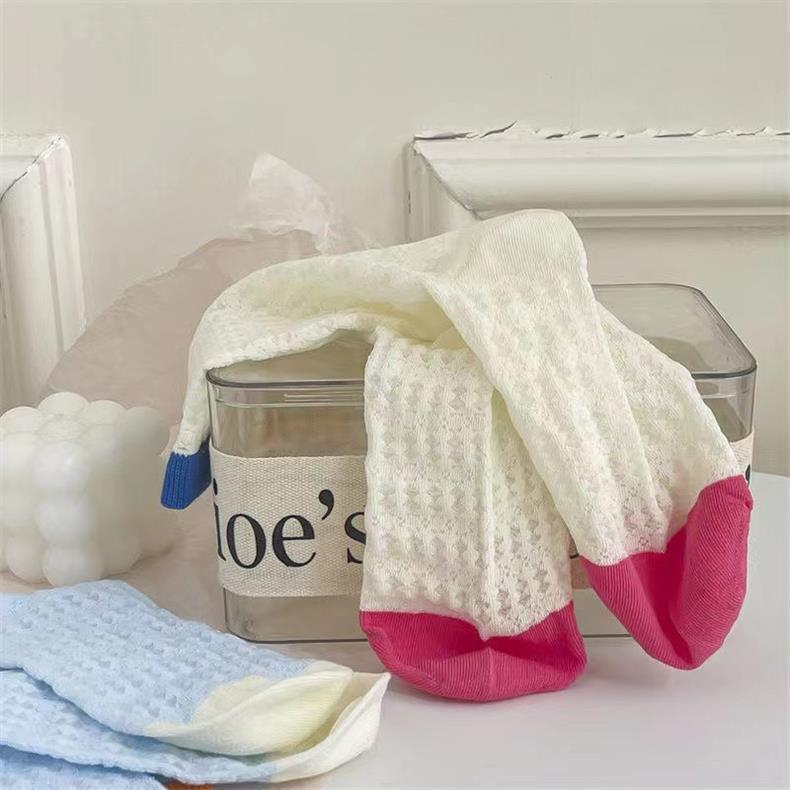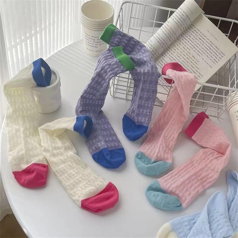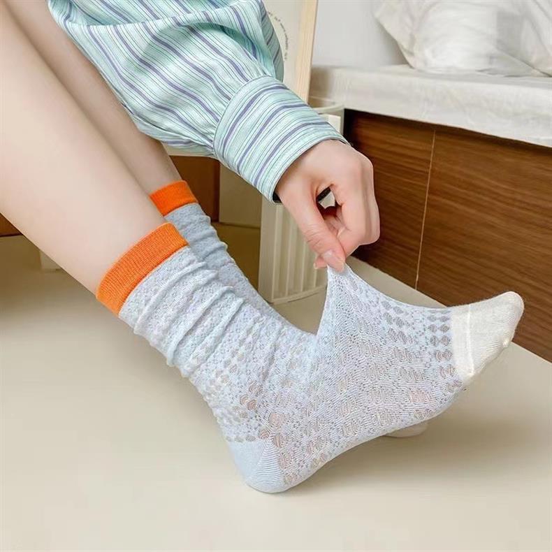 여름 메쉬 할로우 울트라 얇은 양말 여성용 달콤한 콘트라스트 컬러 더미 스타킹 도파민 컬러 미드 튜브 세련된 양말스토어 가기