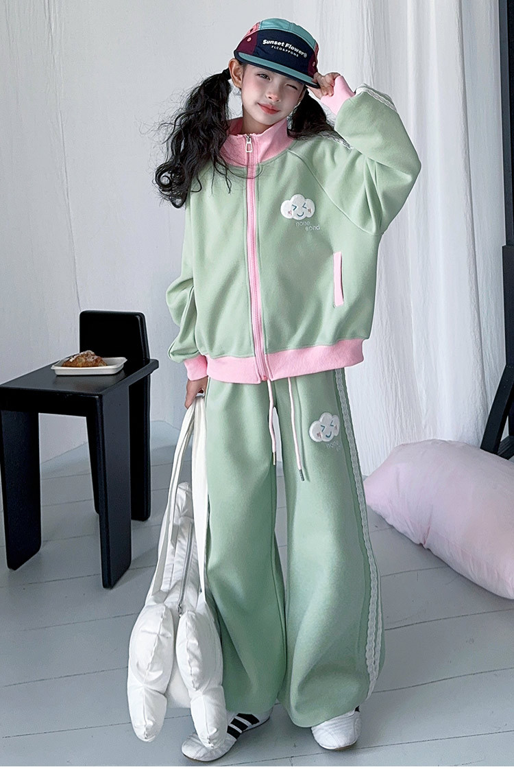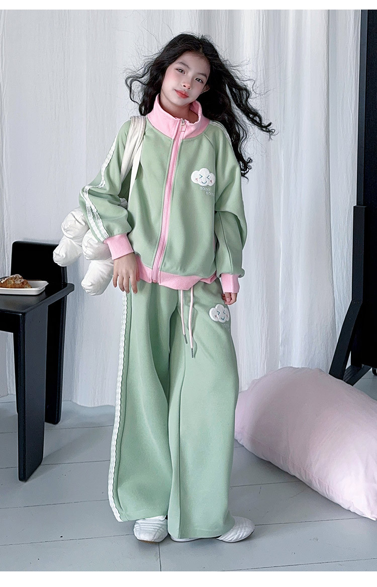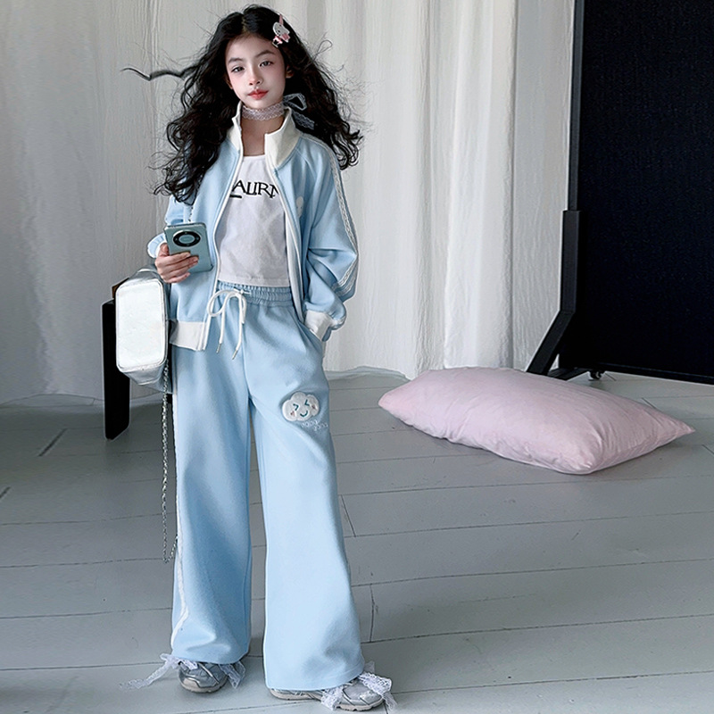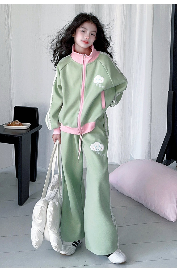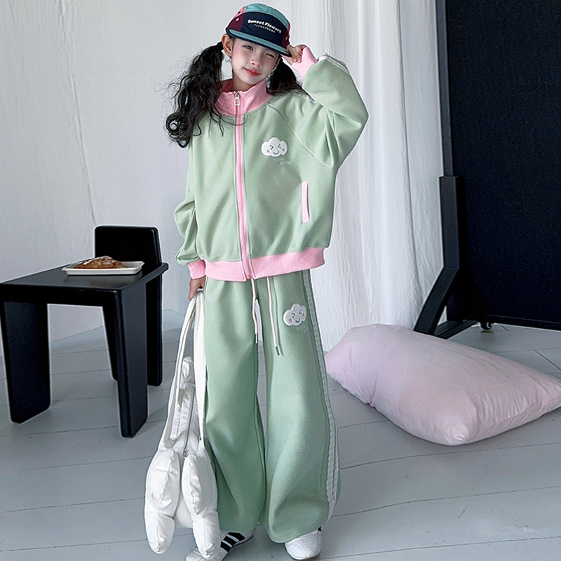 소녀의 봄 가을 스웨트 셔츠 세트 2025 새로운 서양식 소녀 한국 스타일 봄 원피스 여아 레저 스포츠 투피스 세트