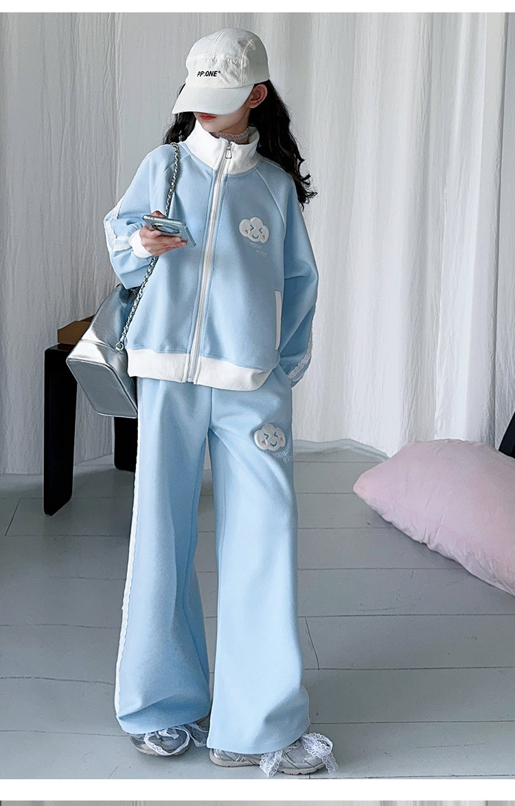 소녀의 봄 가을 스웨트 셔츠 세트 2025 새로운 서양식 소녀 한국 스타일 봄 원피스 여아 레저 스포츠 투피스 세트스토어 가기