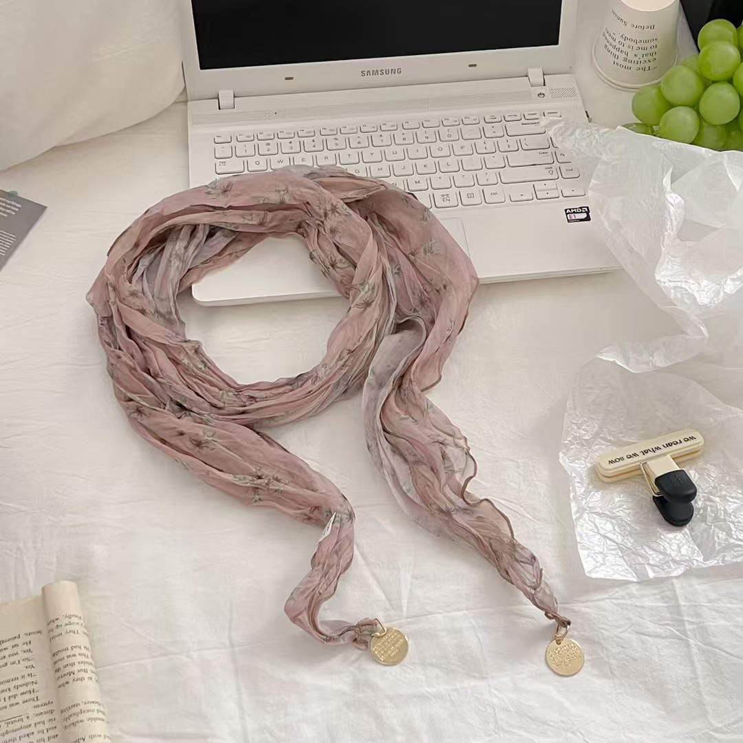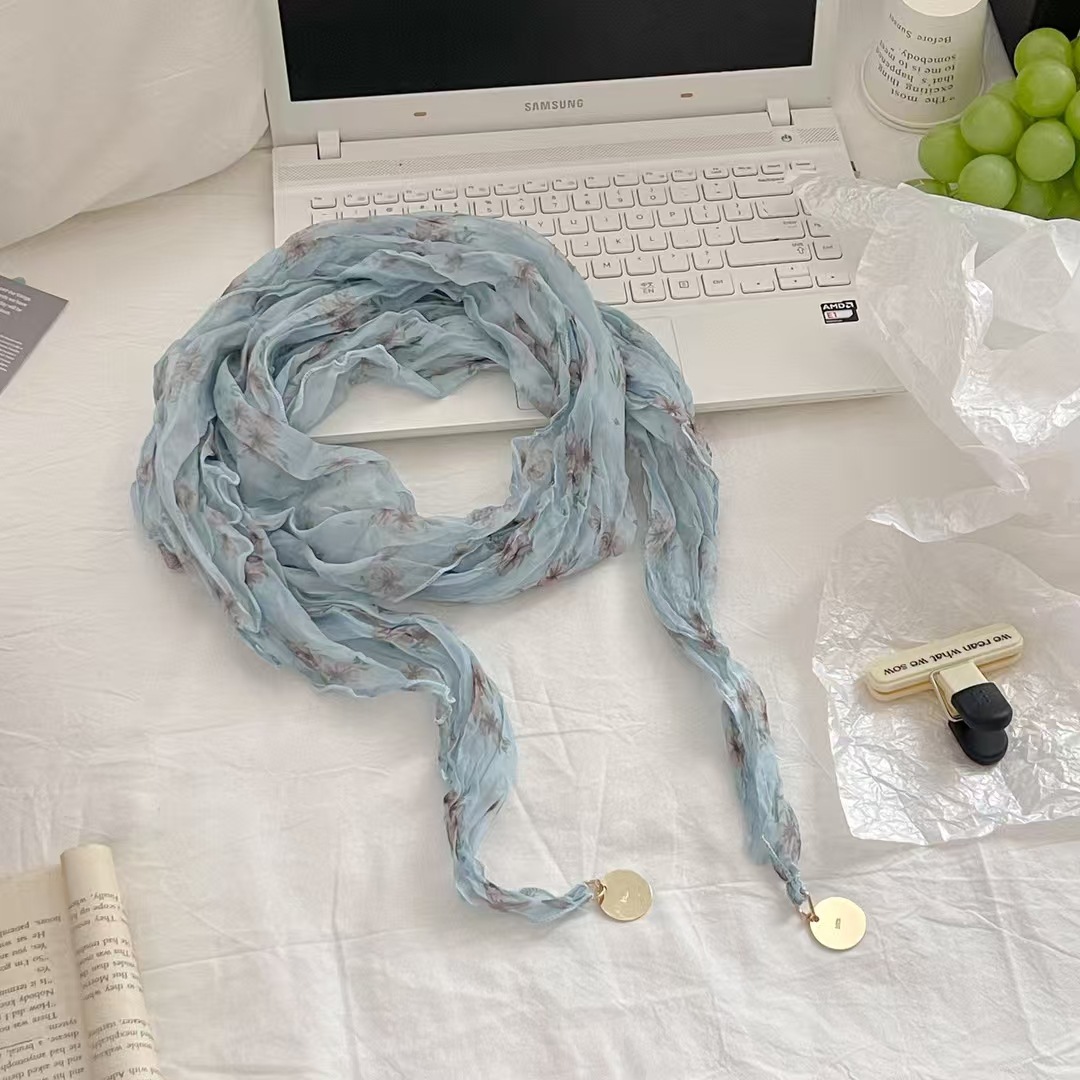 한국산 신선한 꽃 면화와 리넨 주름 봄과 여름 새로운 스타일 스카프 여성 펜던트 디자인 작은 스카프 면화와 리넨 스카프스토어 가기