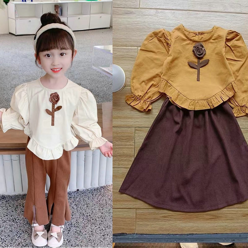 여자 세트 3 차원 장미 셔츠 스플릿 플레어 팬츠 스커트 25 봄과 가을 새로운 대외 무역 아동복