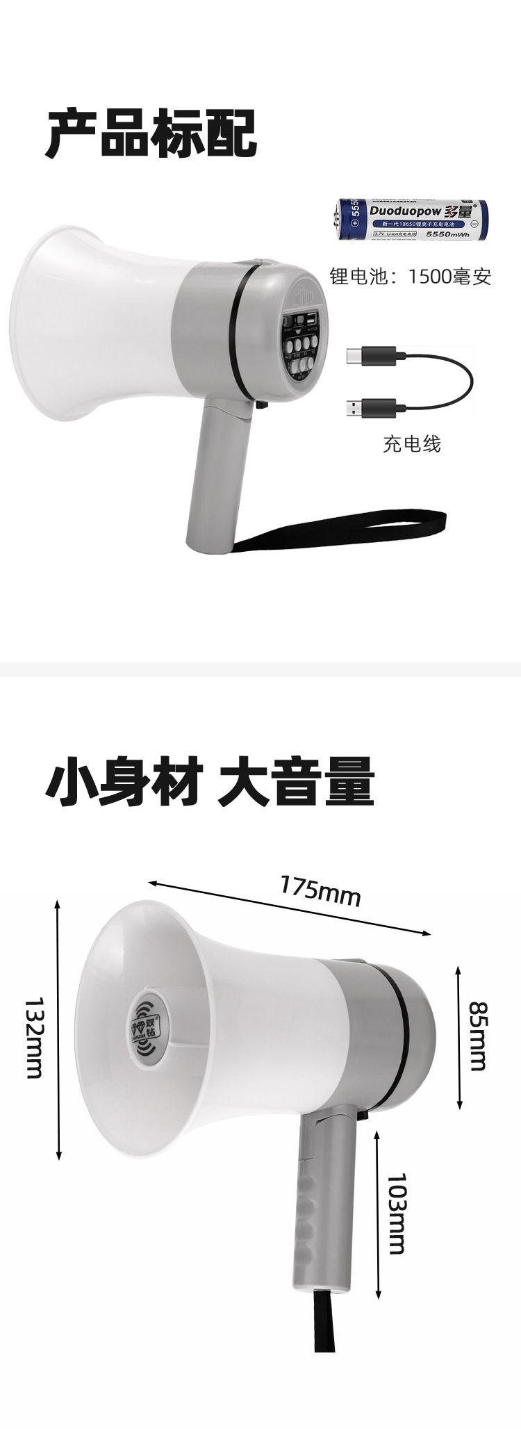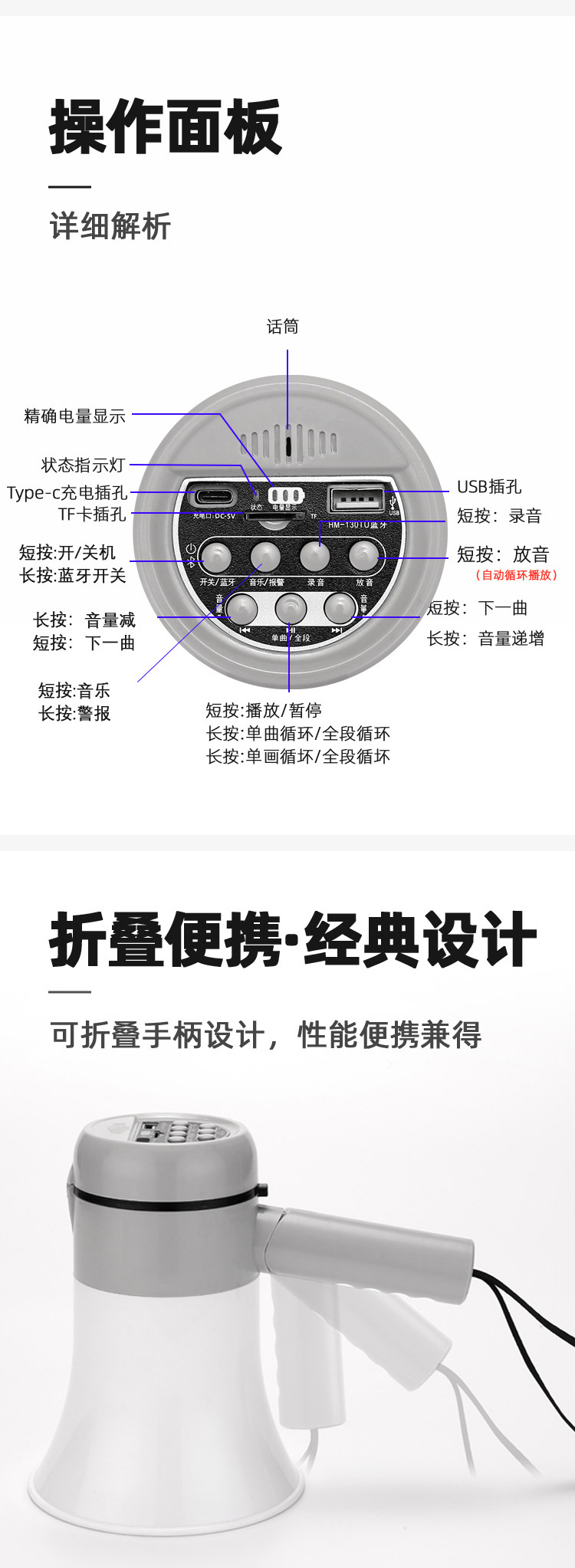 더블 드릴 30W 고출력 핸드 헬드 라우드 스피커 접이식 야외 실속 녹음 경적 C 라우드 스피커