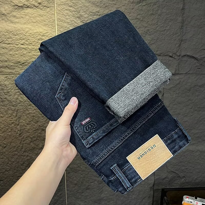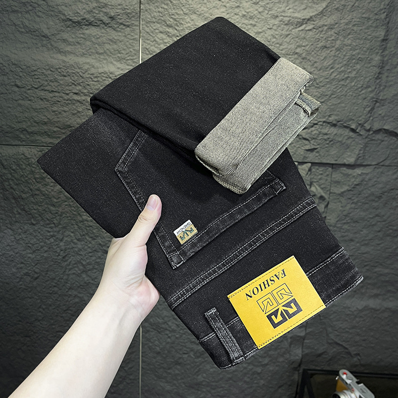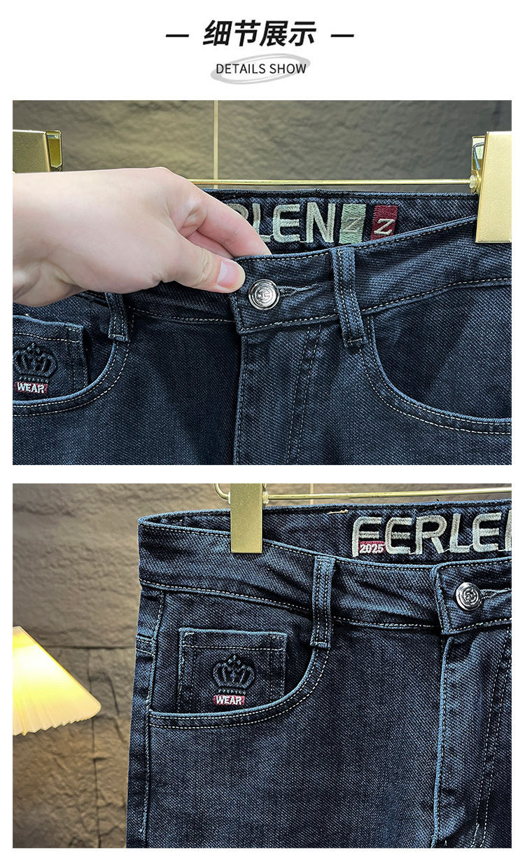 2025 남자의 새로운 청바지 남자의 새로운 가을 슬림 핏 작은 스트레이트 팬츠 수 놓은 하이 스트리트 트렌디 바지스토어 가기