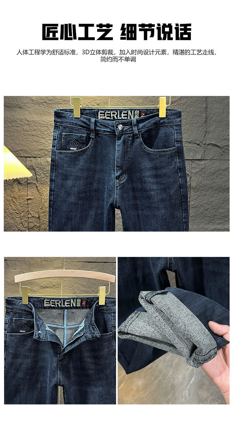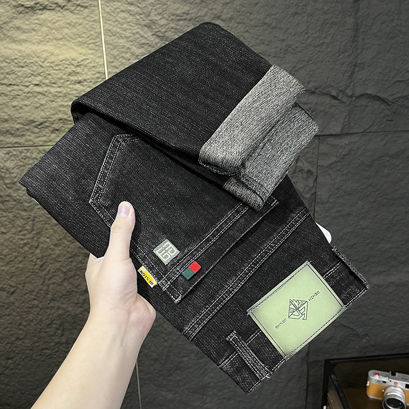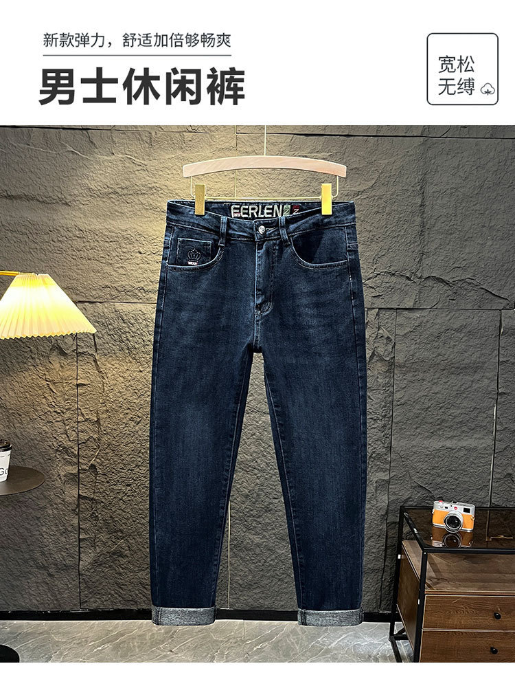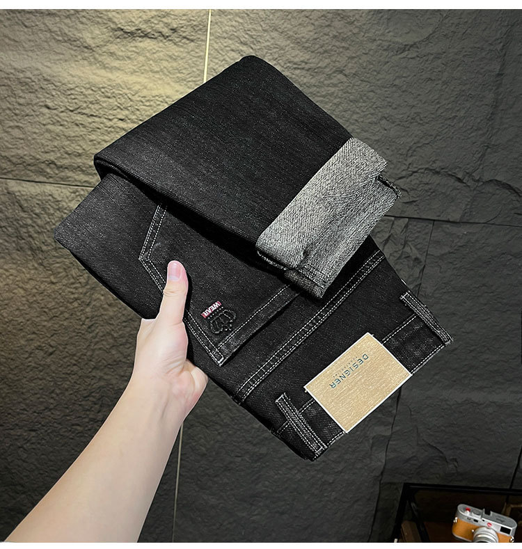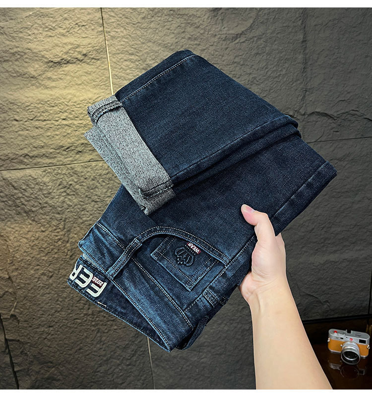 2025 남자의 새로운 청바지 남자의 새로운 가을 슬림 핏 작은 스트레이트 팬츠 수 놓은 하이 스트리트 트렌디 바지