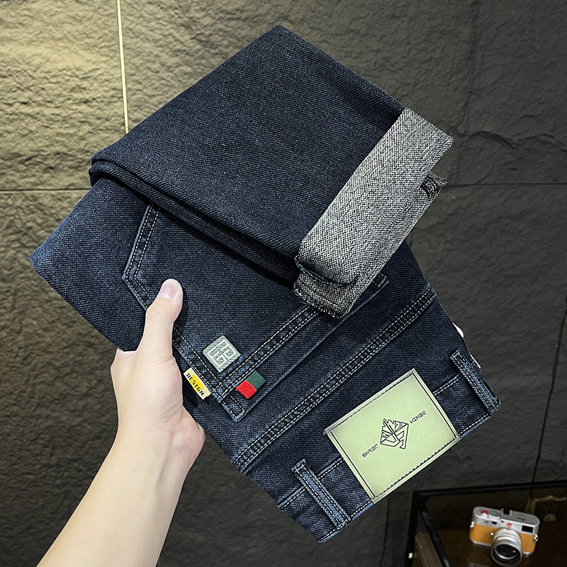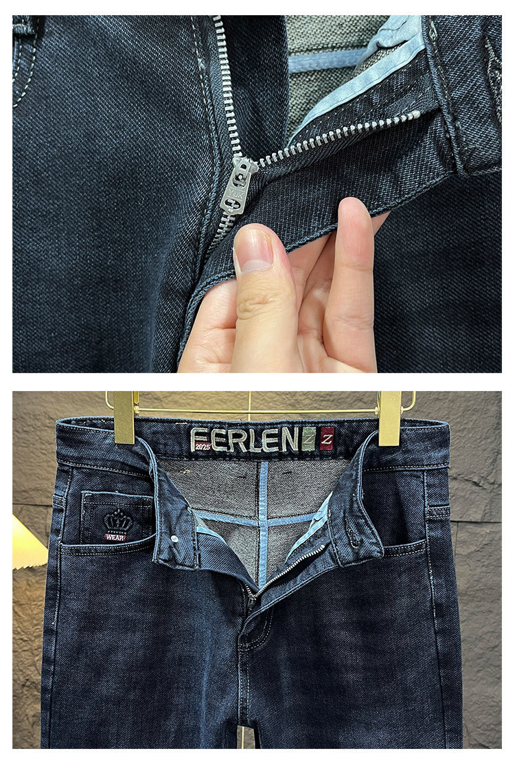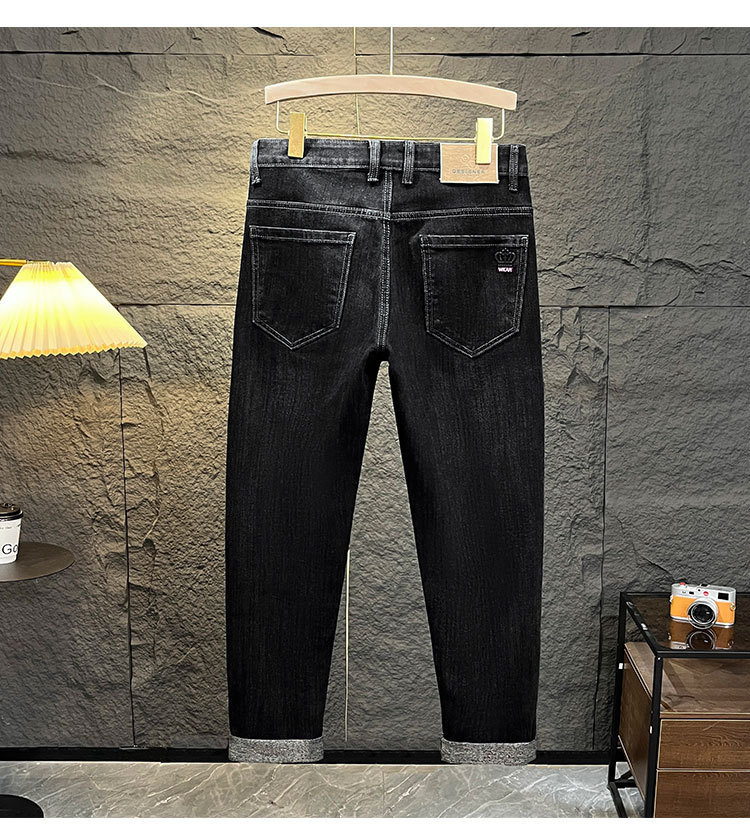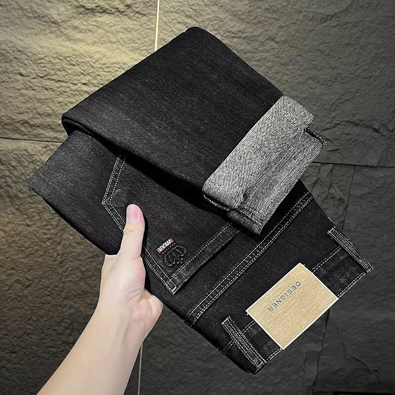 2025 남자의 새로운 청바지 남자의 새로운 가을 슬림 핏 작은 스트레이트 팬츠 수 놓은 하이 스트리트 트렌디 바지
