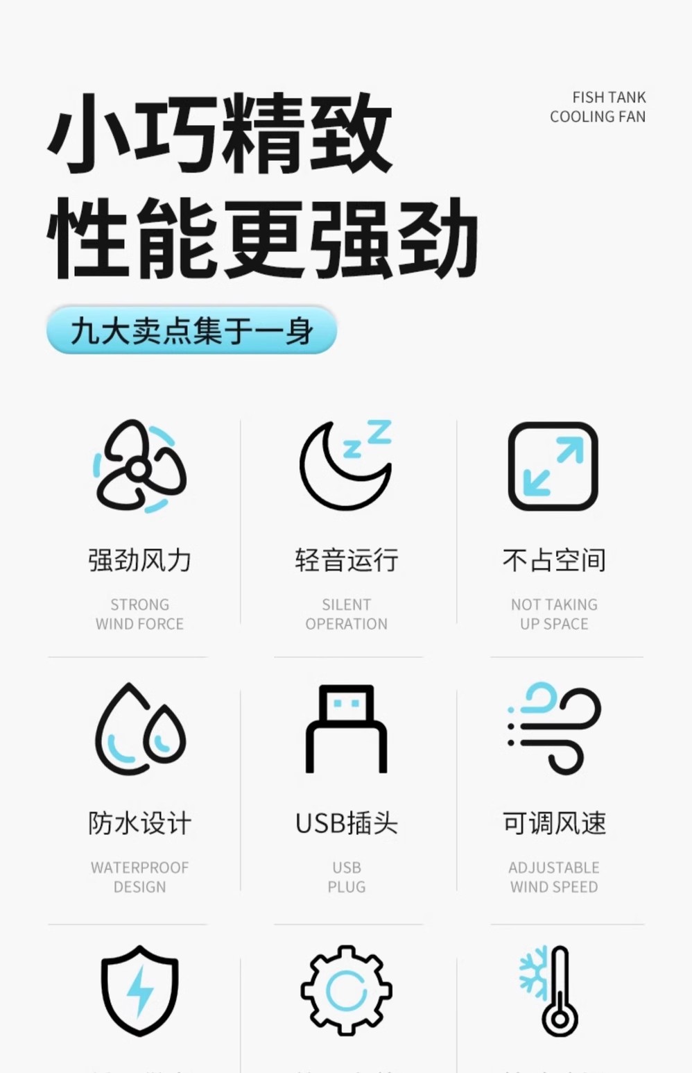 어항 거북이 탱크 물 잔디 냉각 냉각 냉각 팬 수족관 냉각기 냉장 막대 강력한 작은 음소거 전력 절약 냉각스토어 가기