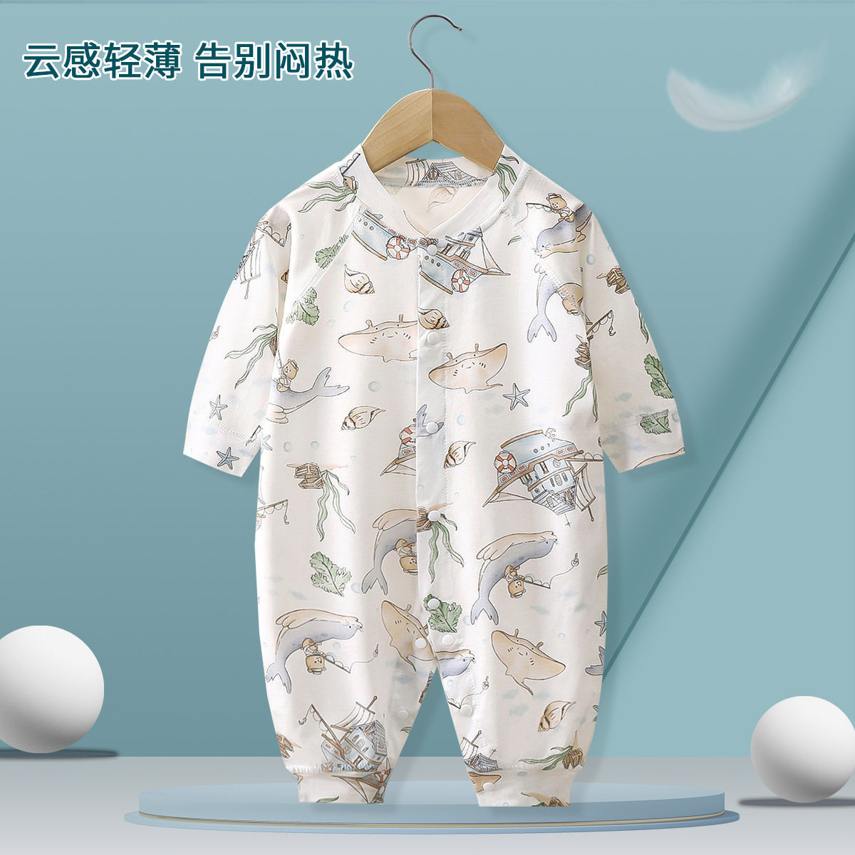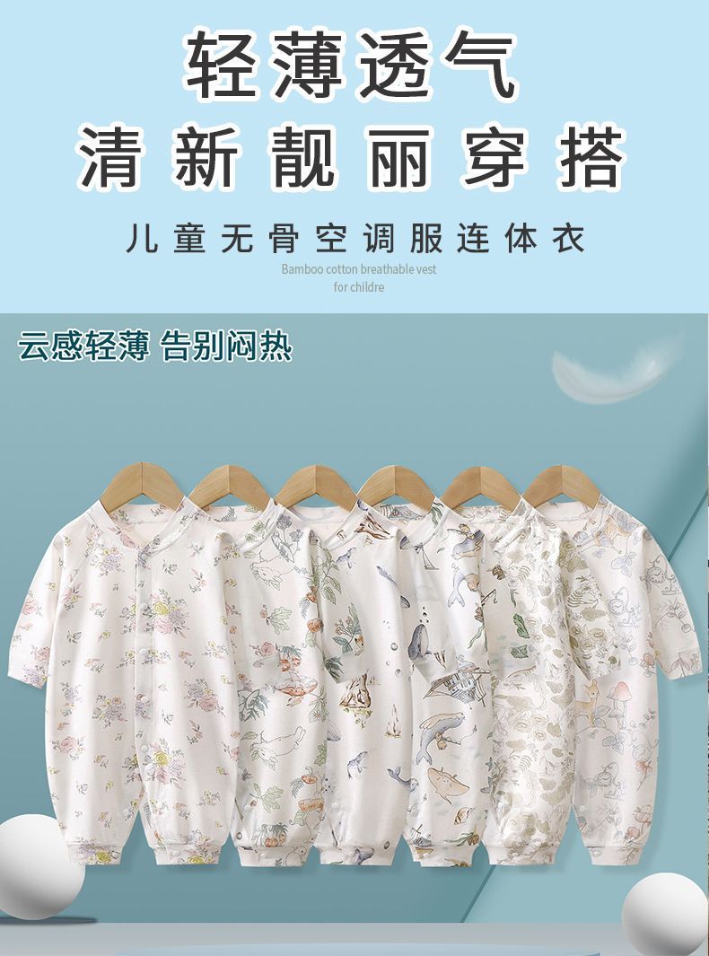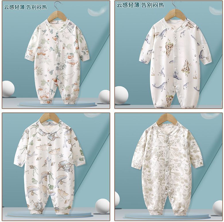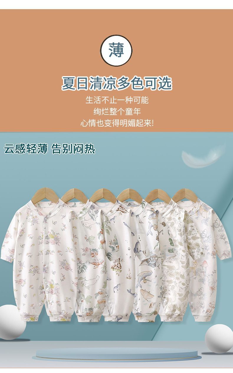 여름 얇은 아기 점프 수트 긴 소매 뼈없는 봄과 여름 신생아 옷 소년 소녀 아기 하 옷 등반 파자마