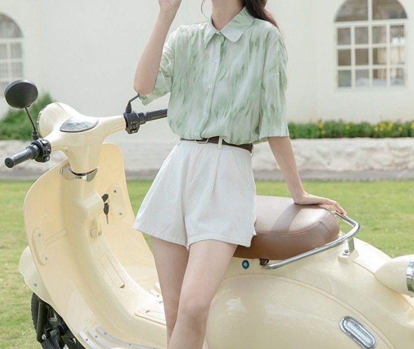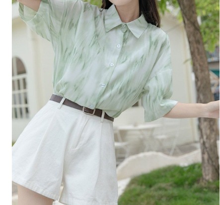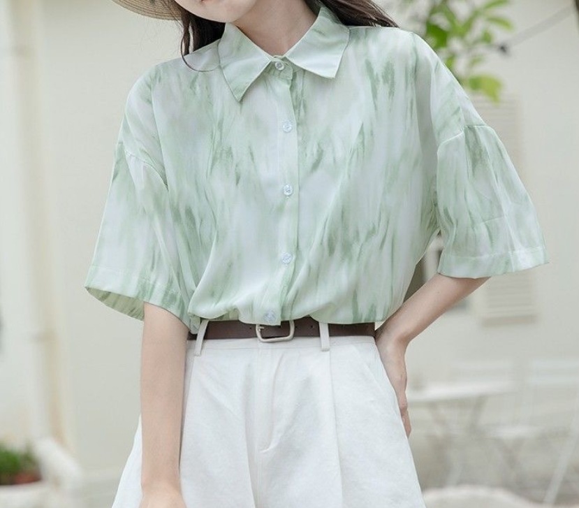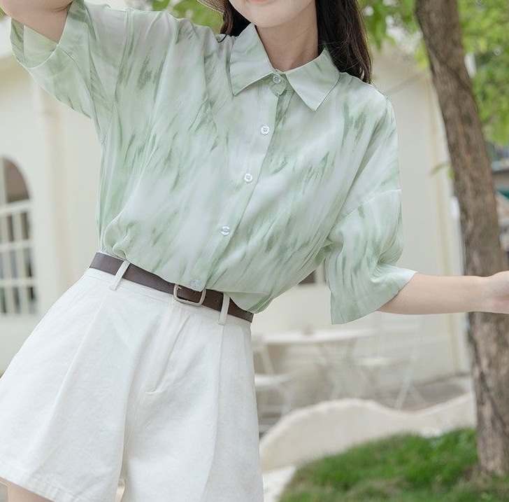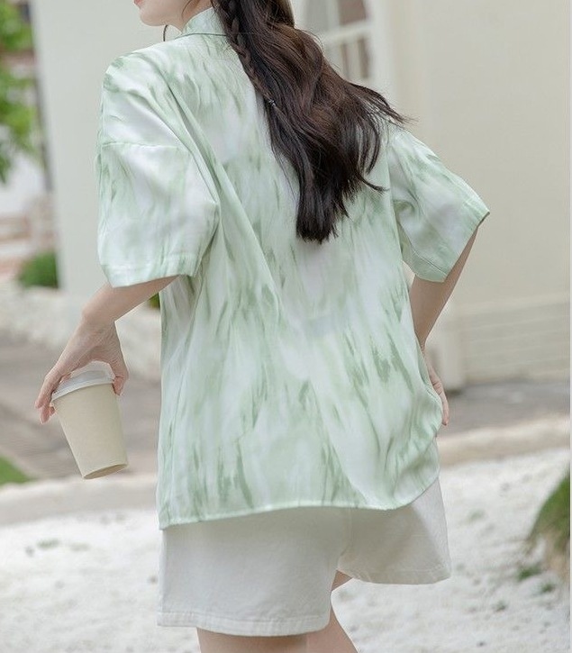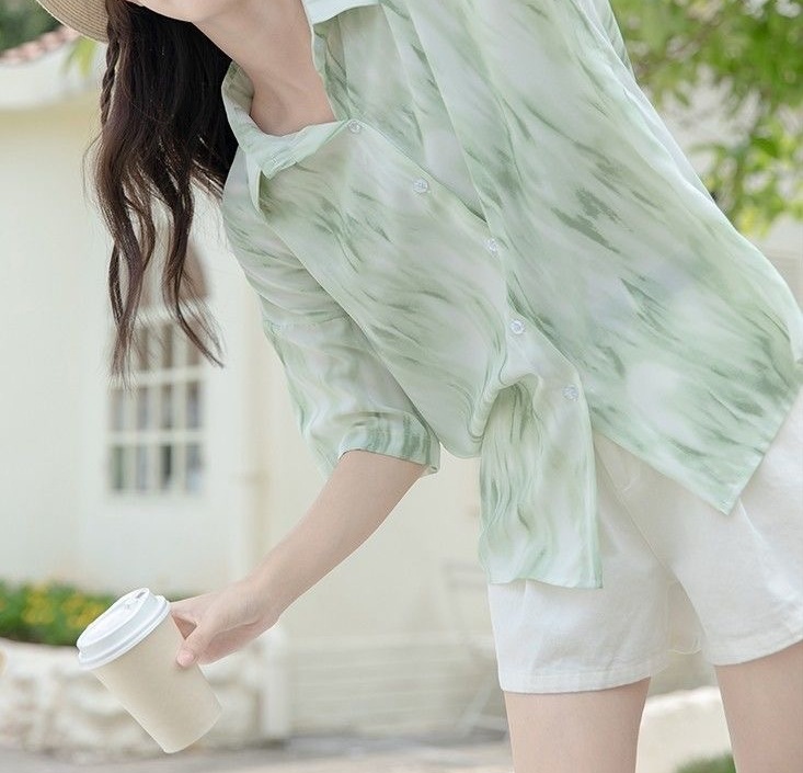 Ins 홍콩 스타일 민트 그린 셔츠 얇은 여성 202 여름 디자인 센스 루즈 인쇄 및 염색 탑 카디건 Ins 트렌디스토어 가기