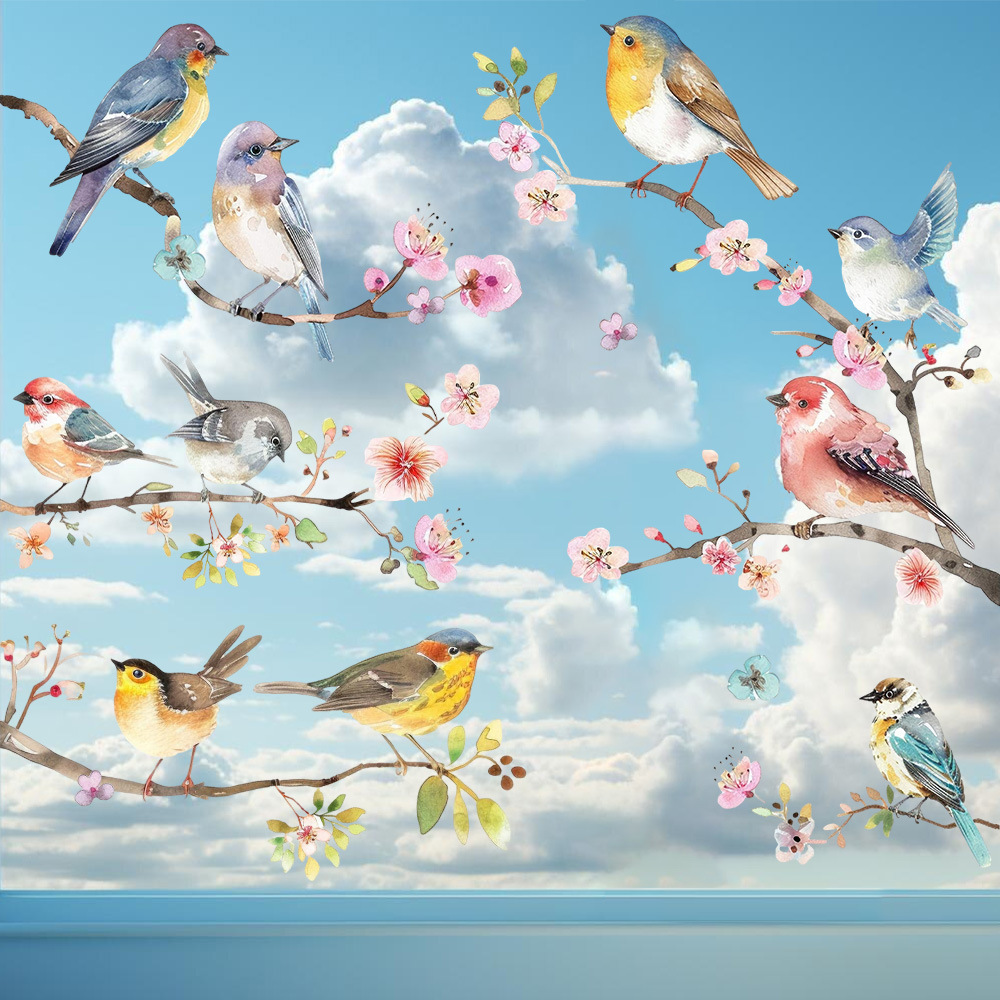 Yiyao JD3616 페인트 복숭아 꽃 지점 새 유리 스티커 거실 홈 장식 이동식 양면 정전기 스티커스토어 가기