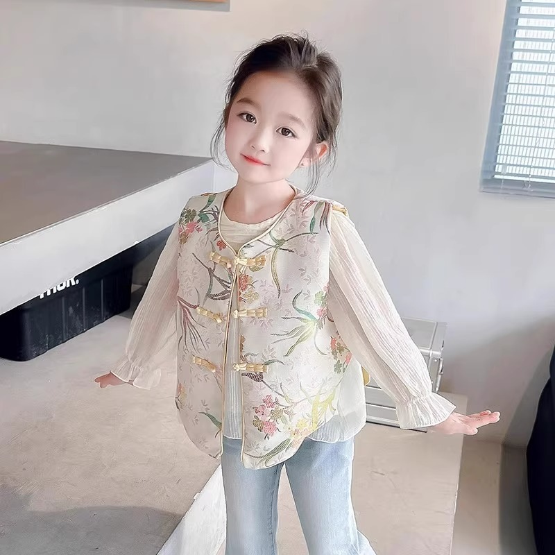 소녀 2025 봄과 가을 아기 소녀를위한 새로운 국가 스타일 중국 조끼 올 매치 새로운 중국 가을 얇은 조끼 트렌디 조끼스토어 가기