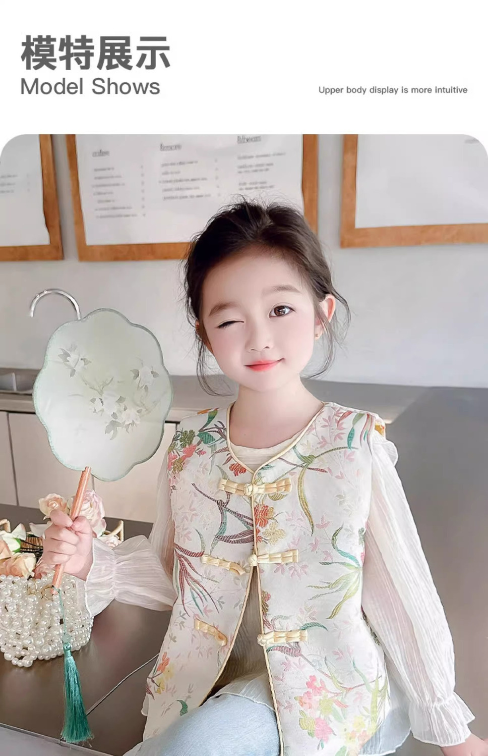 소녀 2025 봄과 가을 아기 소녀를위한 새로운 국가 스타일 중국 조끼 올 매치 새로운 중국 가을 얇은 조끼 트렌디 조끼