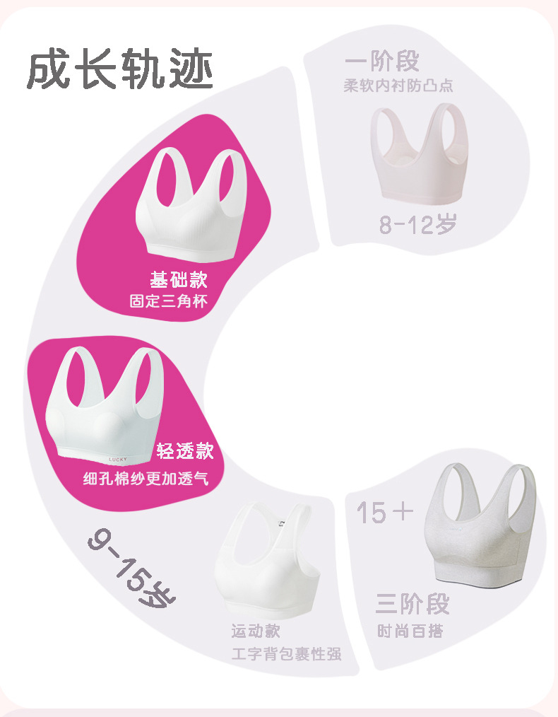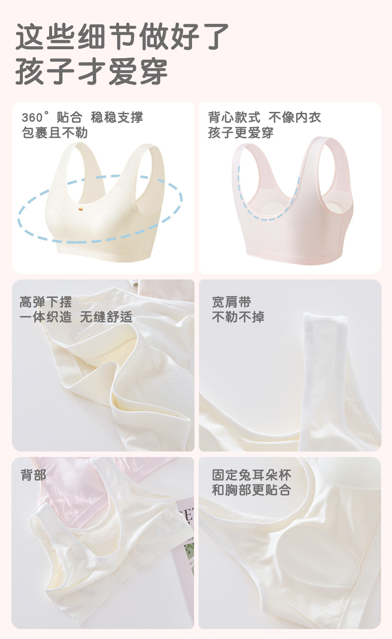 여자 튜브 탑 속옷 12-18 세 여성 중학생 고등학생 발달 충격 방지 순수 면 U 자형 브래지어