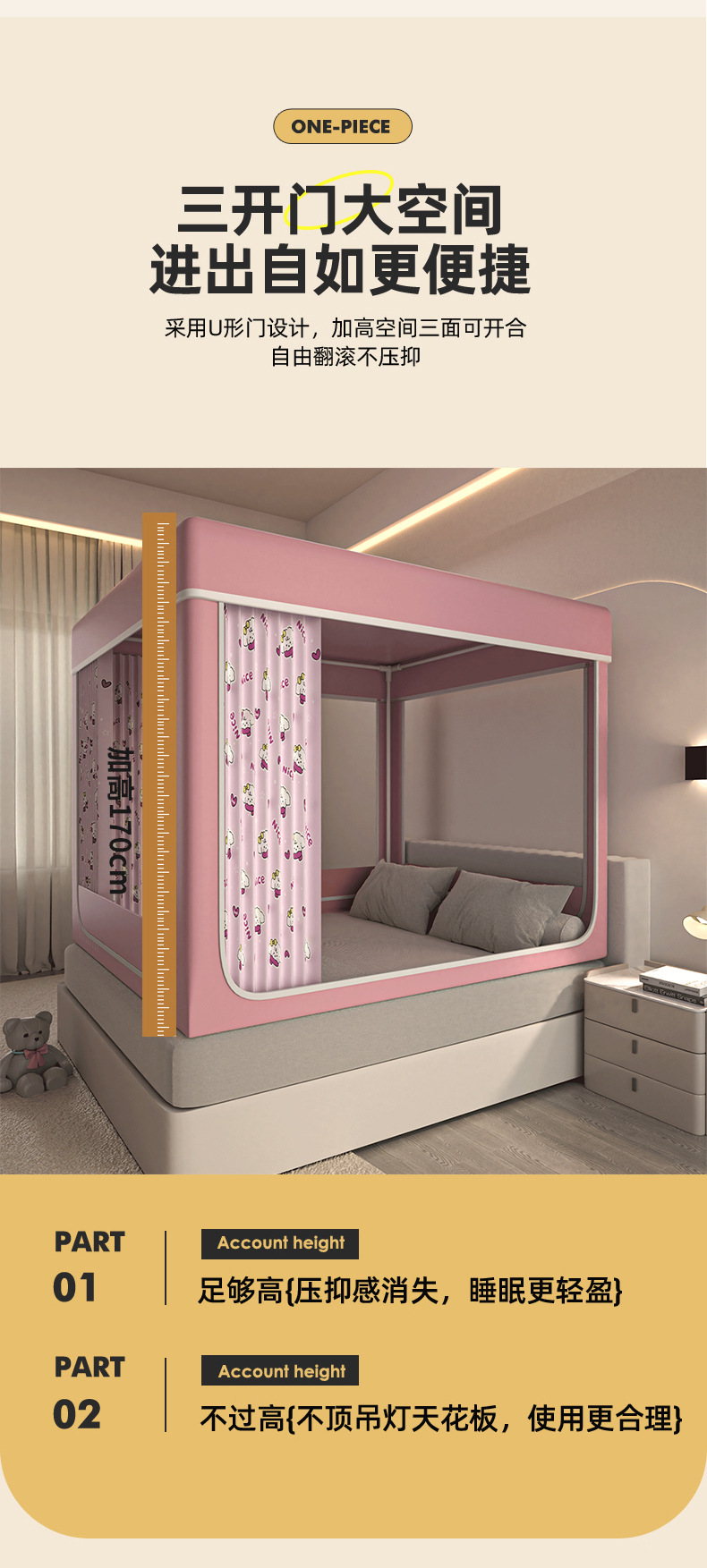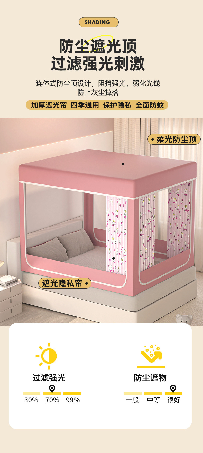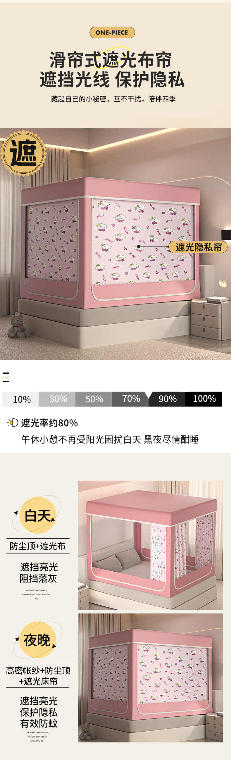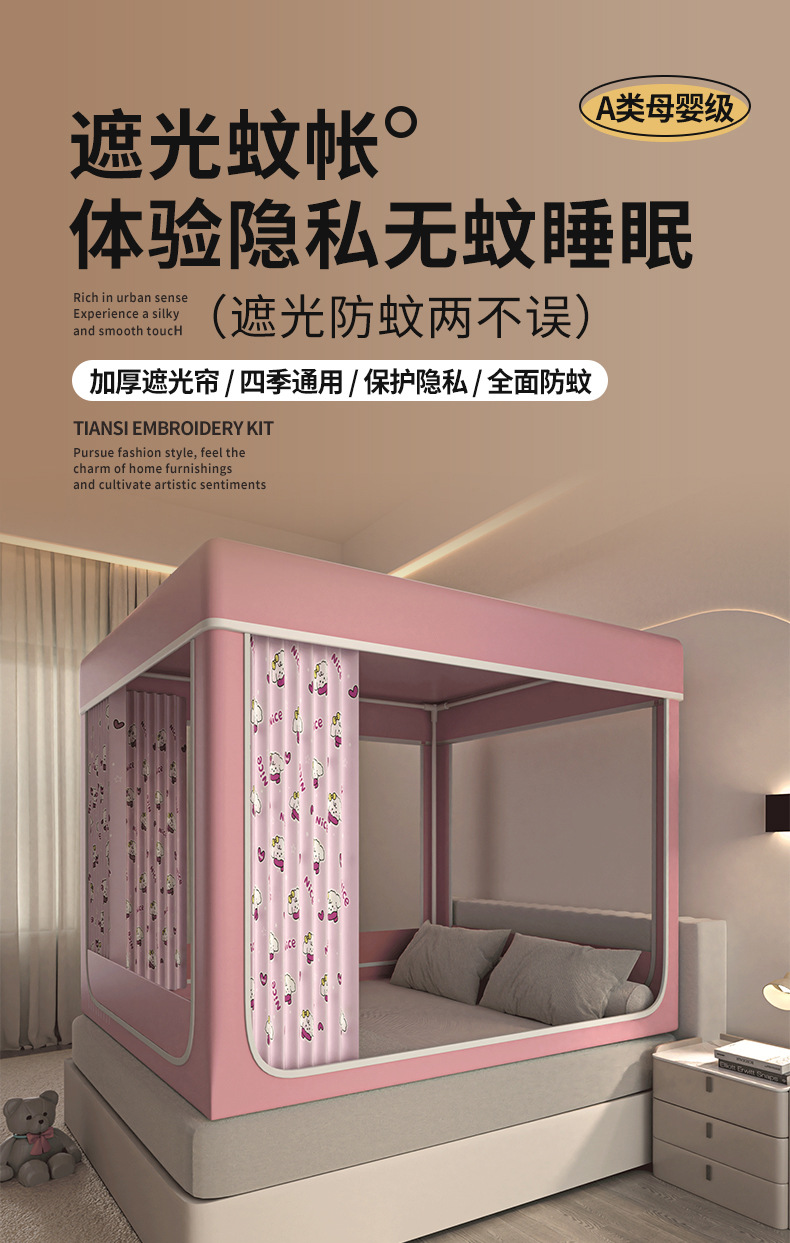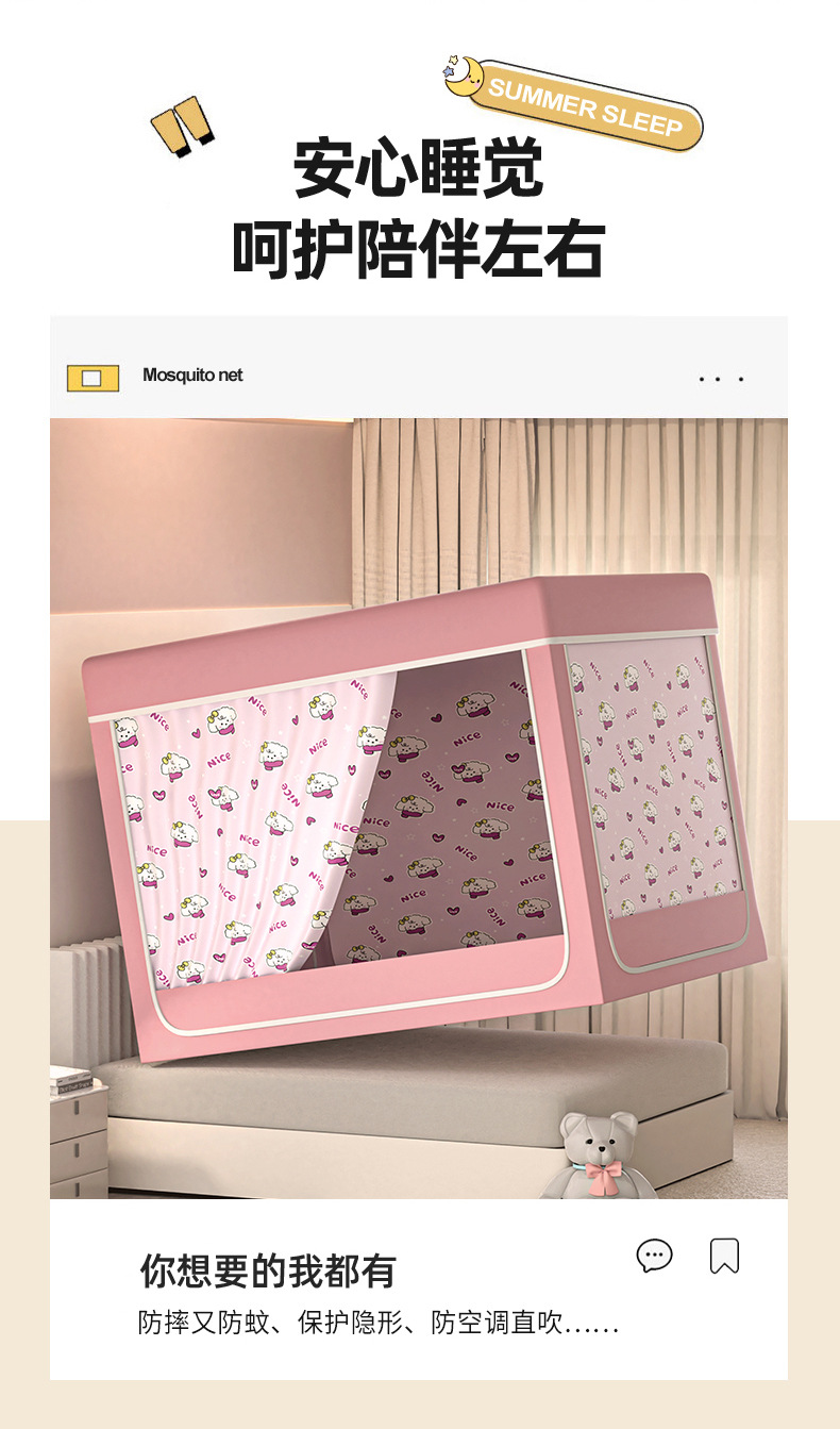 음영 침대 커튼 통합 모기장 가구 침실 텐트 아기 어린이 드롭 방지 설치-무료 유르트 2025 새로운 스타일스토어 가기