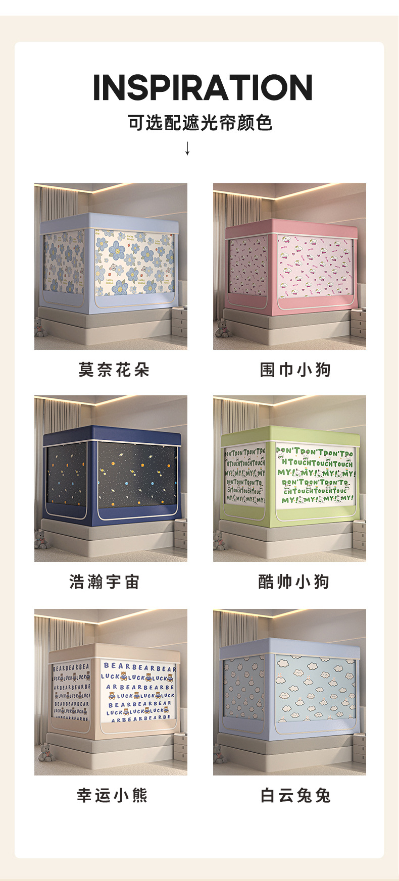 • 백운토끼 [암막커튼 포함] 침대커튼 + 모기장 + 브라켓