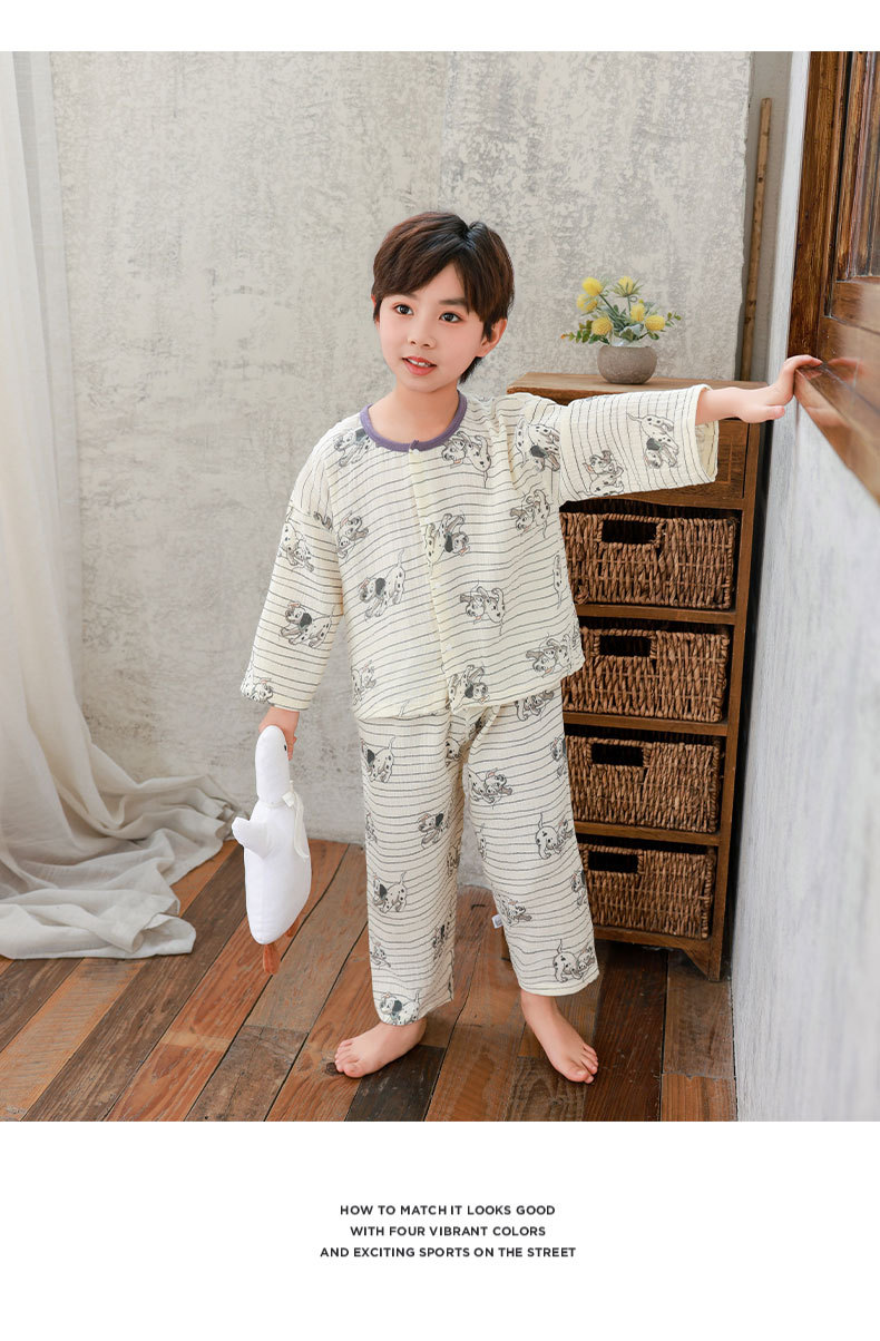 소년 소녀 더블 코튼 원사 세트 아기 스위트 레이스 옷 2025 어린이 9 점 본리스 코튼 홈 옷