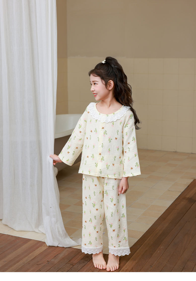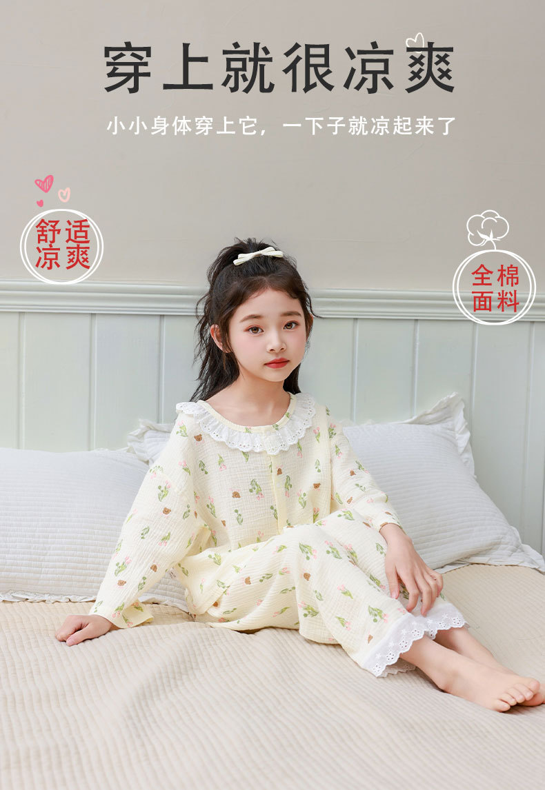 소년 소녀 더블 코튼 원사 세트 아기 스위트 레이스 옷 2025 어린이 9 점 본리스 코튼 홈 옷스토어 가기