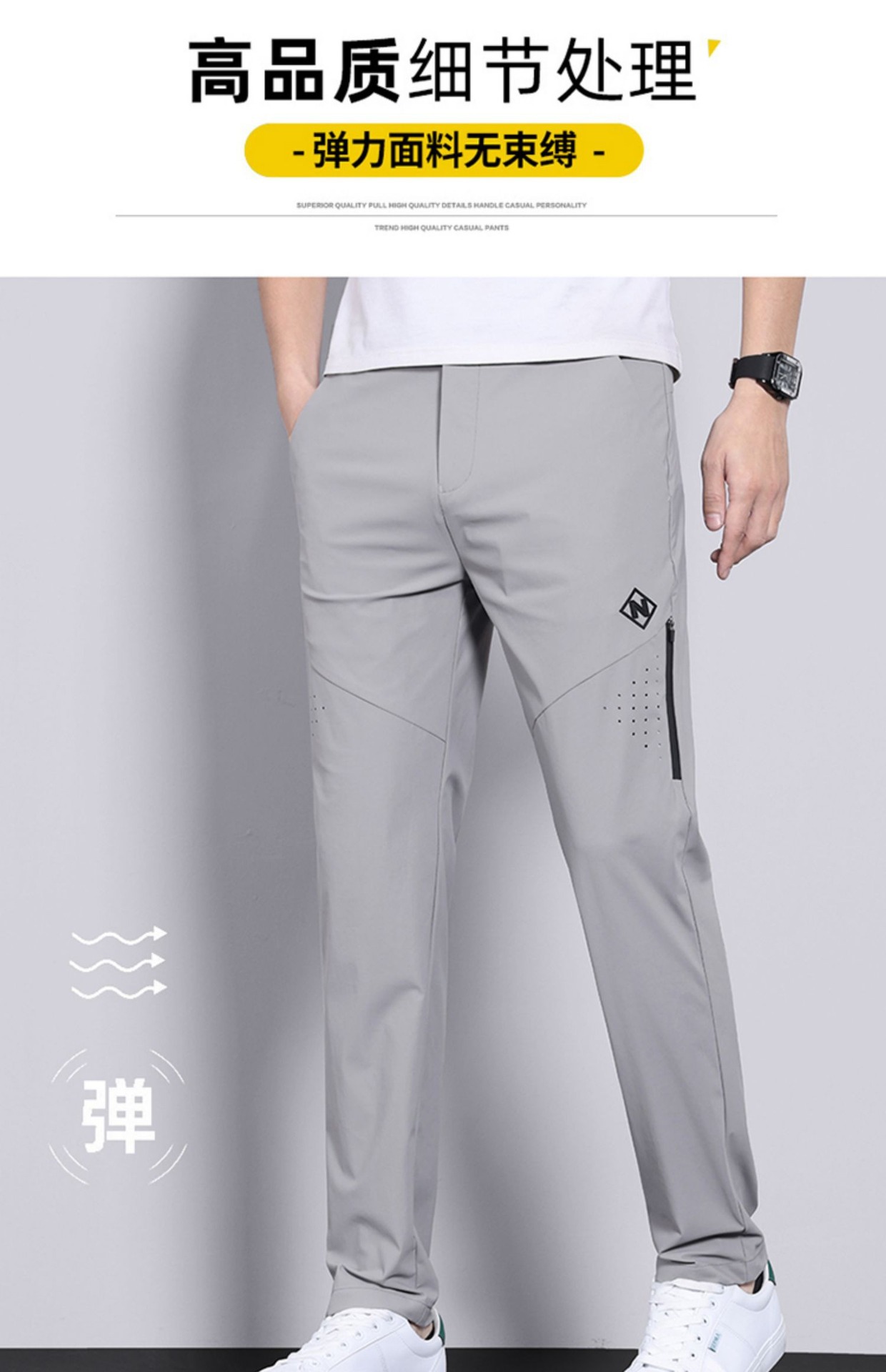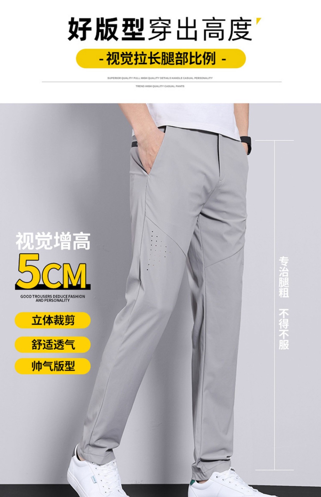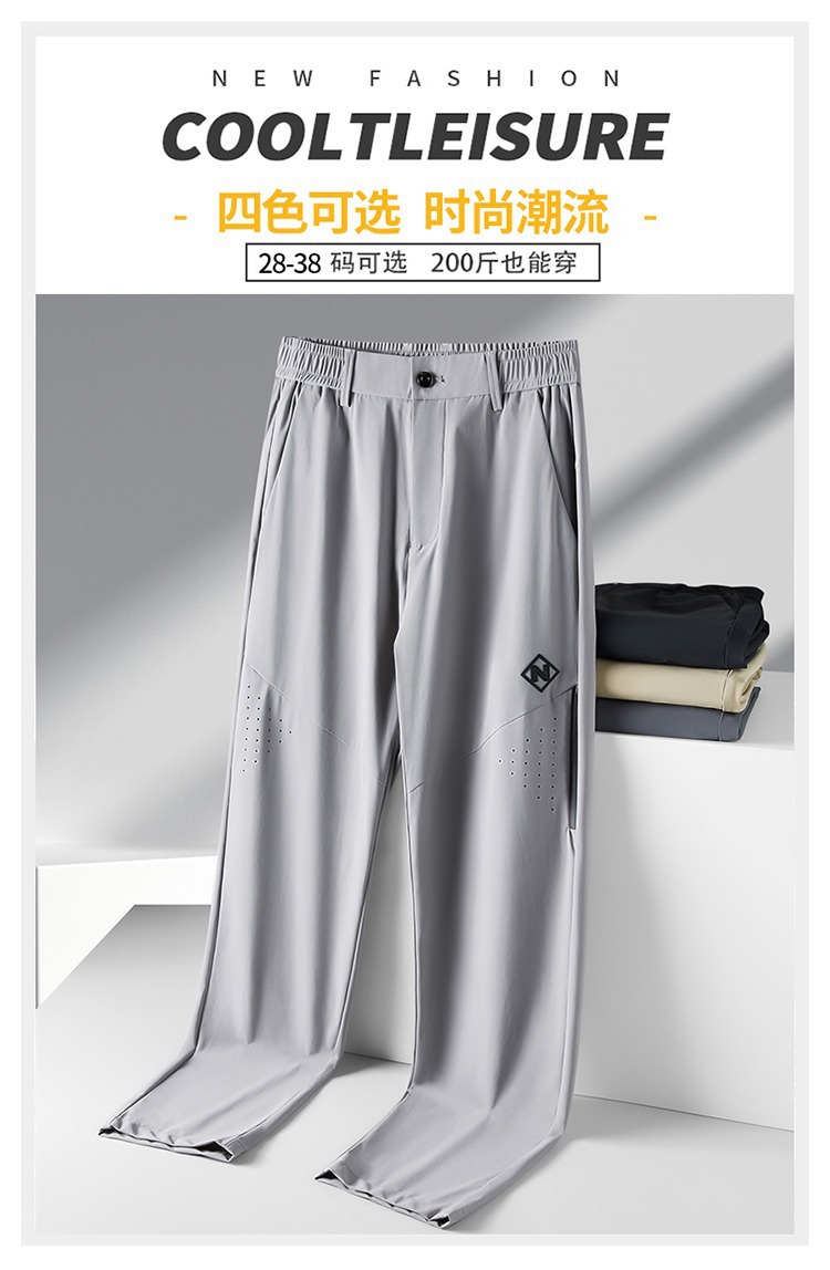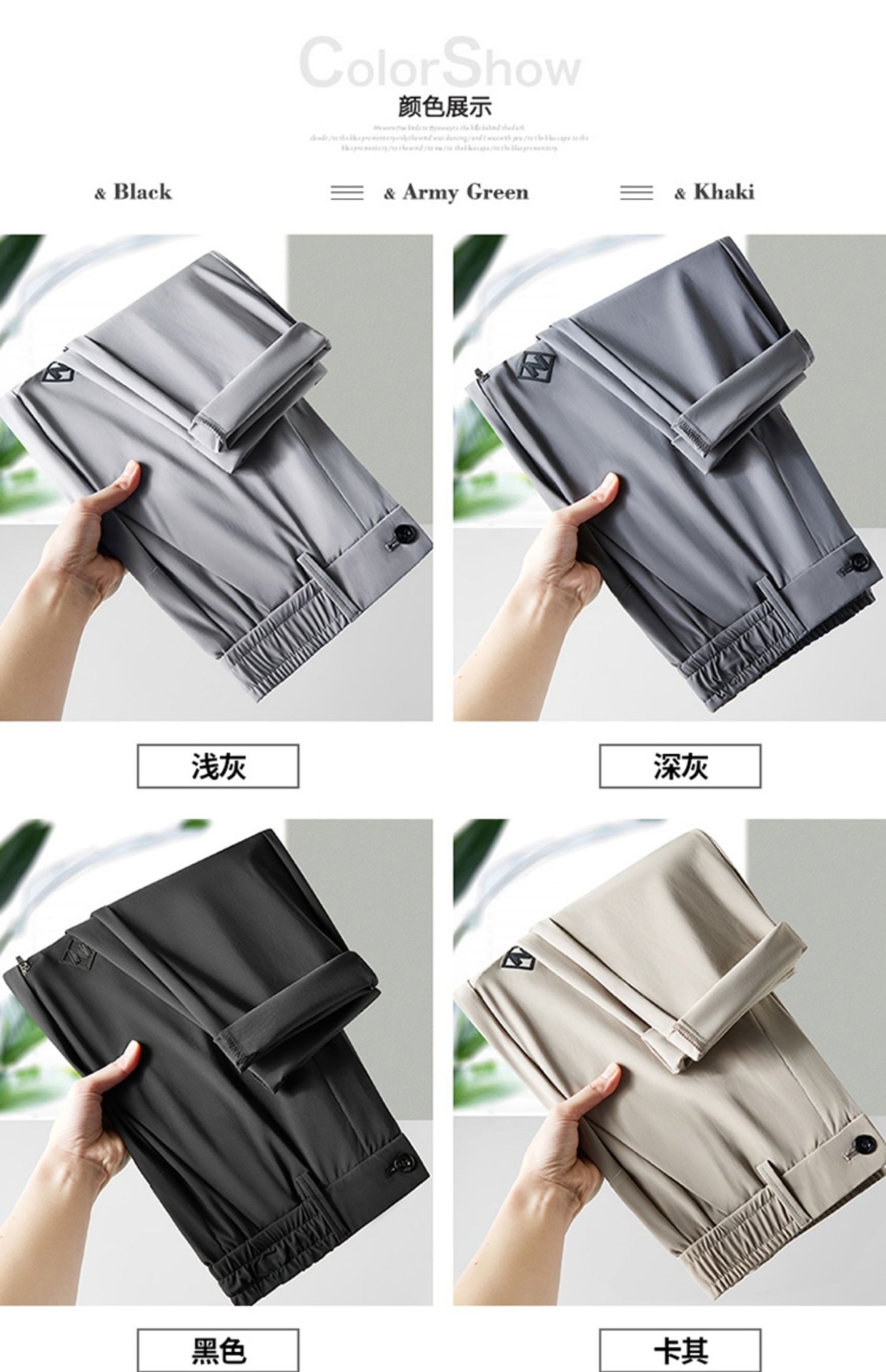 남자 캐주얼 바지 봄과 여름 2025 새로운 슬림 핏 작은 스트레이트 튜브 여름 아이스 실크 얇은 트렌디 브랜드 긴 바지스토어 가기