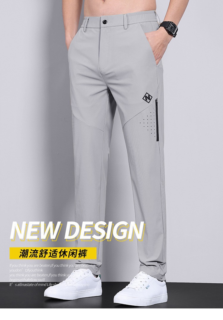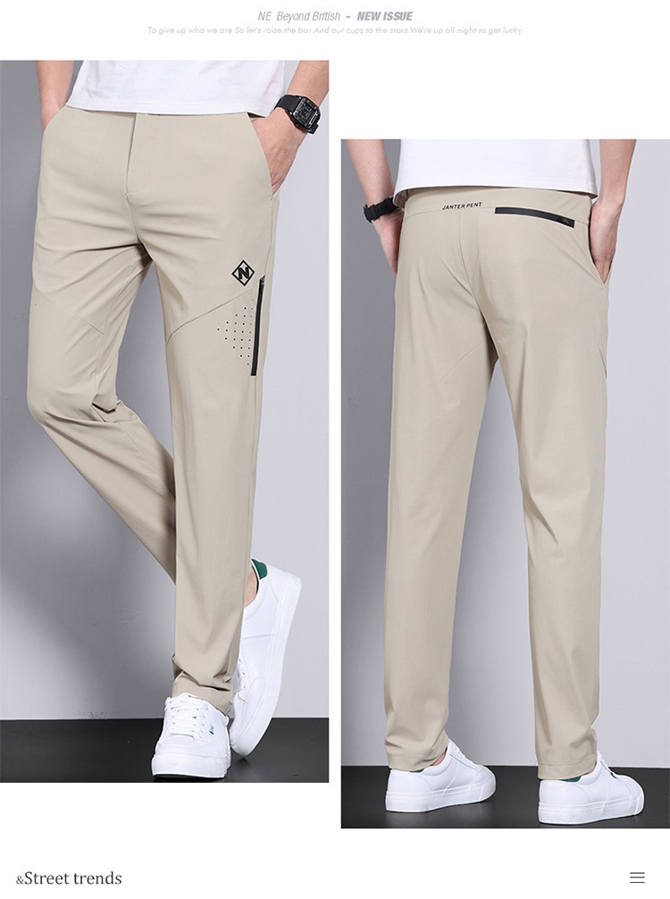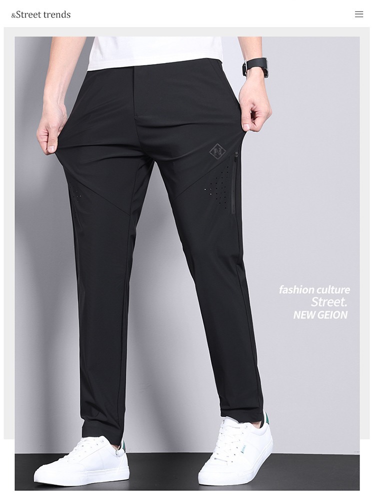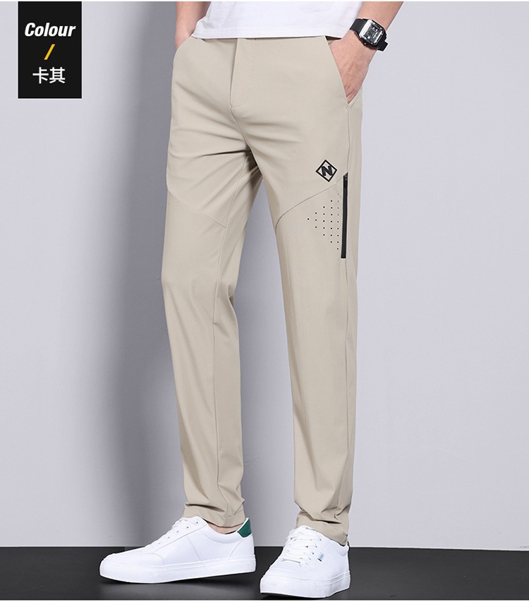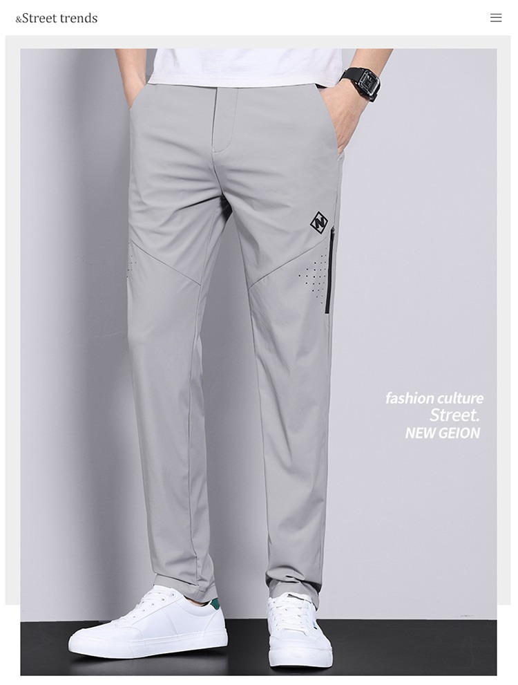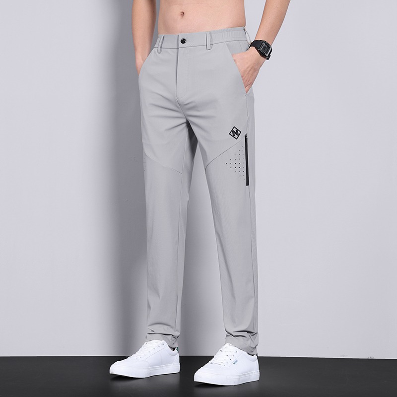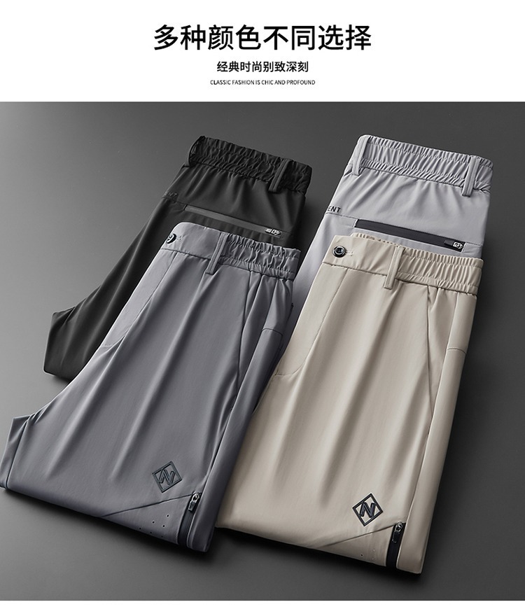 남자 캐주얼 바지 봄과 여름 2025 새로운 슬림 핏 작은 스트레이트 튜브 여름 아이스 실크 얇은 트렌디 브랜드 긴 바지스토어 가기