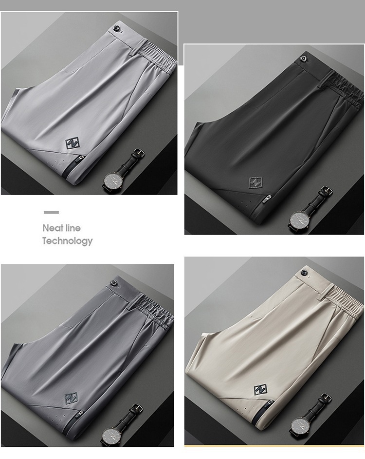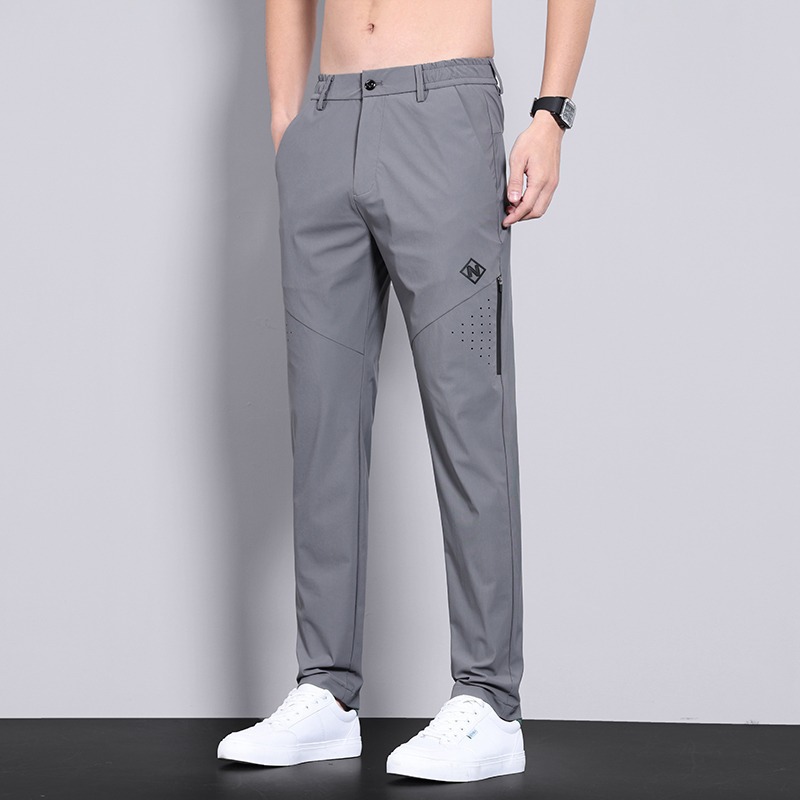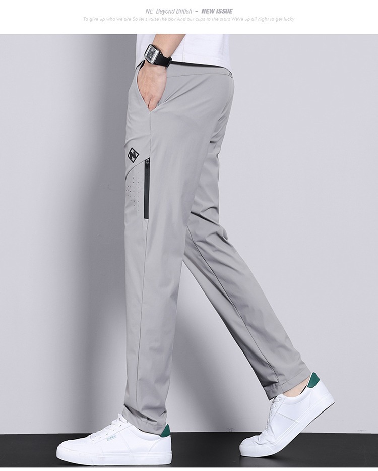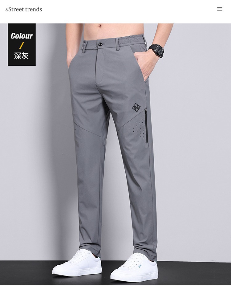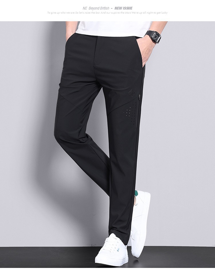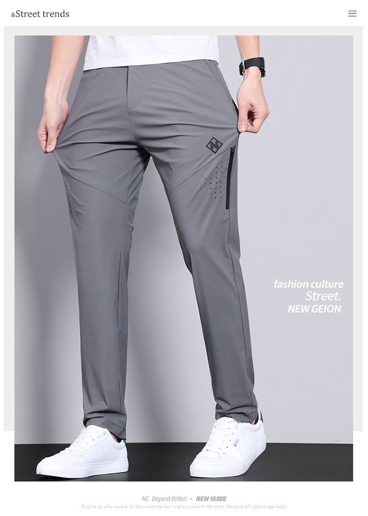남자 캐주얼 바지 봄과 여름 2025 새로운 슬림 핏 작은 스트레이트 튜브 여름 아이스 실크 얇은 트렌디 브랜드 긴 바지스토어 가기