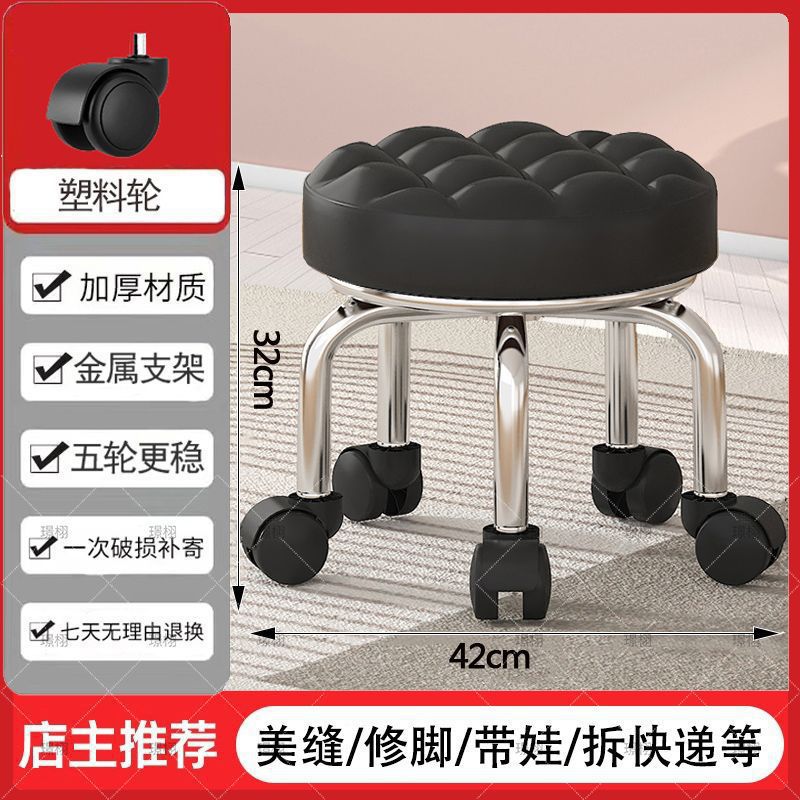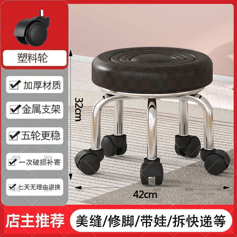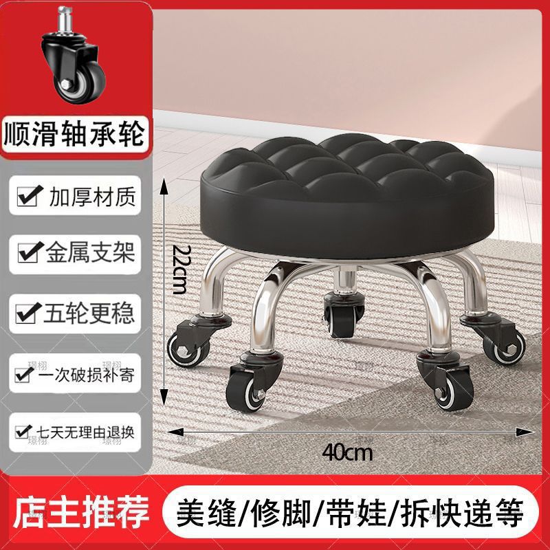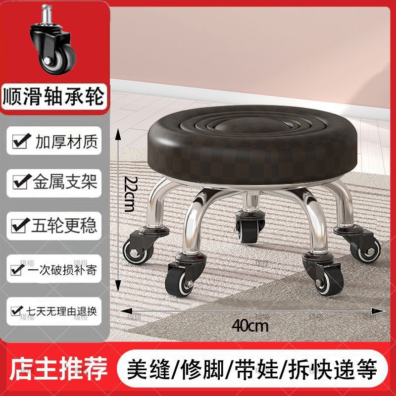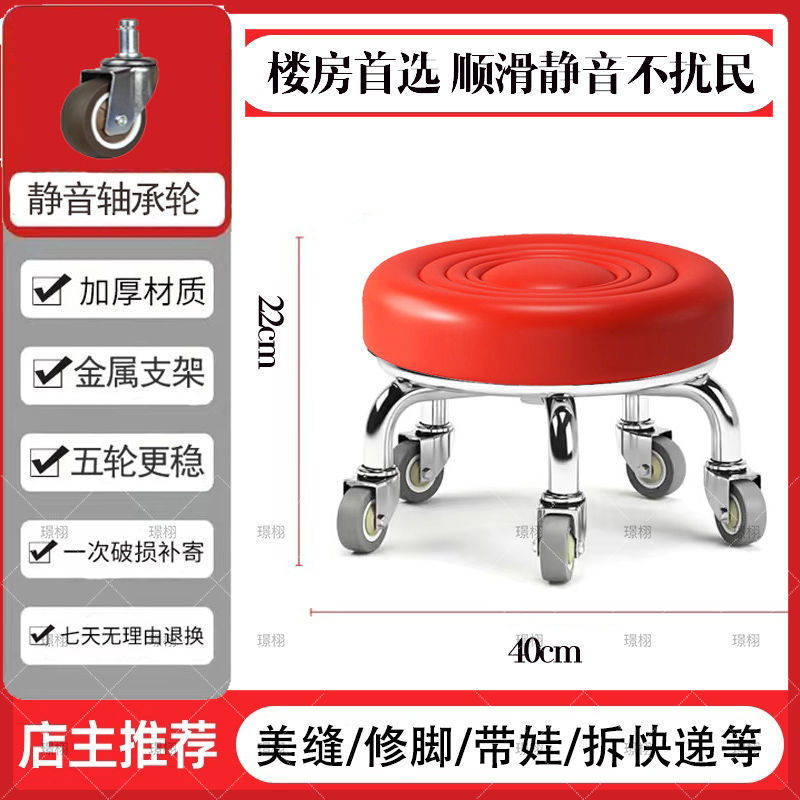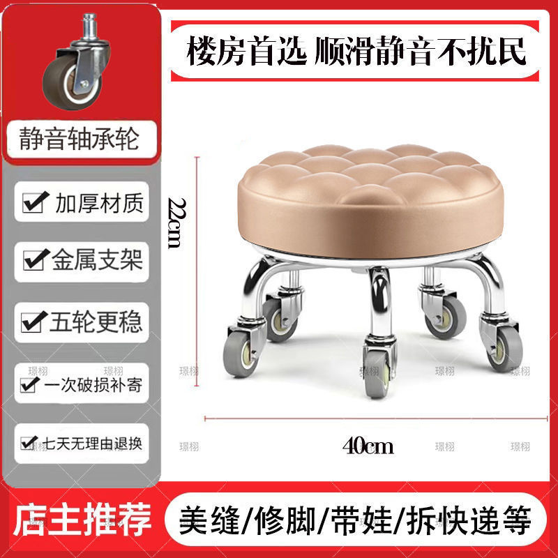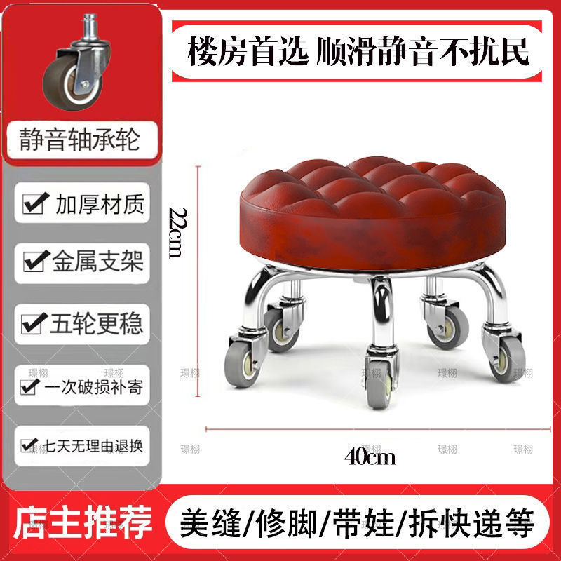 유니버설 휠 작은 낮은 의자 가정용 둥근 의자 아름다운 솔기 페디큐어 어린이 스텝 의자 발 목욕 작은 벤치 풀리 음소거