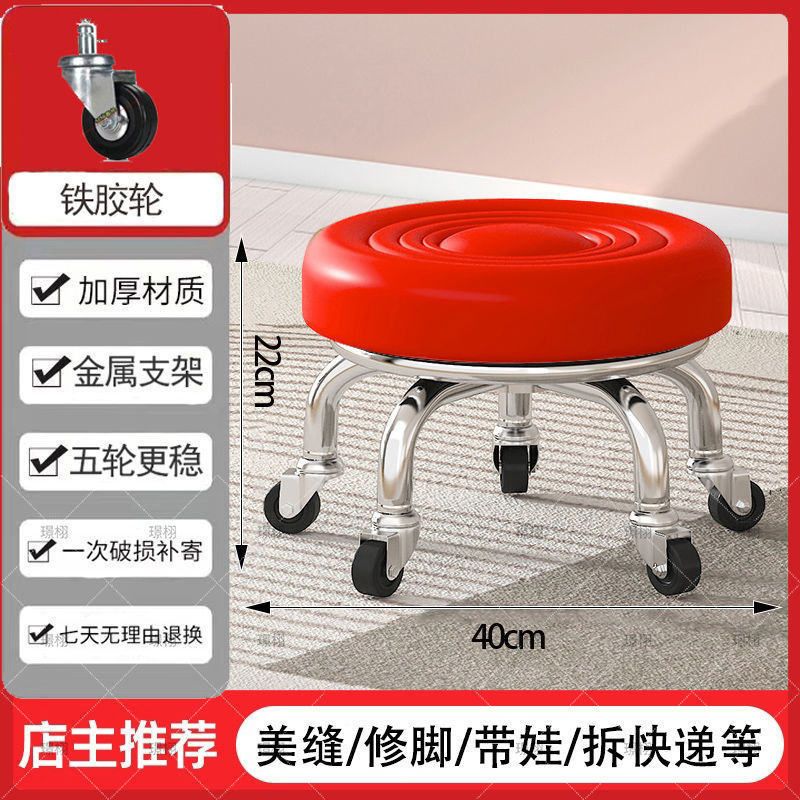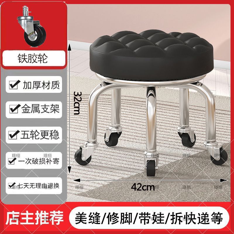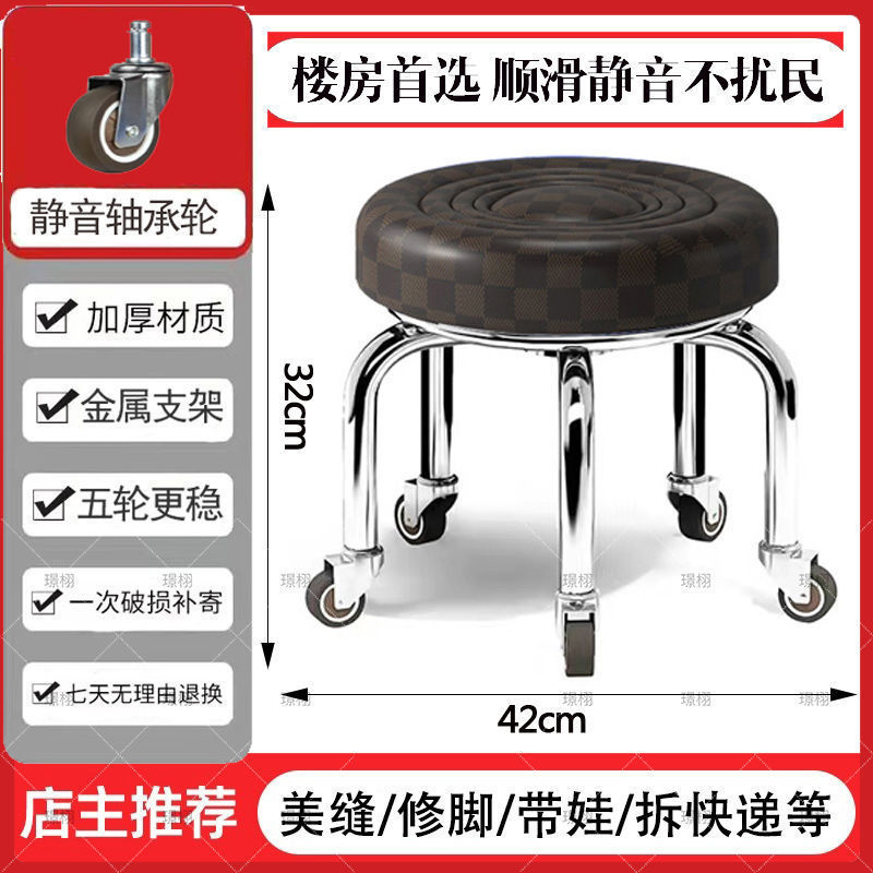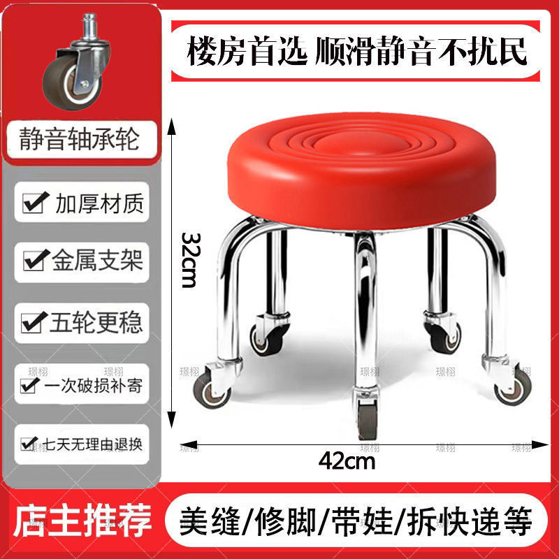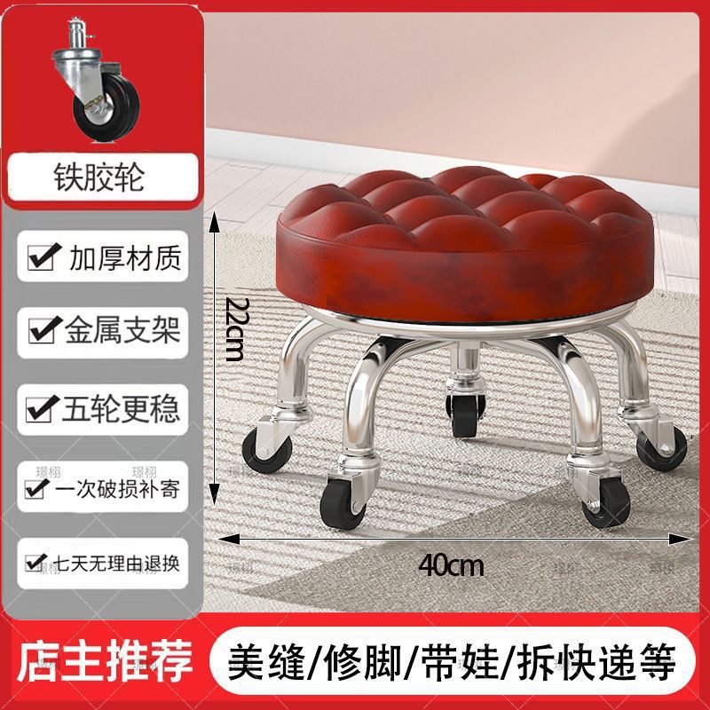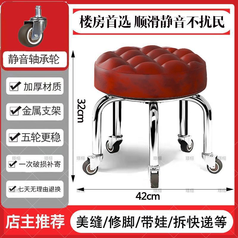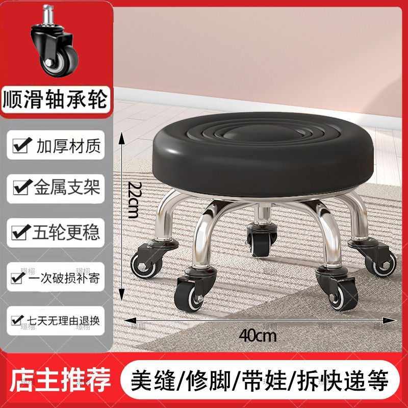 유니버설 휠 작은 낮은 의자 가정용 둥근 의자 아름다운 솔기 페디큐어 어린이 스텝 의자 발 목욕 작은 벤치 풀리 음소거