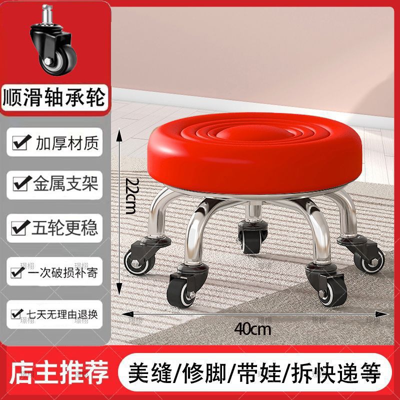 유니버설 휠 작은 낮은 의자 가정용 둥근 의자 아름다운 솔기 페디큐어 어린이 스텝 의자 발 목욕 작은 벤치 풀리 음소거스토어 가기