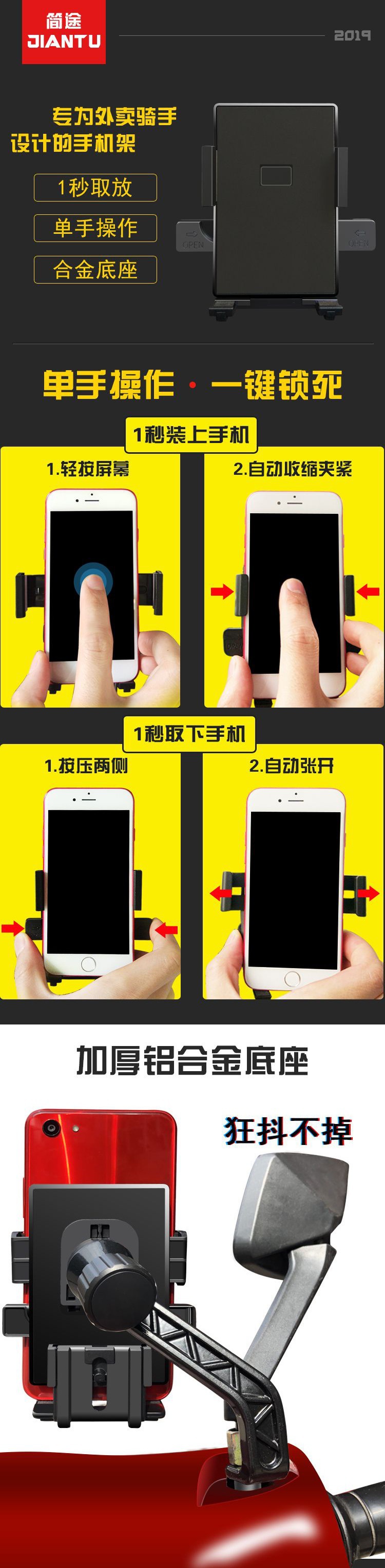 자전거 특수 전기 핸드 휴대 전화 브래킷 오토바이 테이크 아웃 자동차 휴대 전화 내비게이션 브래킷 알루미늄 합금 테이크 아웃스토어 가기