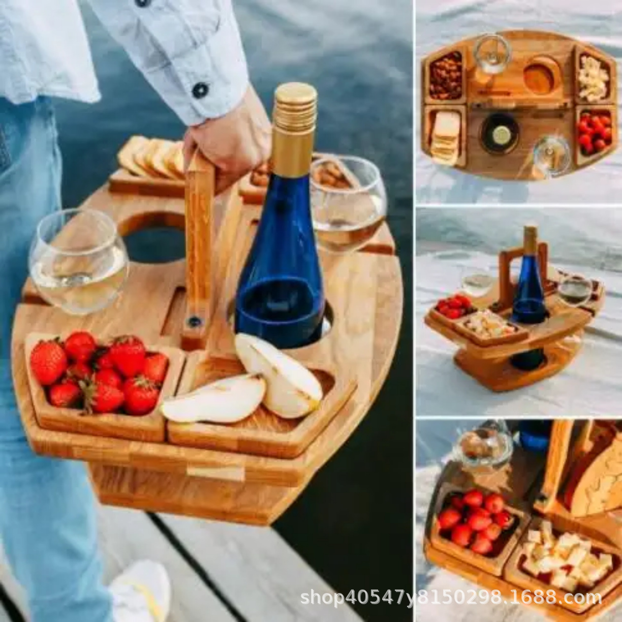 창조적 인 나무 이동식 과일 및 적포도주 저장 랙 가정용 휴대용 간식 및 케이크 저장 휴대용 트레이