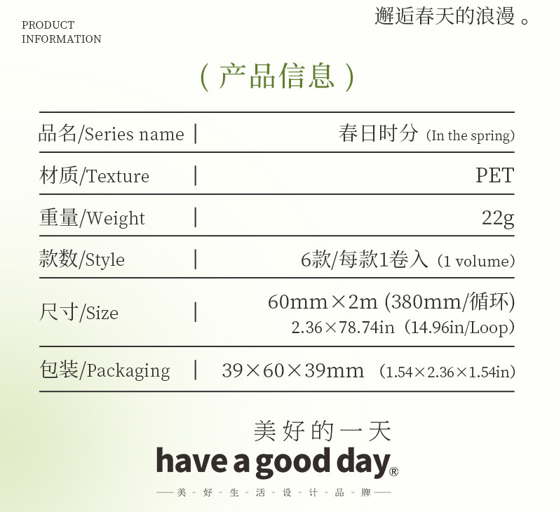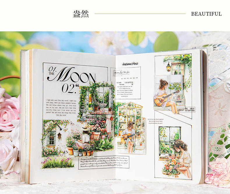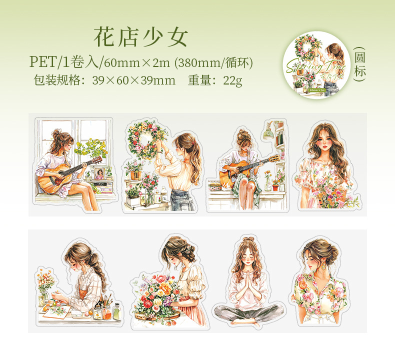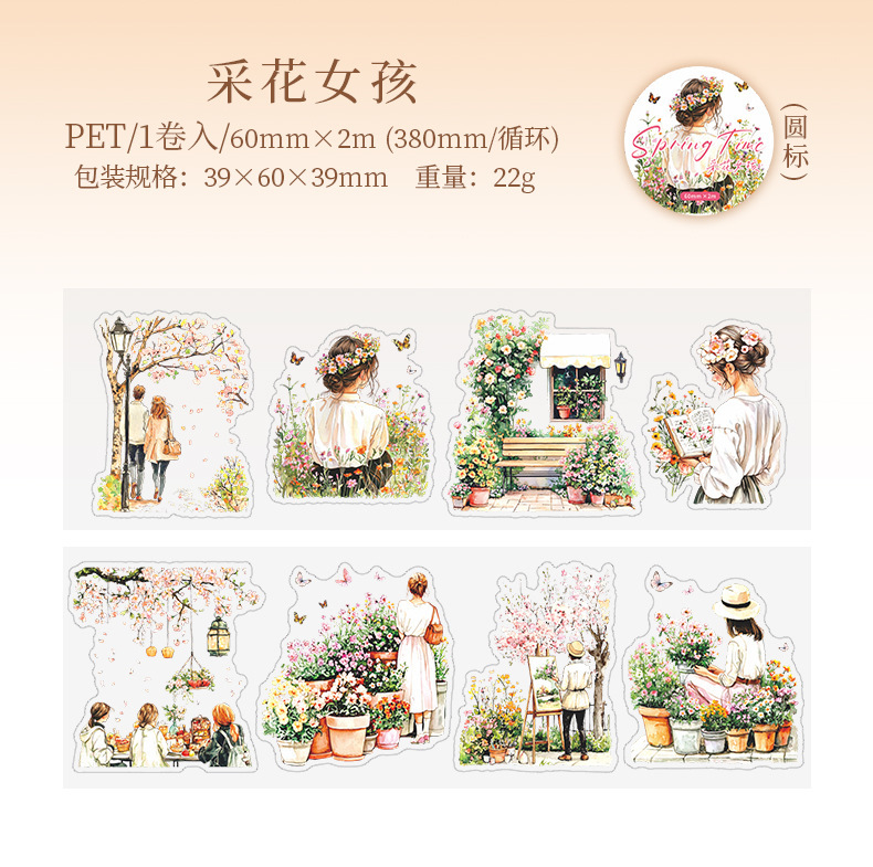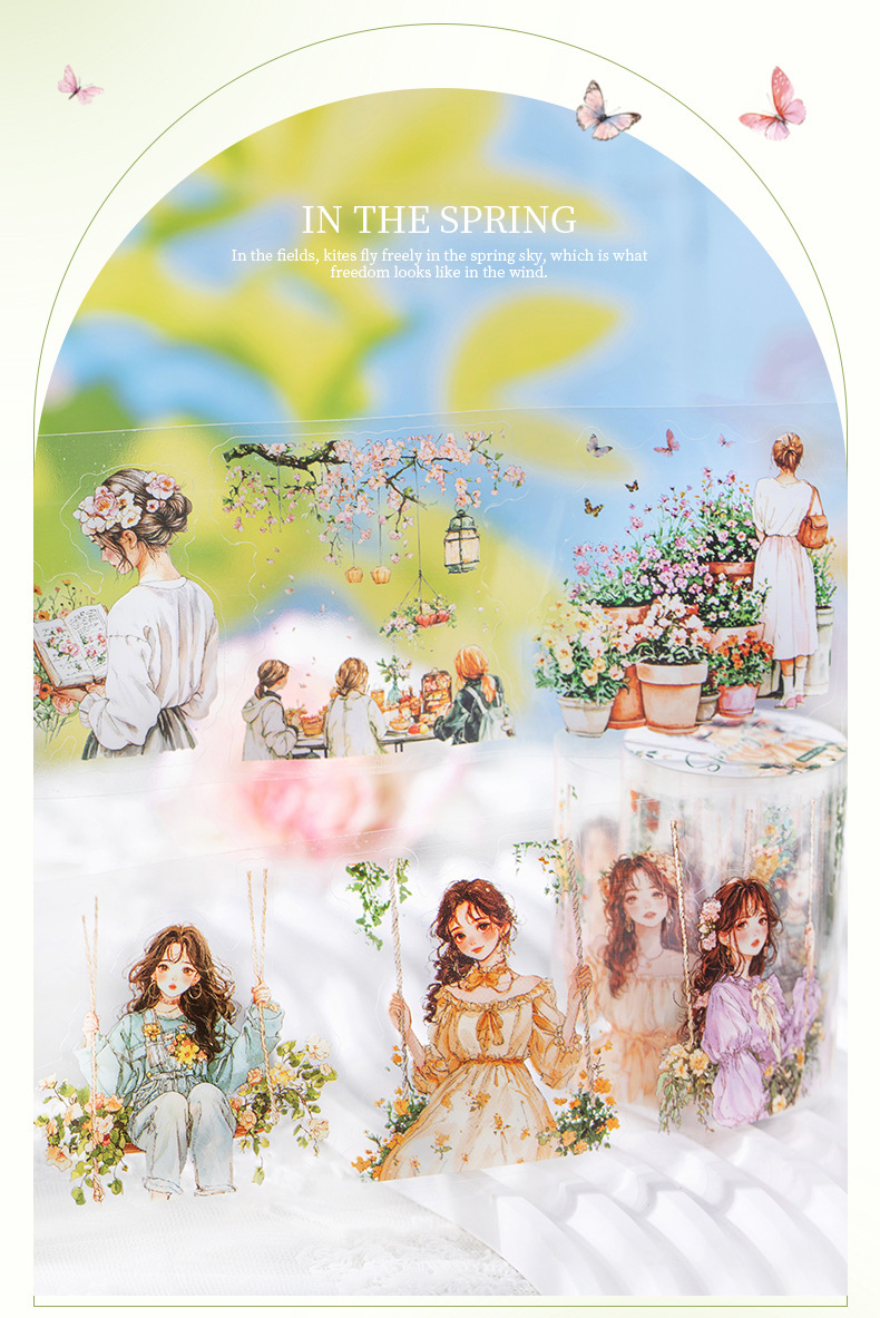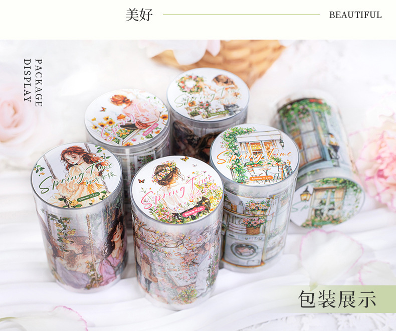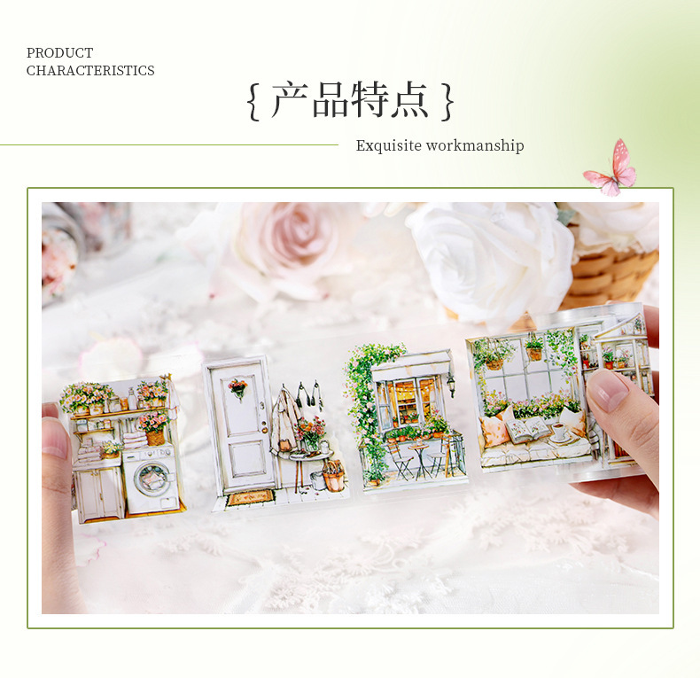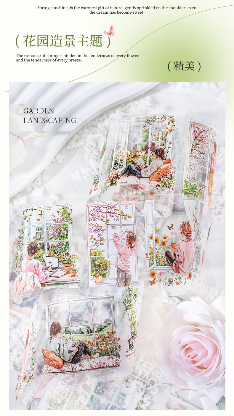 아름다운 날 정원 풍경 다이 커팅 테이프 봄 시리즈 손 계정 애완 동물 장식 스티커 테이프스토어 가기