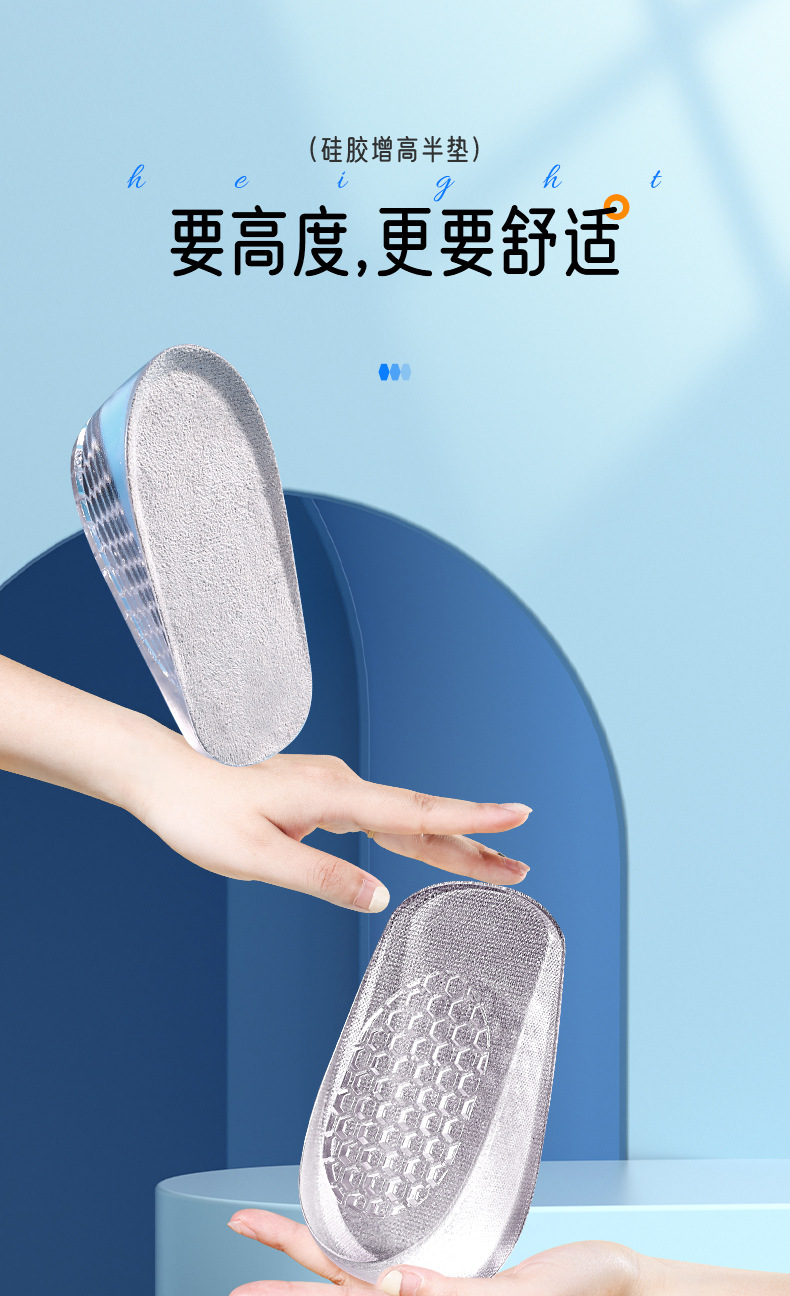내부 높이 증가 깔창 여성의 보이지 않는 실리콘 안티-통증 짧은 소프트 하단 편안한 높이 증가 하프 패드 남자의 충돌 없음 피곤한 발스토어 가기