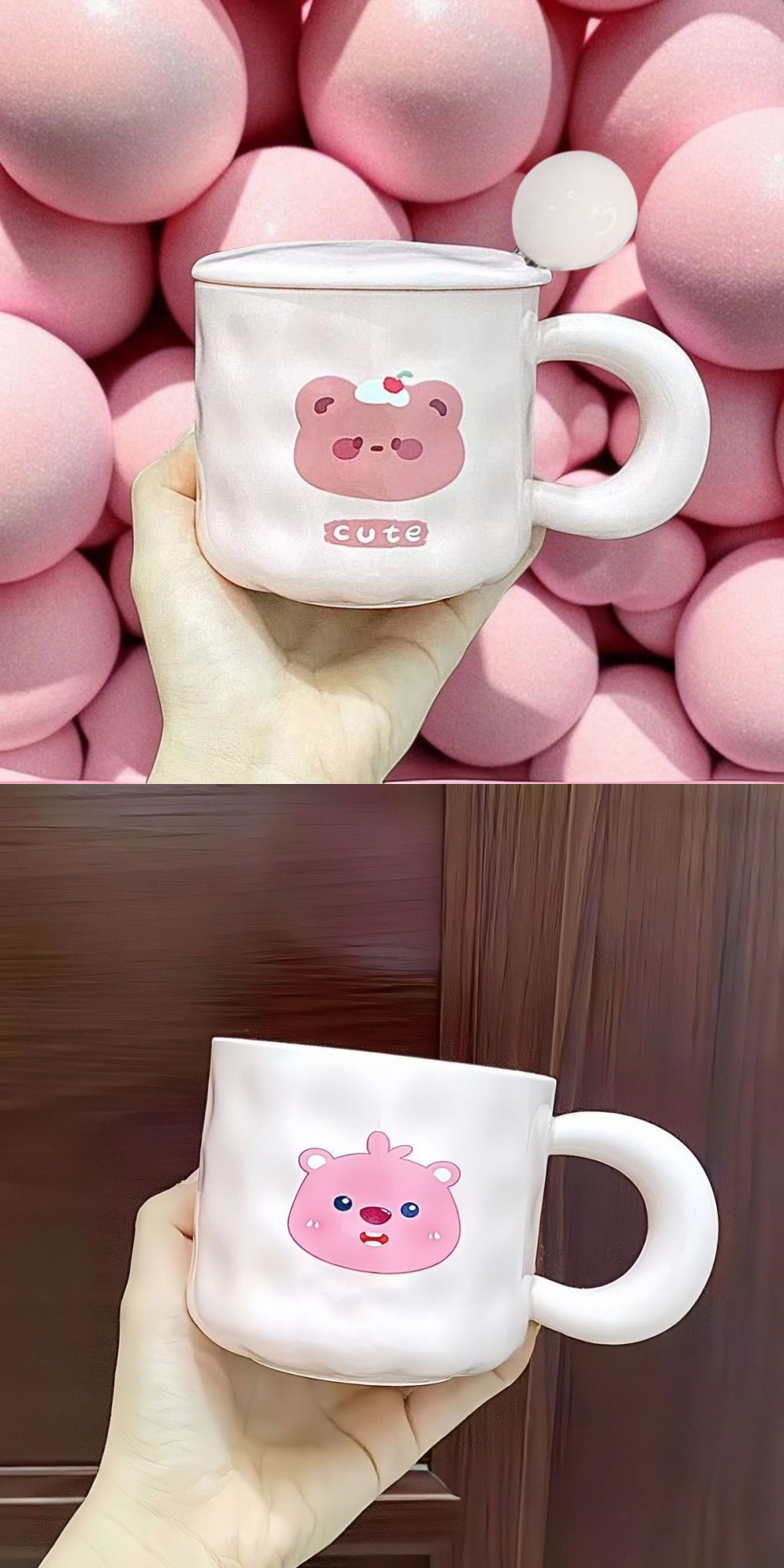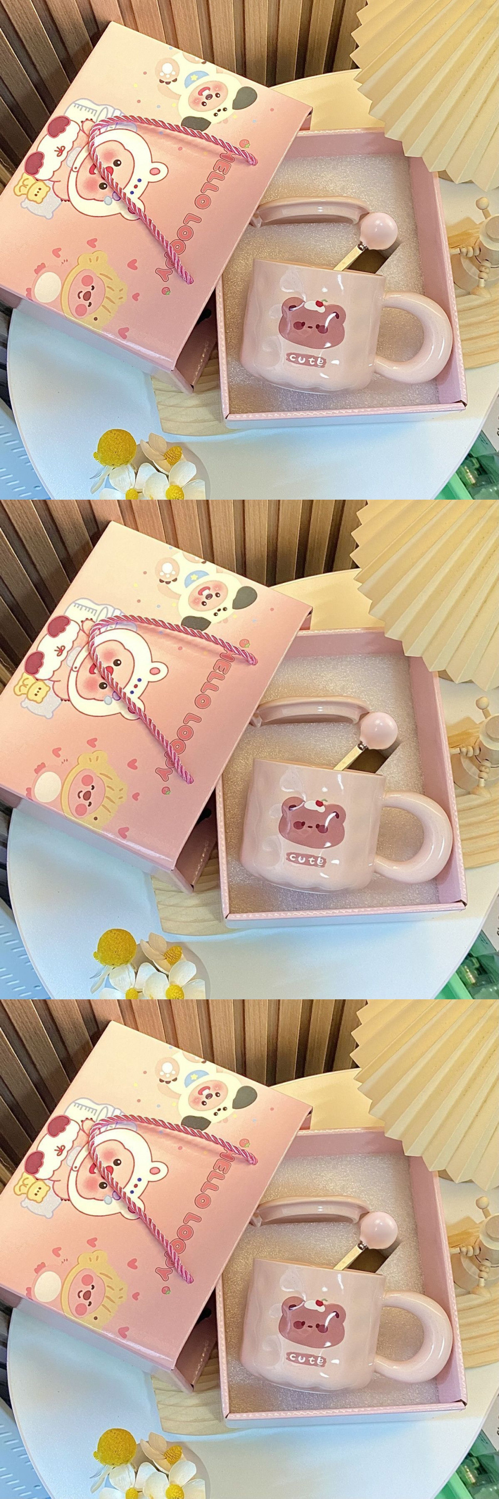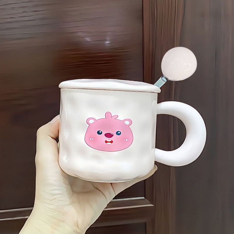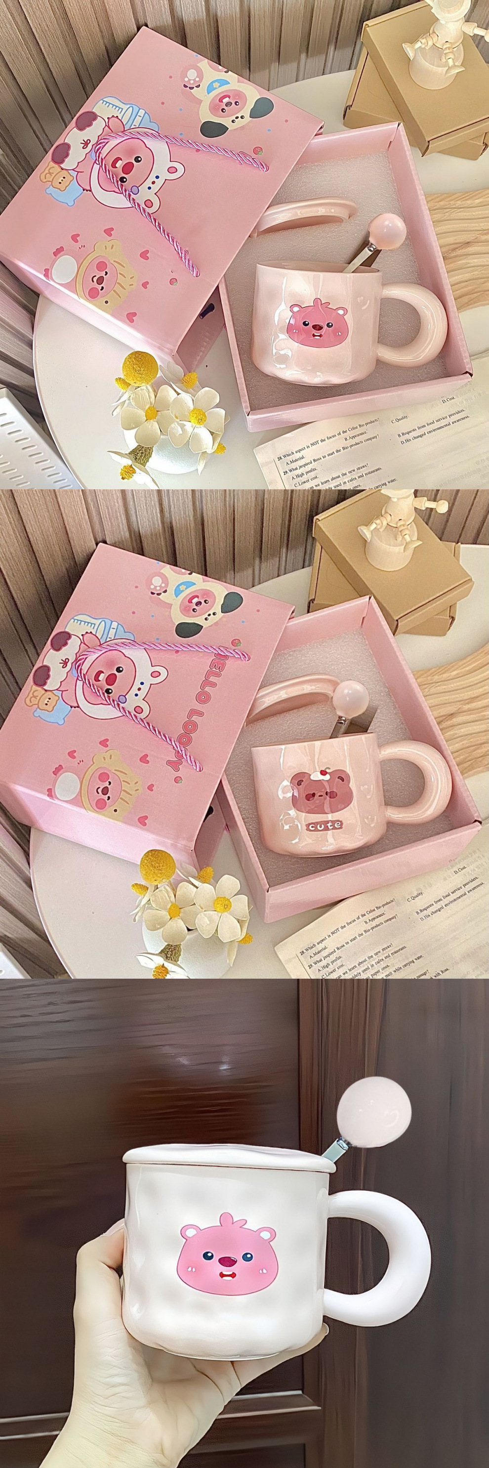 • 귀여운 곰컵 + 뚜껑 + 핑크볼 스푼