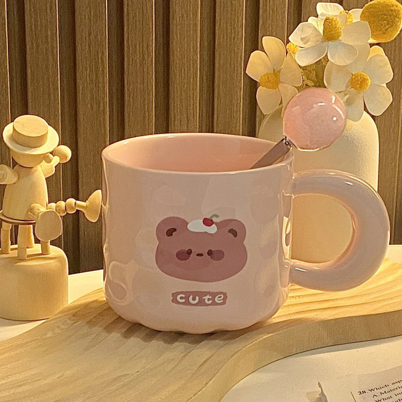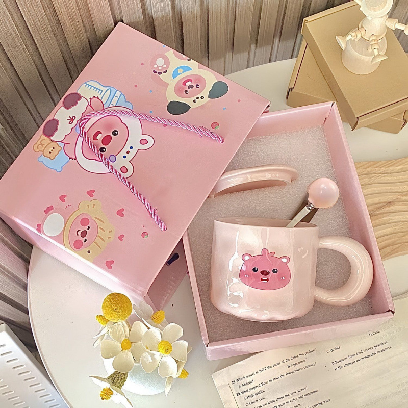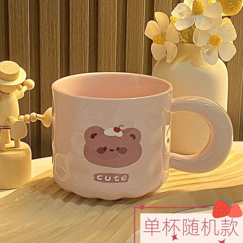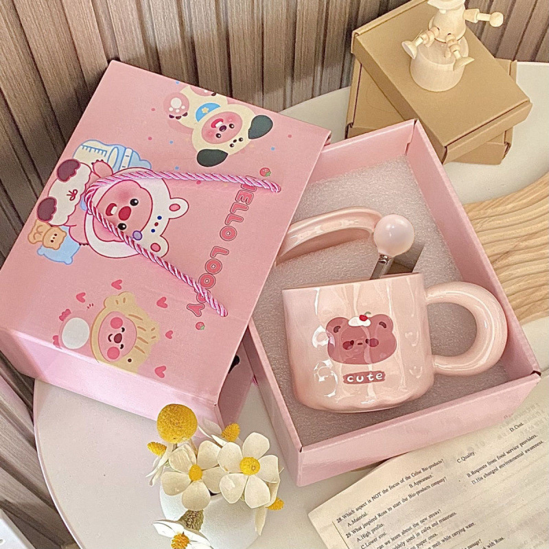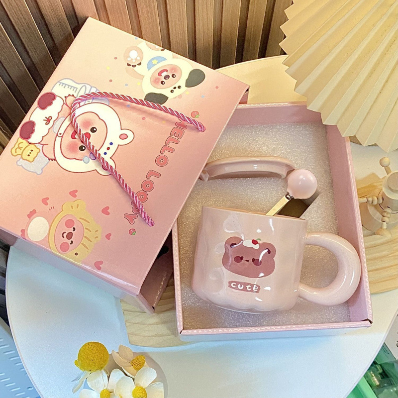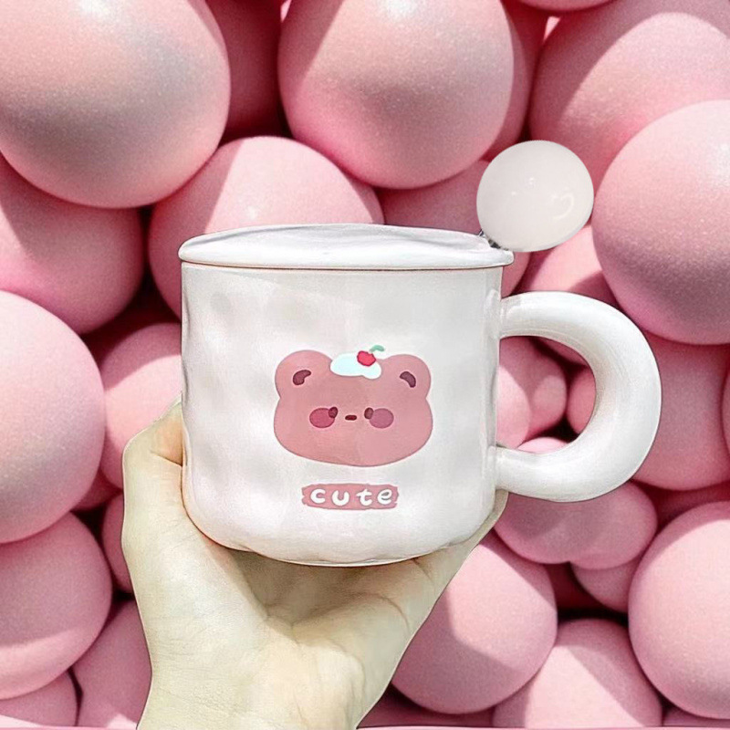 소녀의 심장 곰 머그잔 귀여운 우유 만화 가정 물 컵 자매와 친구를위한 뚜껑과 생일 선물스토어 가기