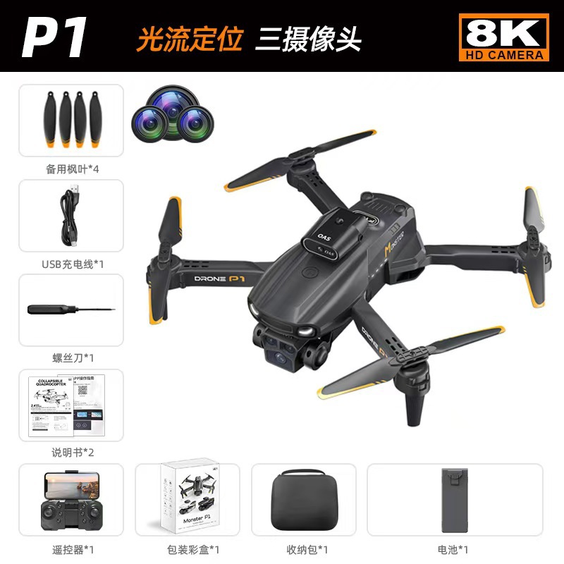 HD 항공 원격 제어 E88PRO 드론 신년 선물 듀얼 카메라 P1 접이식 4 축 장난감 비행기