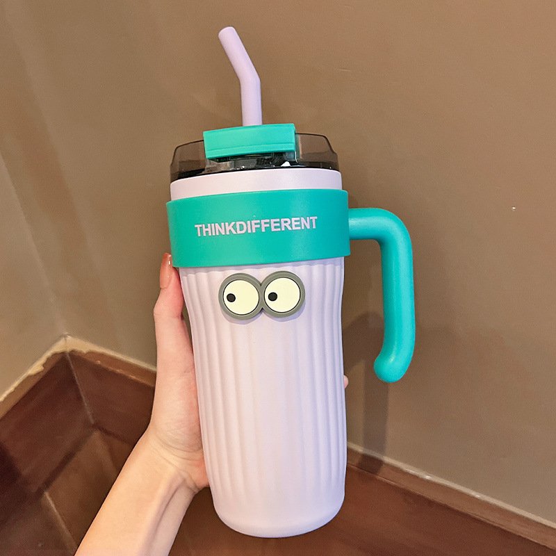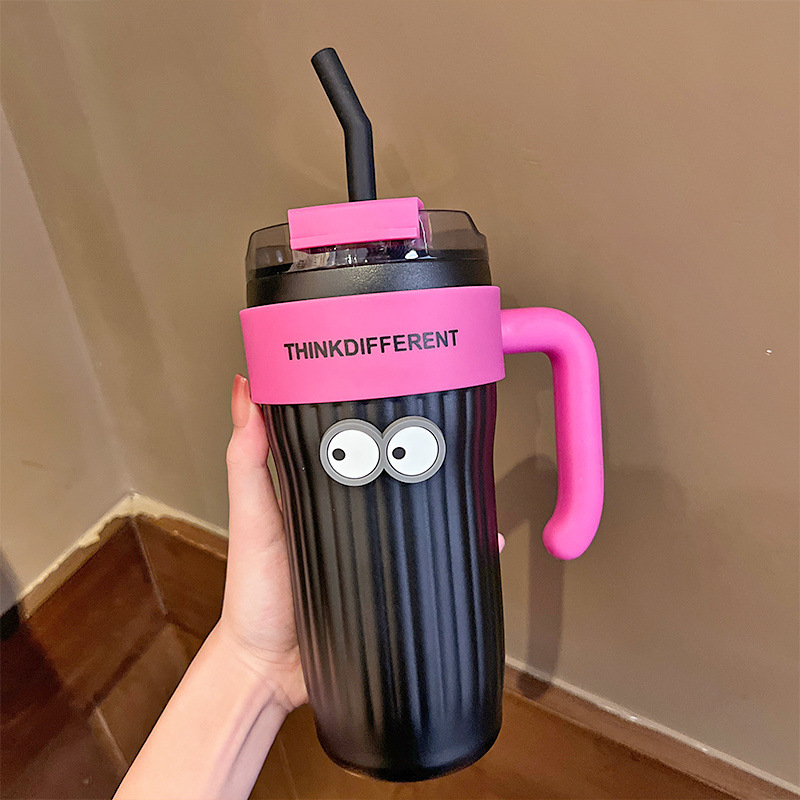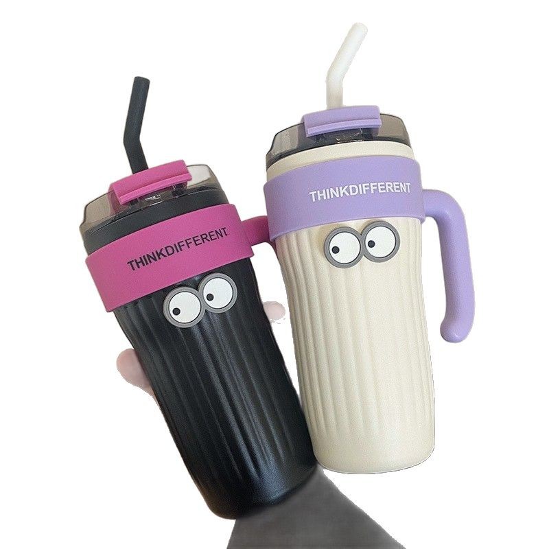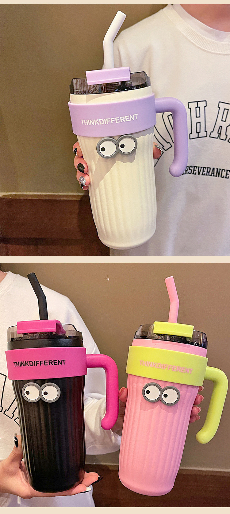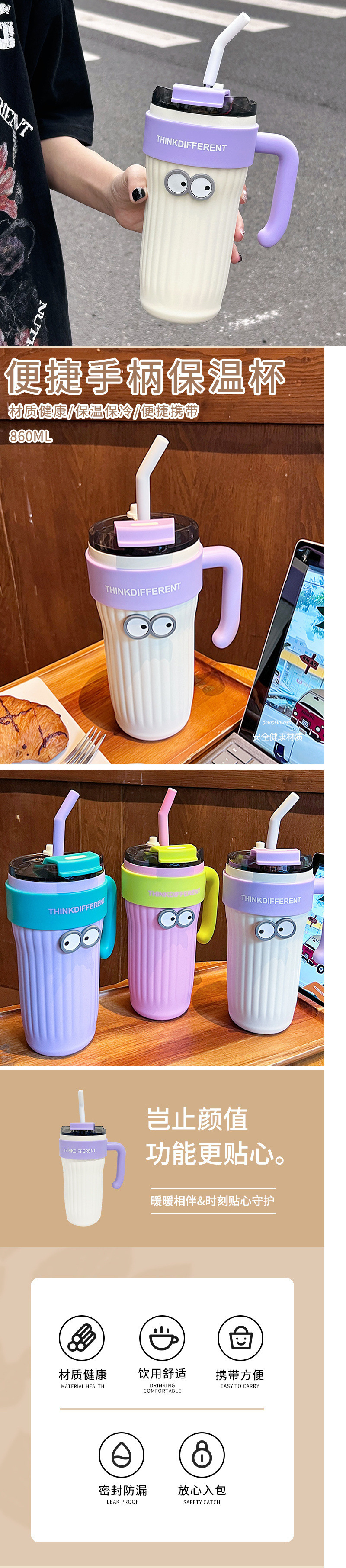 차 휴식 미국 보온병 컵 스테인레스 스틸 커피 컵 소녀 높은 색상 가치 밀짚 컵 핸들 대용량스토어 가기