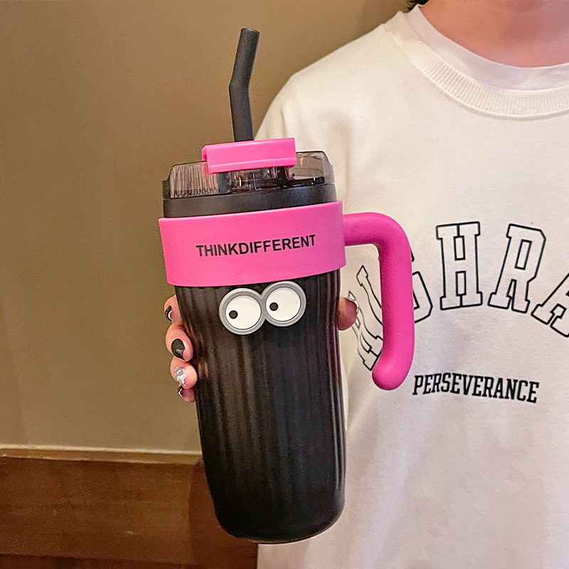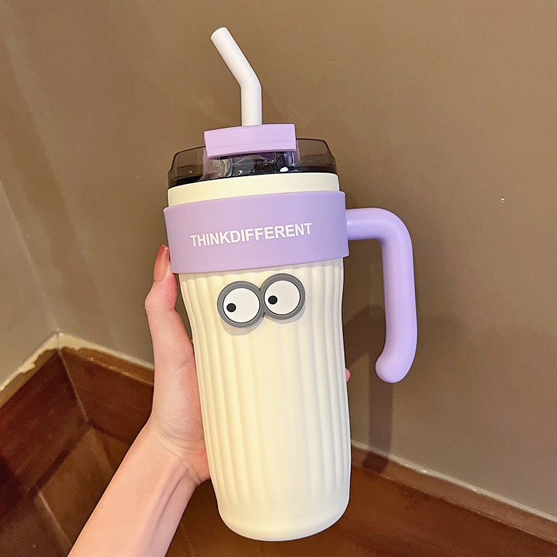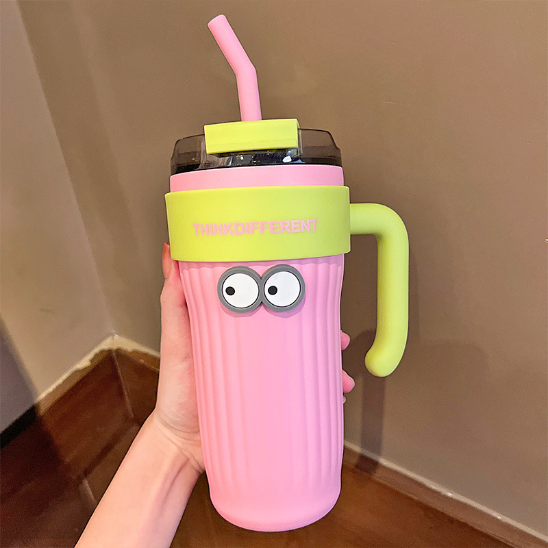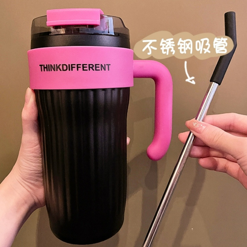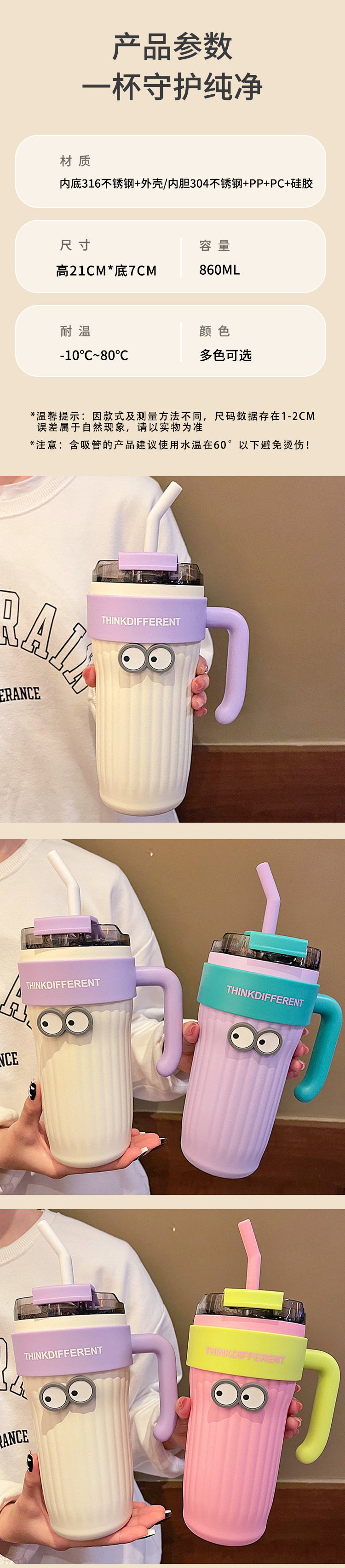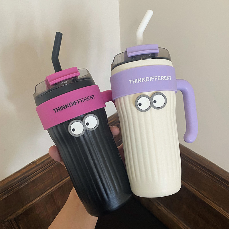 차 휴식 미국 보온병 컵 스테인레스 스틸 커피 컵 소녀 높은 색상 가치 밀짚 컵 핸들 대용량스토어 가기