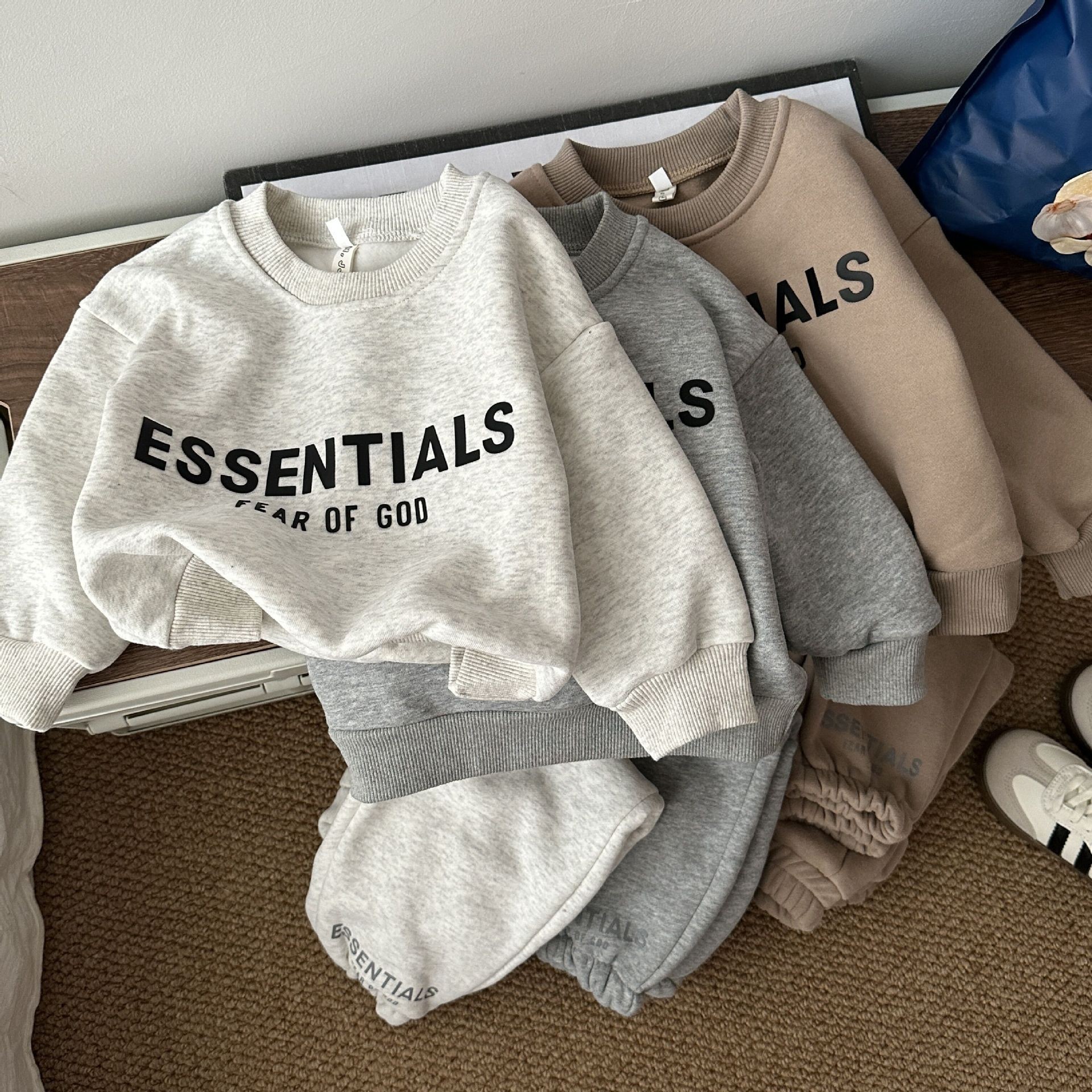 소년의 한국식 새로운 가을과 겨울 양털 세트 유행 인쇄 소년의 유행 세련된 땀 투피스 세트스토어 가기