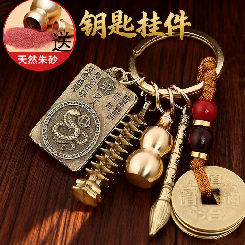 • 세트: 십이지신 {뱀} 노란 밧줄 오제 동전 + 탑 + 펜 + 조롱박 + 무료 진사 + 카라비너