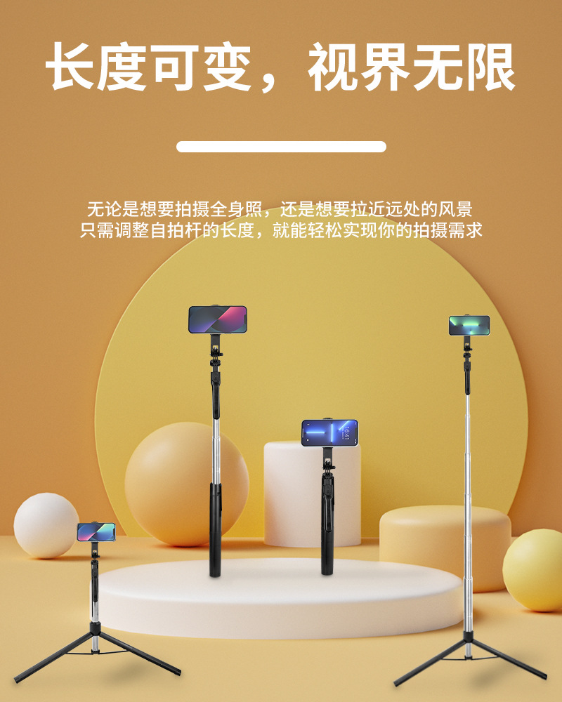 1.7 m 캔틸레버 핸드 헬드 셀카 스틱 여행 사진 라이트 보충 휴대용 개폐식 삼각대 블루투스 원격 컨트롤러