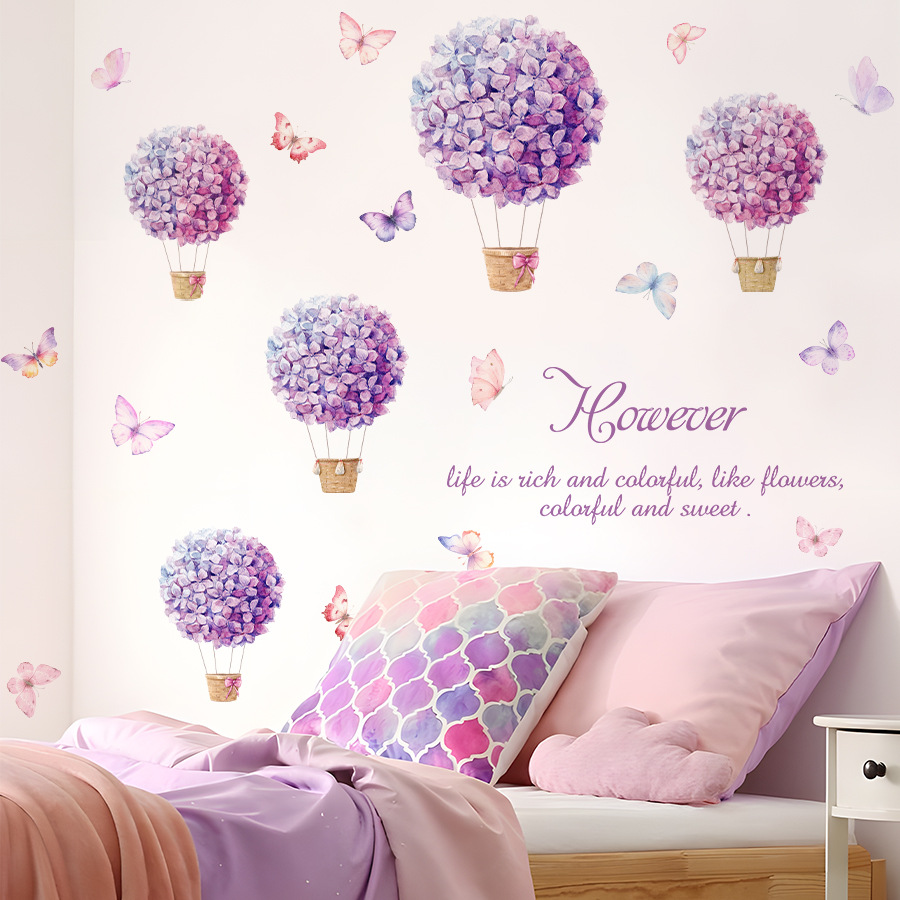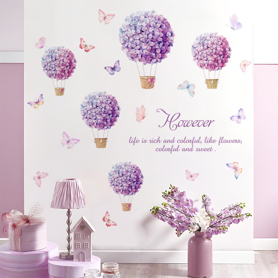 BR3497H 창조적 인 수국 꽃 바구니 나비 페인트 자체 접착 벽 스티커 침실 연구 어린이 방 장식 스티커스토어 가기