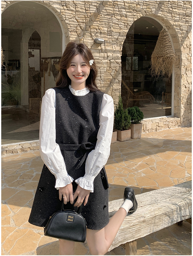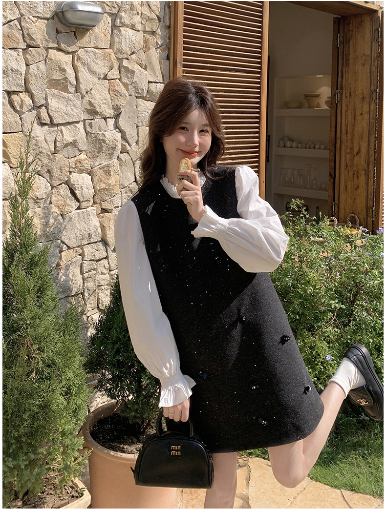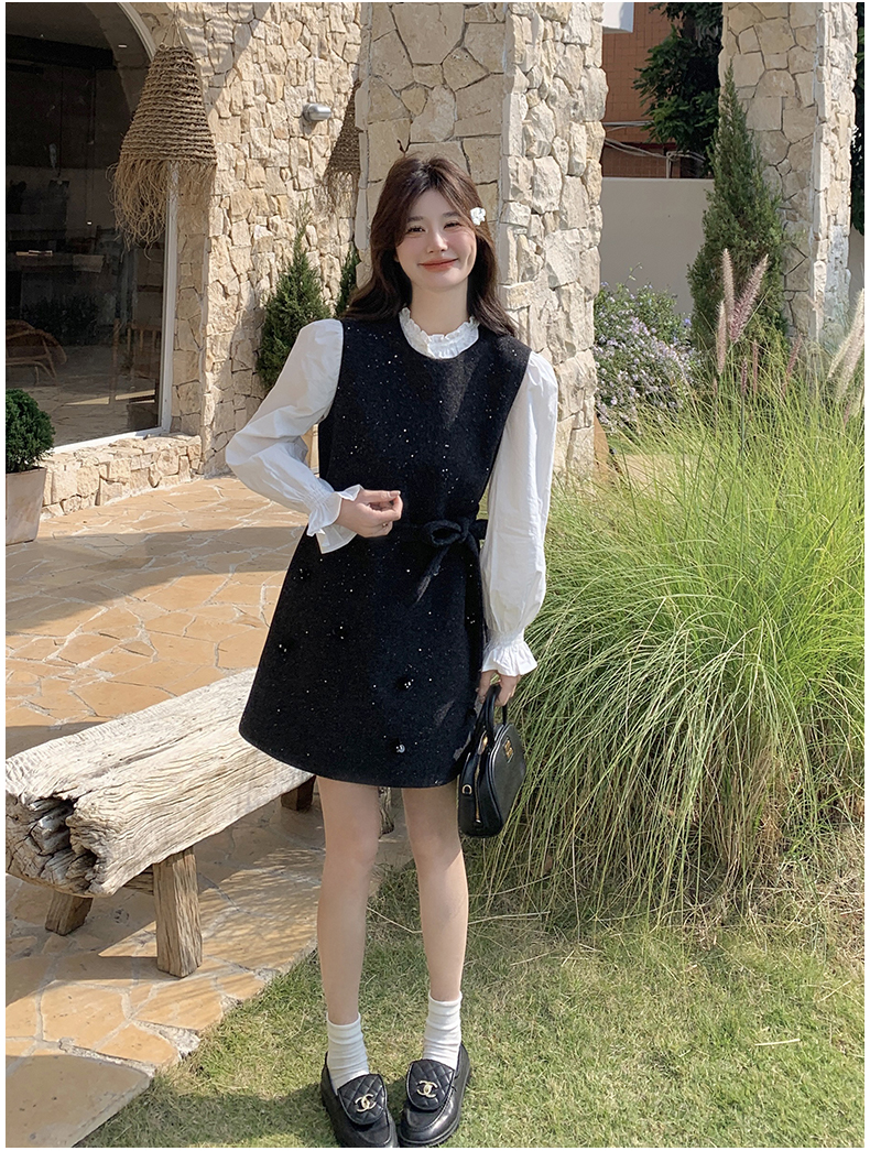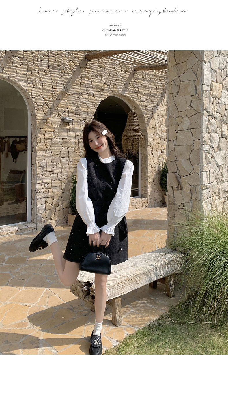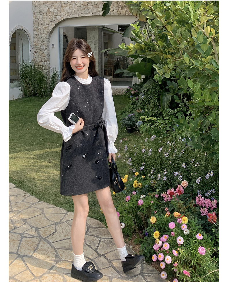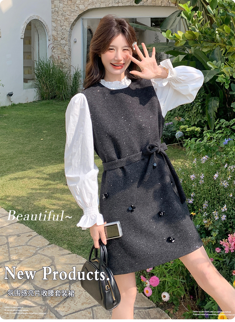 프랑스 스타일 원피스 세트 2025 봄 새로운 부자 가족 딸 스팽글 조끼 스커트 셔츠 투피스 세트