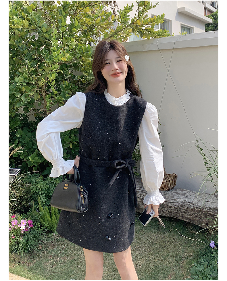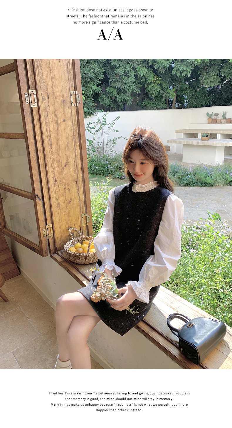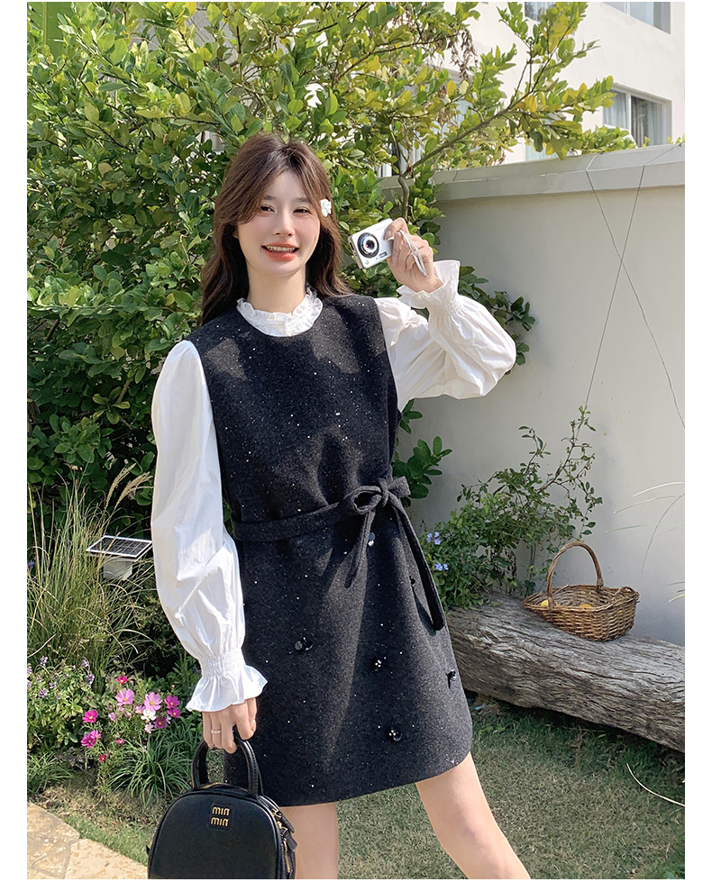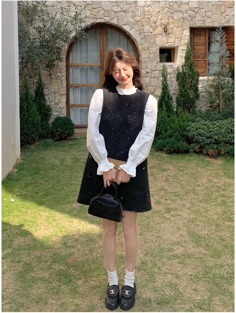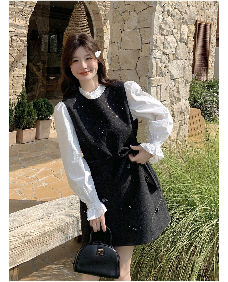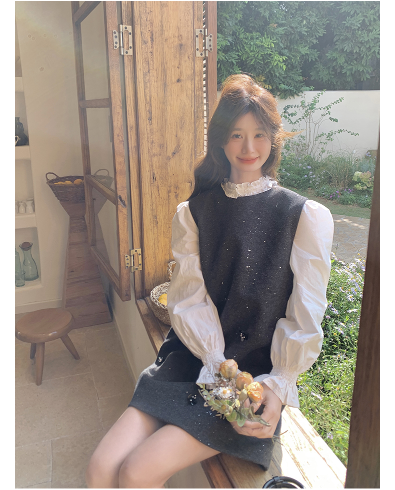 프랑스 스타일 원피스 세트 2025 봄 새로운 부자 가족 딸 스팽글 조끼 스커트 셔츠 투피스 세트