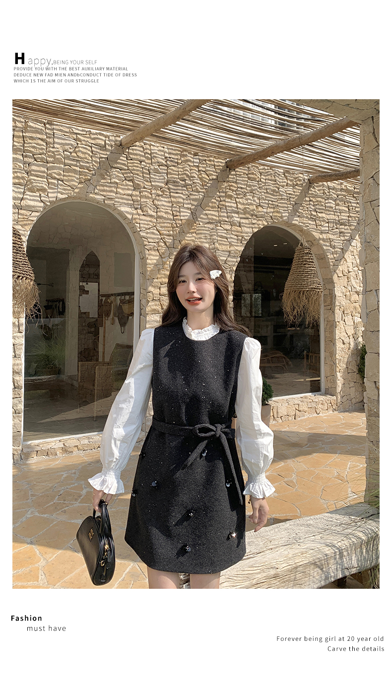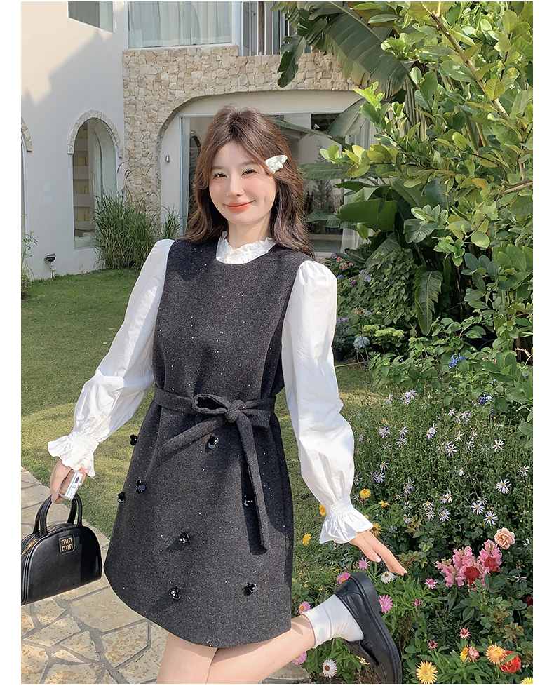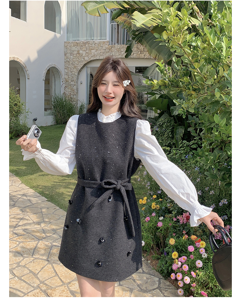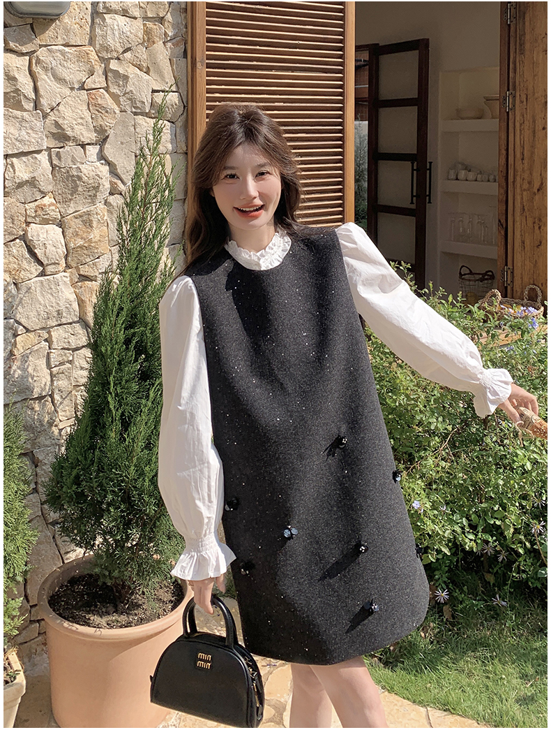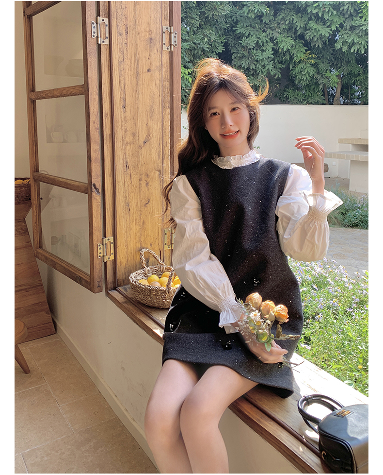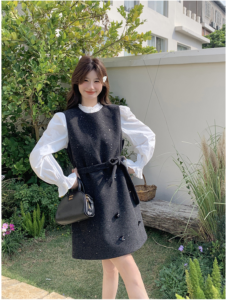 프랑스 스타일 원피스 세트 2025 봄 새로운 부자 가족 딸 스팽글 조끼 스커트 셔츠 투피스 세트