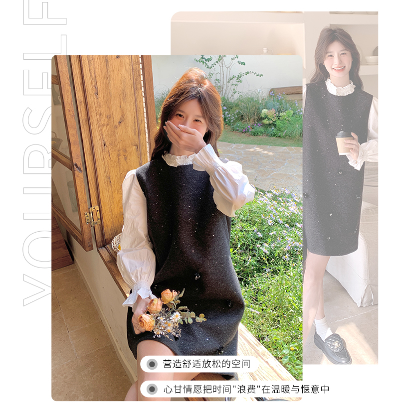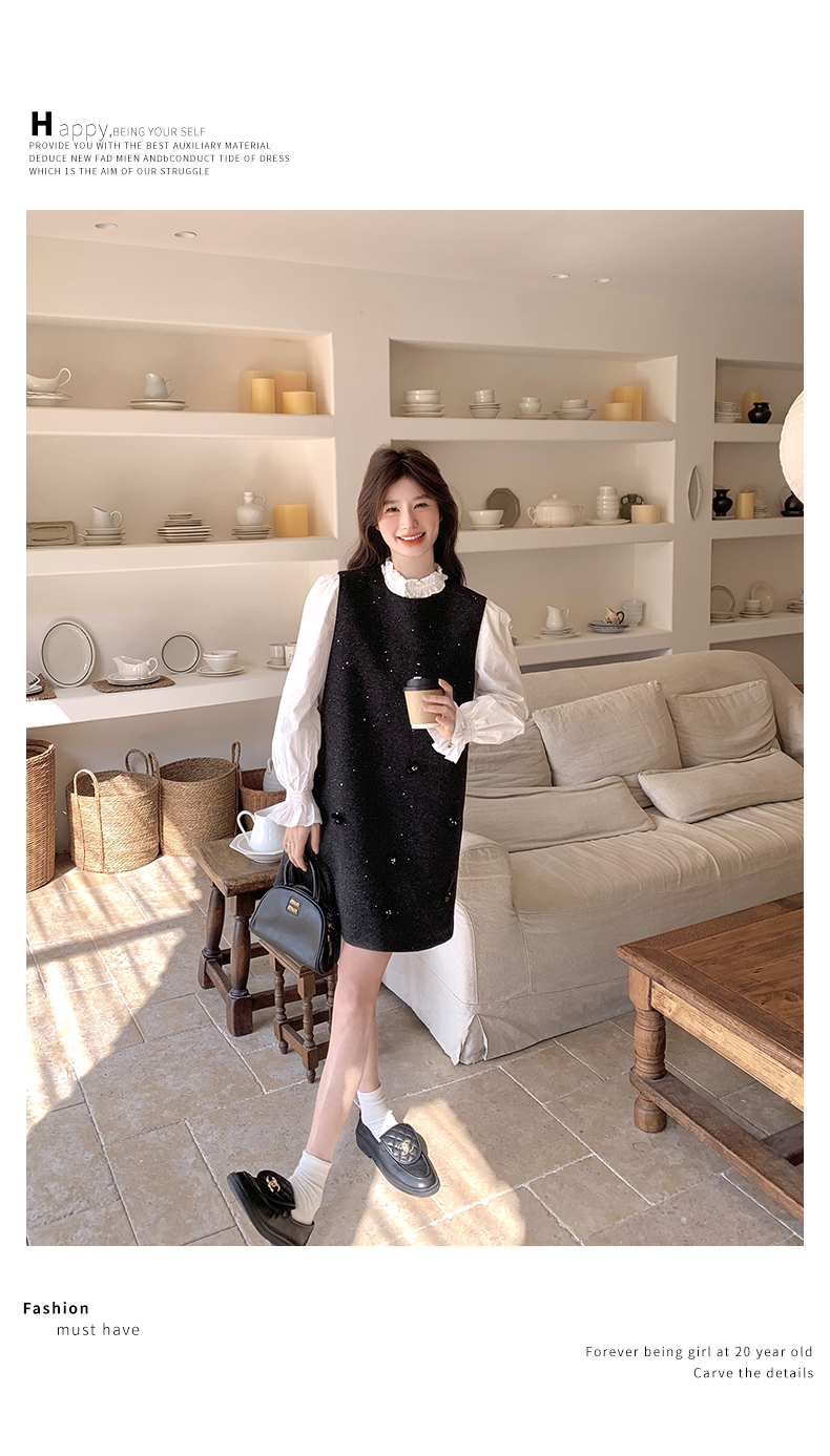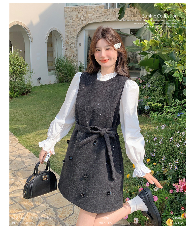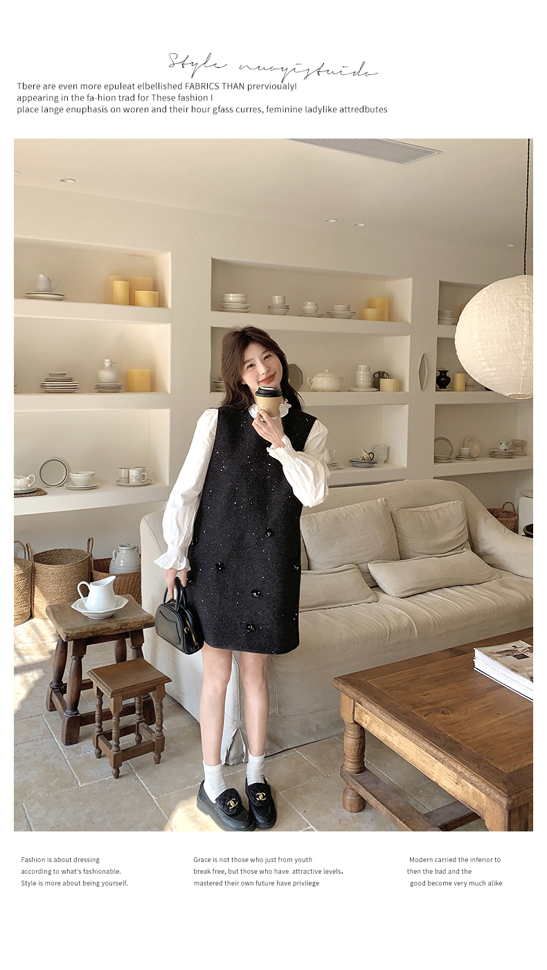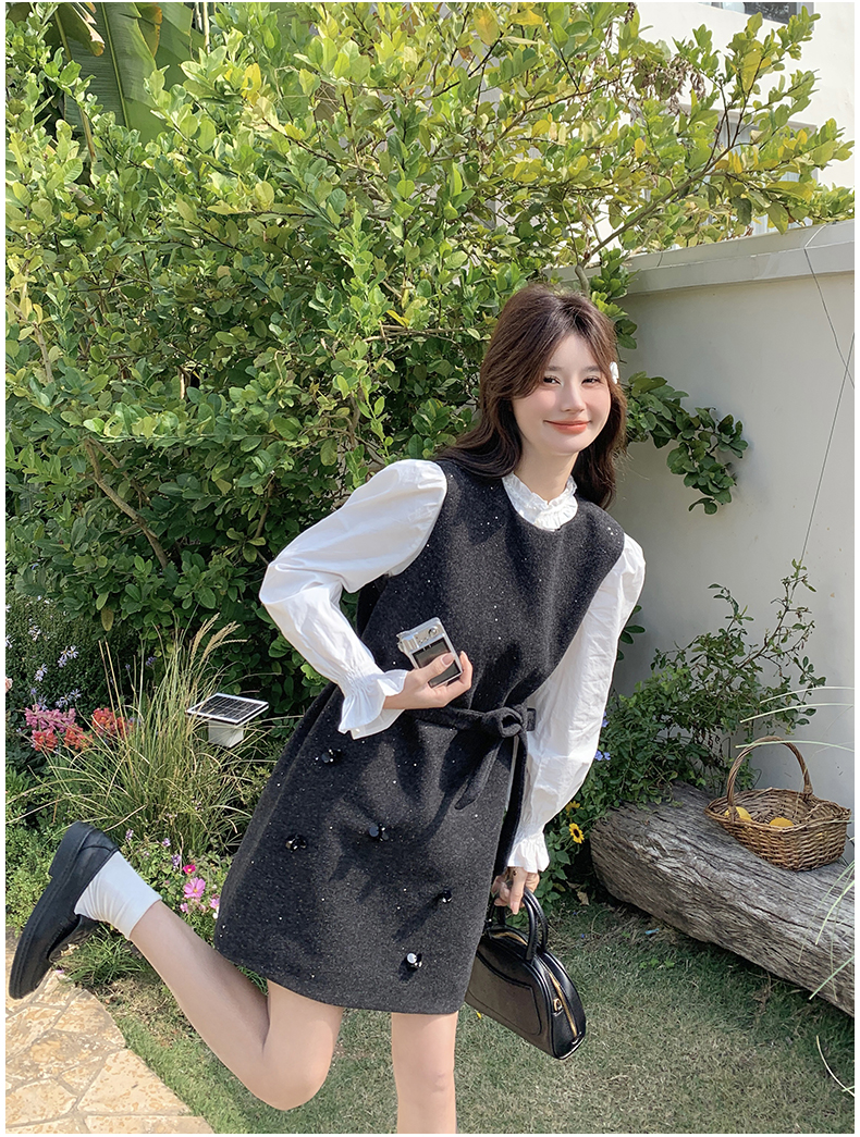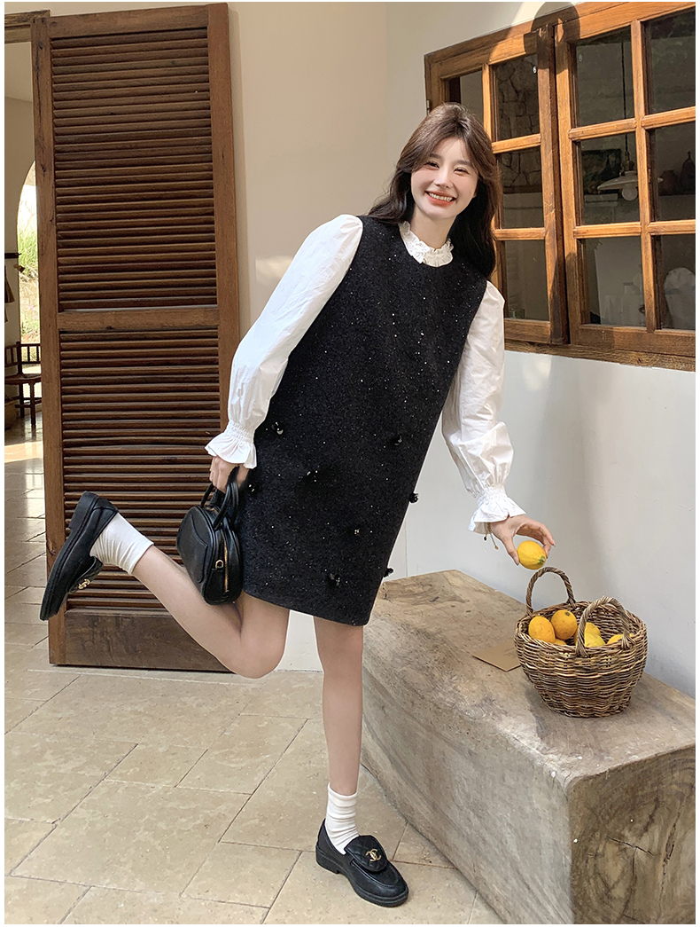 프랑스 스타일 원피스 세트 2025 봄 새로운 부자 가족 딸 스팽글 조끼 스커트 셔츠 투피스 세트