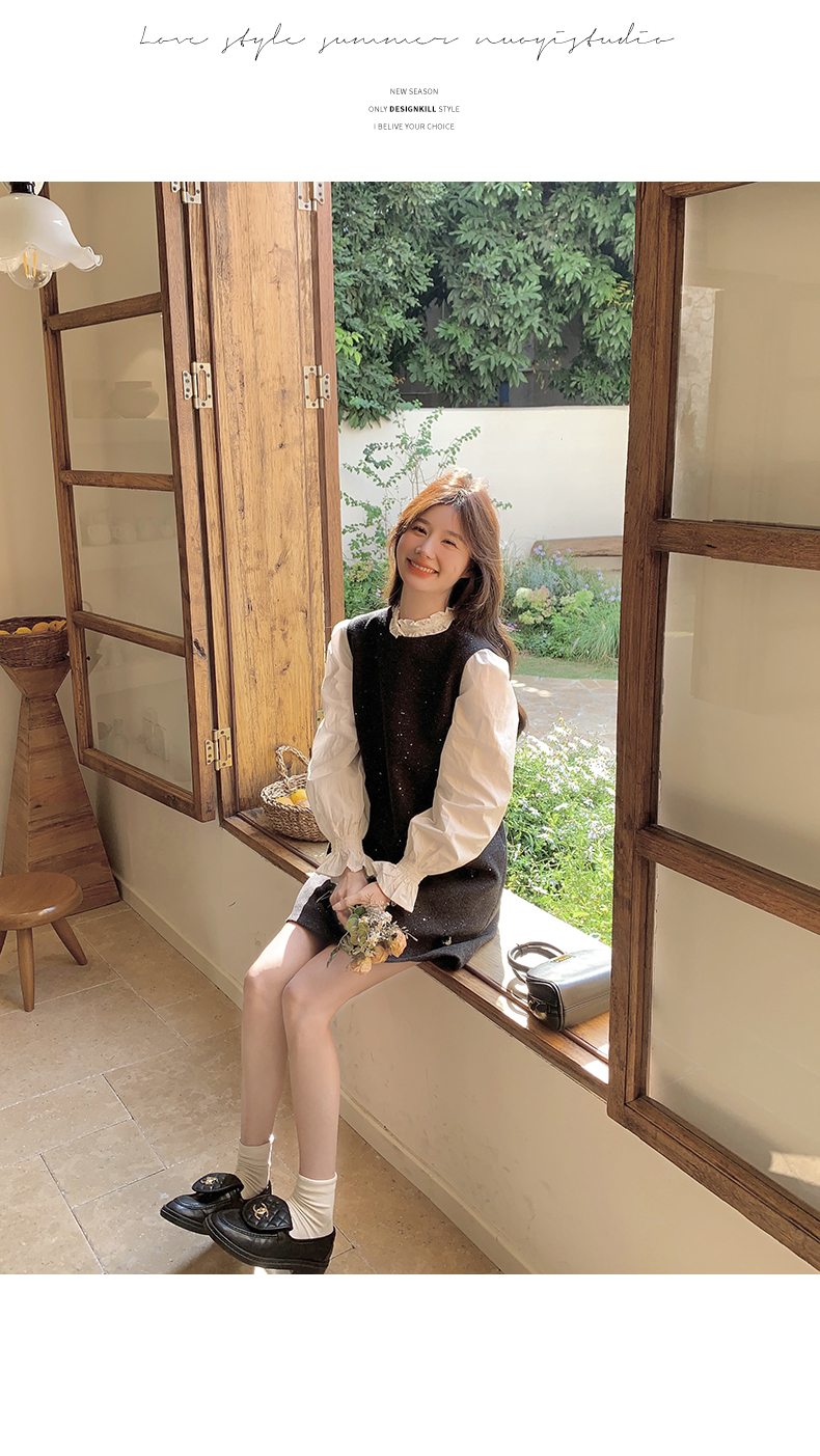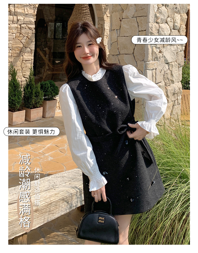 프랑스 스타일 원피스 세트 2025 봄 새로운 부자 가족 딸 스팽글 조끼 스커트 셔츠 투피스 세트스토어 가기