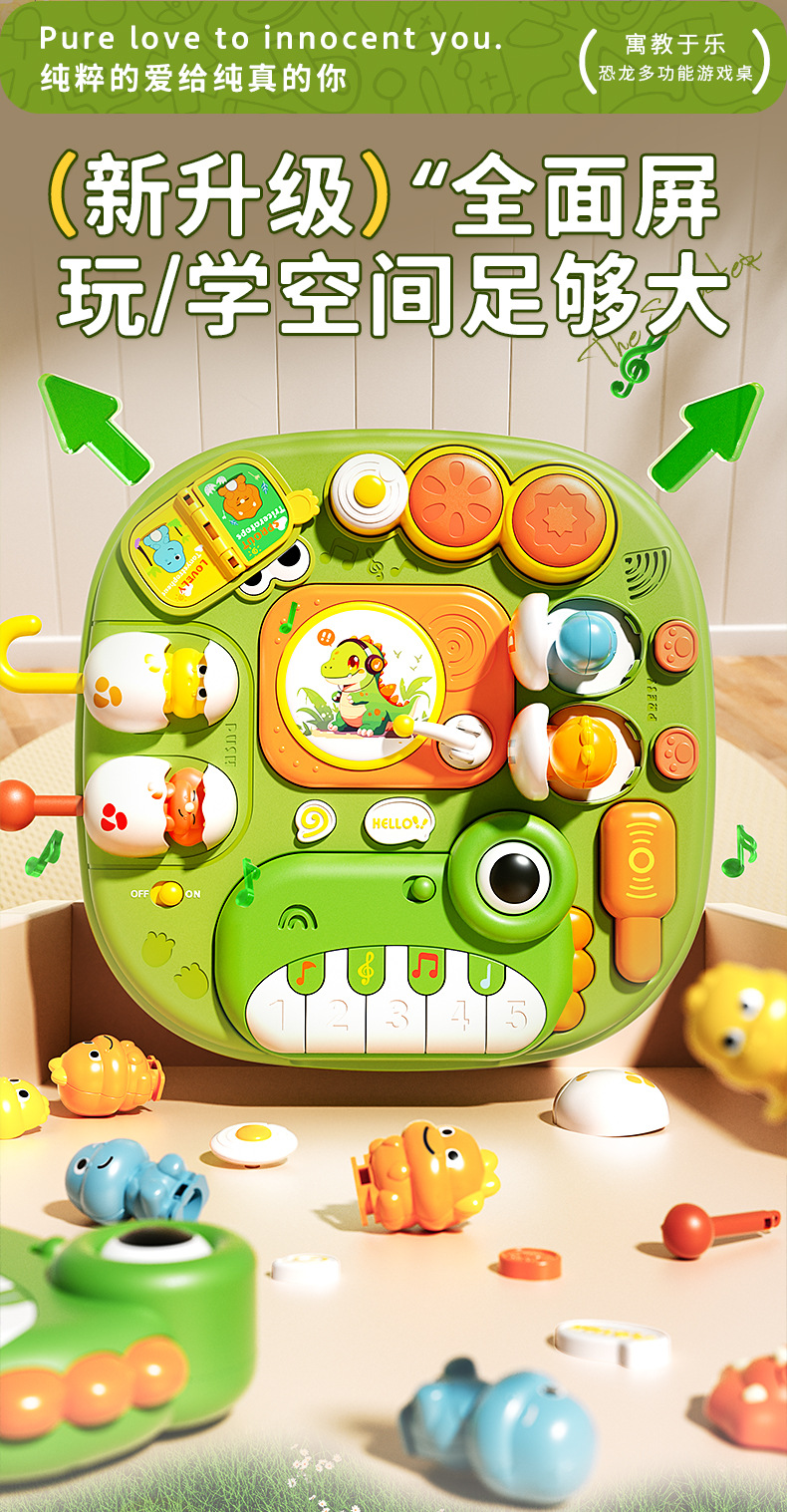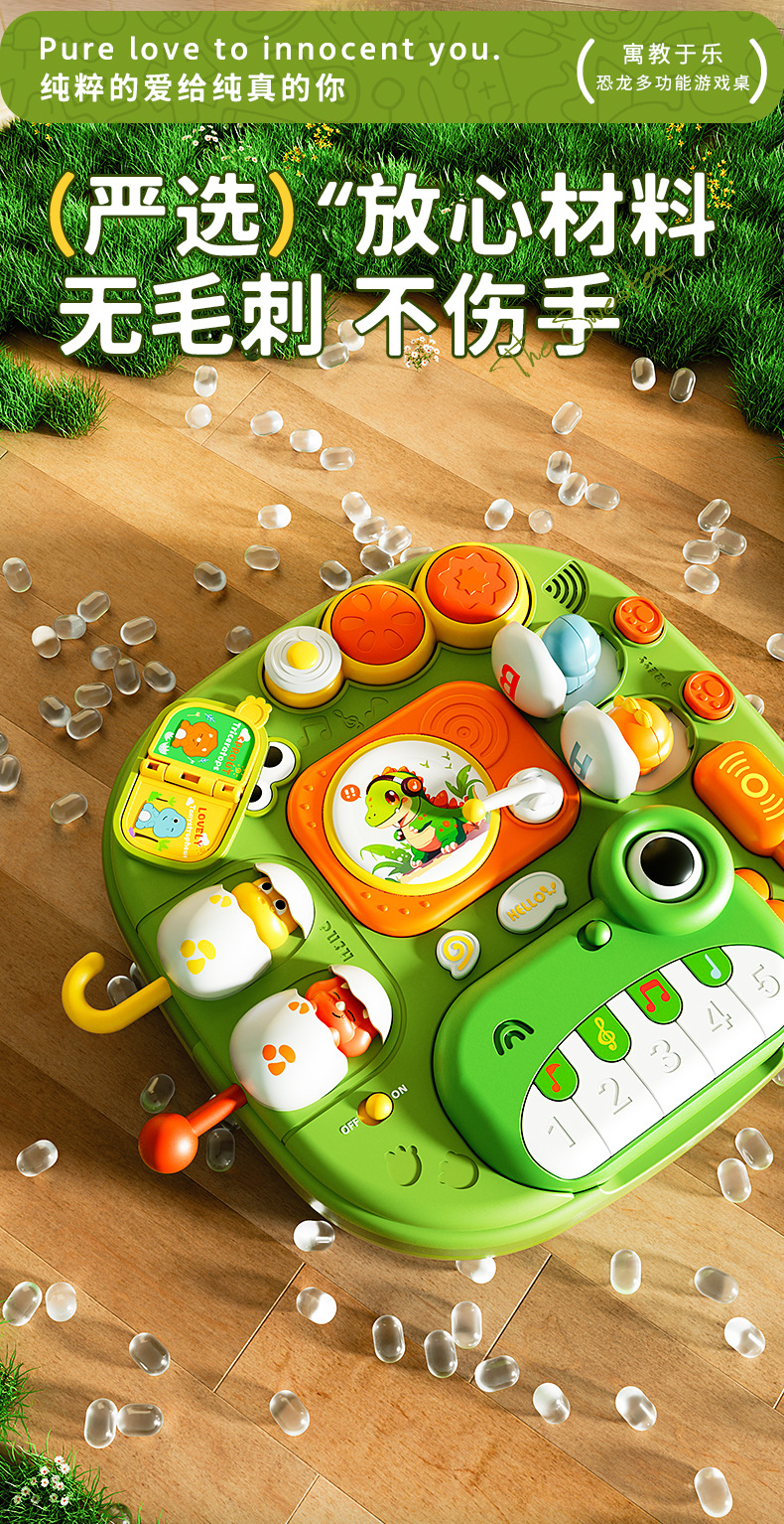 국경 간 유아 다기능 게임 테이블 유아 장난감 어린이 공룡 피아노 소리와 가벼운 음악 소년과 소녀 장난감스토어 가기