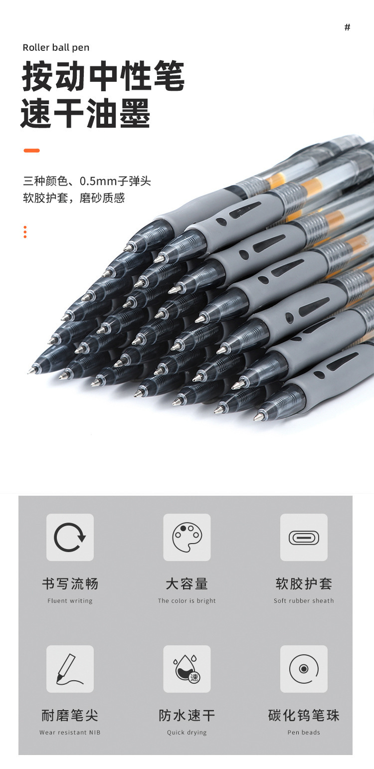 공장 도매 학생 프레스 젤 펜 0.5 물 펜 둥근 구슬 프레스 문구 시험 사무실 쓰기 펜
