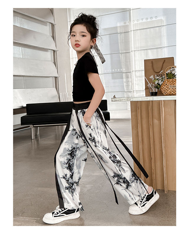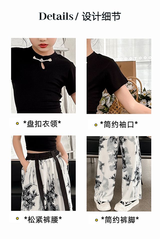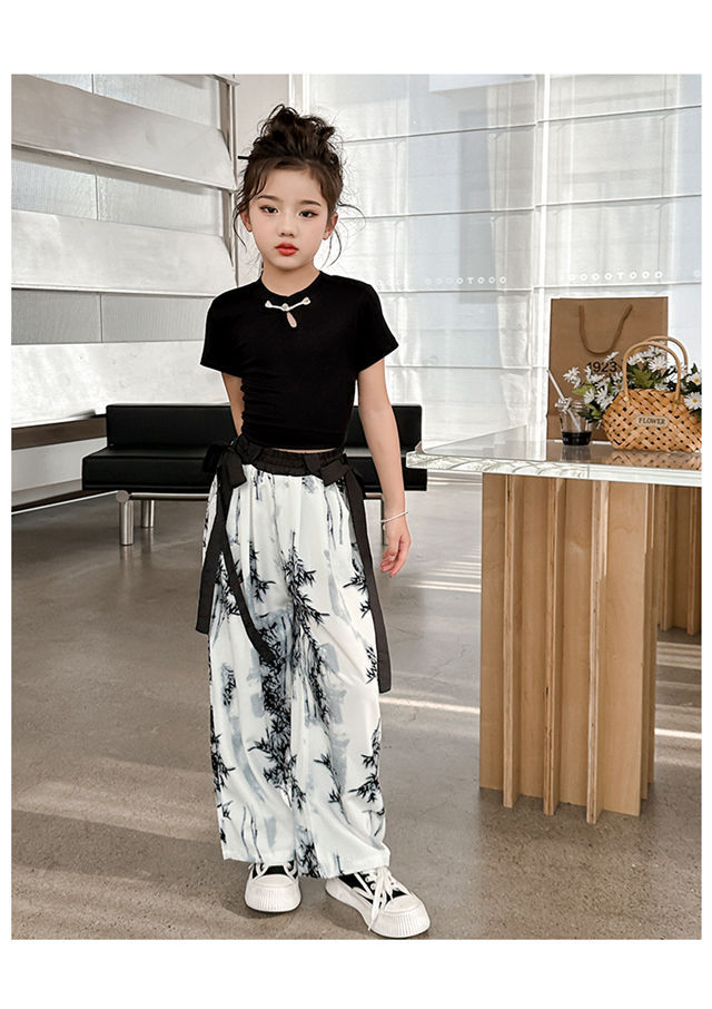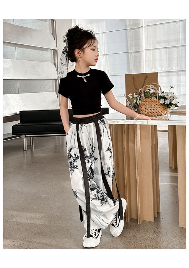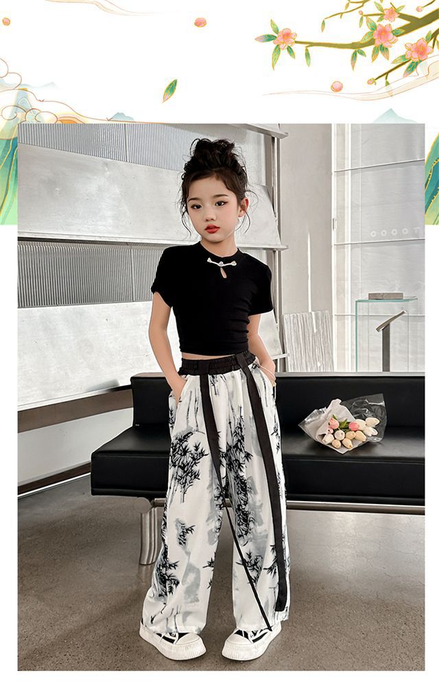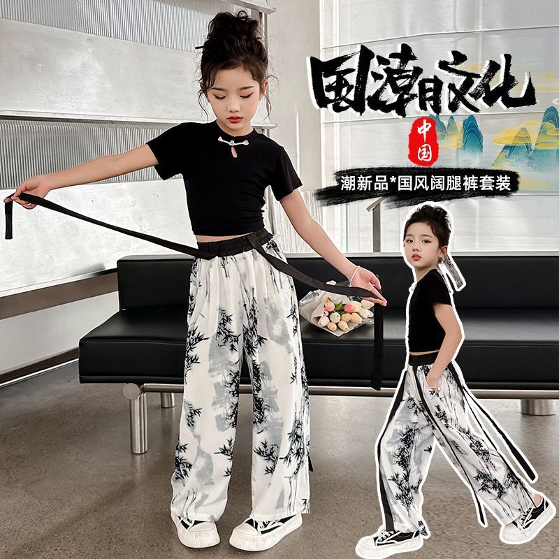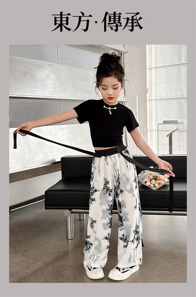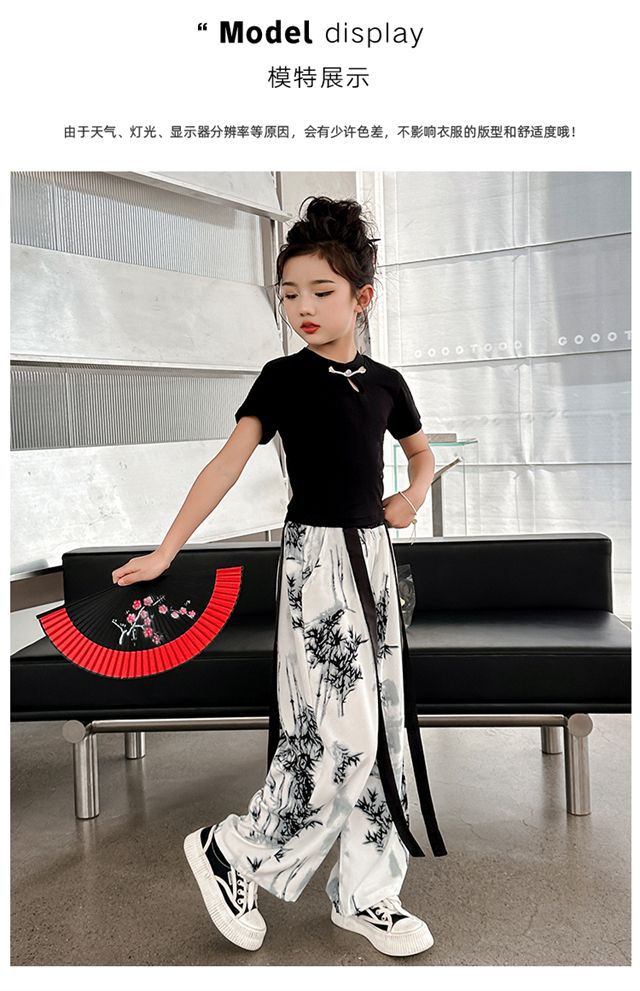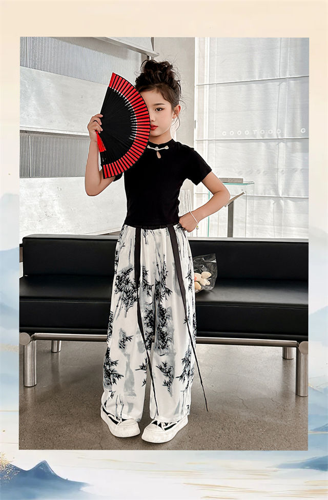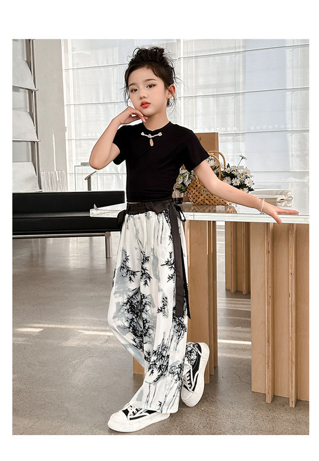 소녀 중국 잉크 그림 중국 스타일 넓은 다리 바지 중국 스타일 세트 새로운 여름 서양 스타일 어린이 투피스 세트스토어 가기