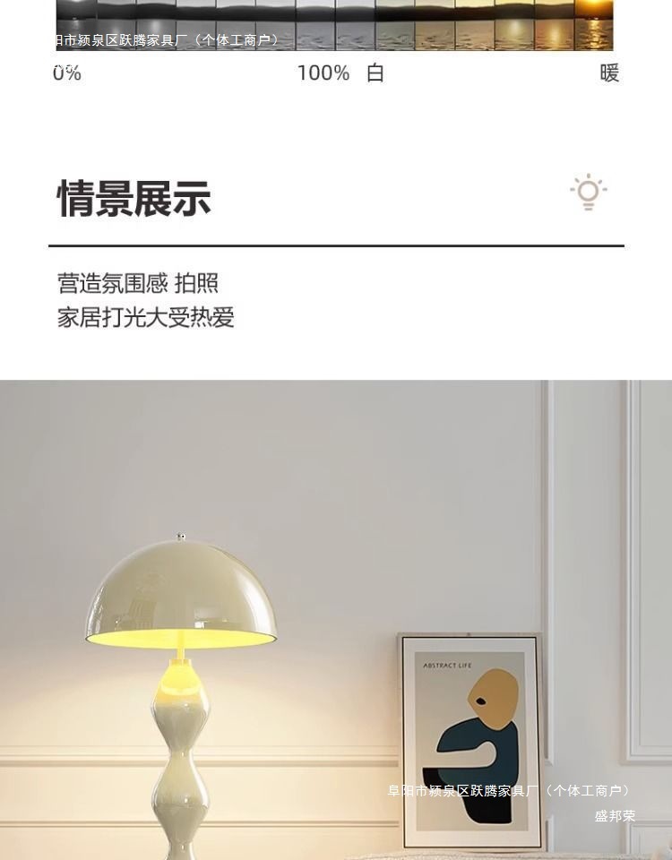 크림 스타일 중간 고대 버섯 바닥 램프 북유럽 거실 소파 고급 고급 인터넷 인기 있는 인터넷 플로어 램프스토어 가기