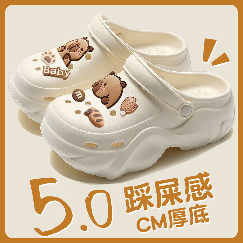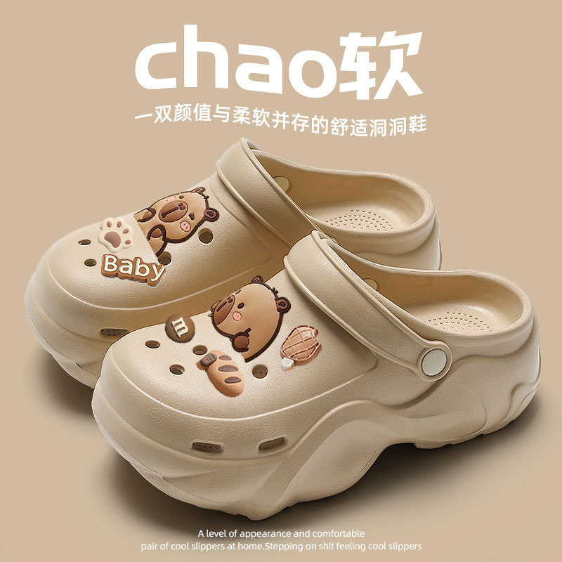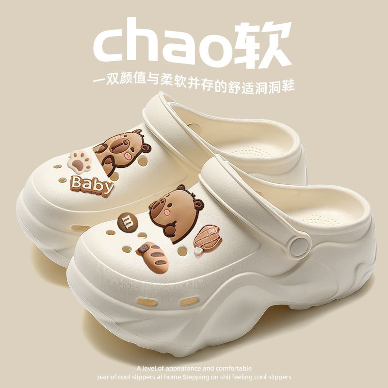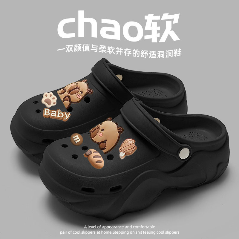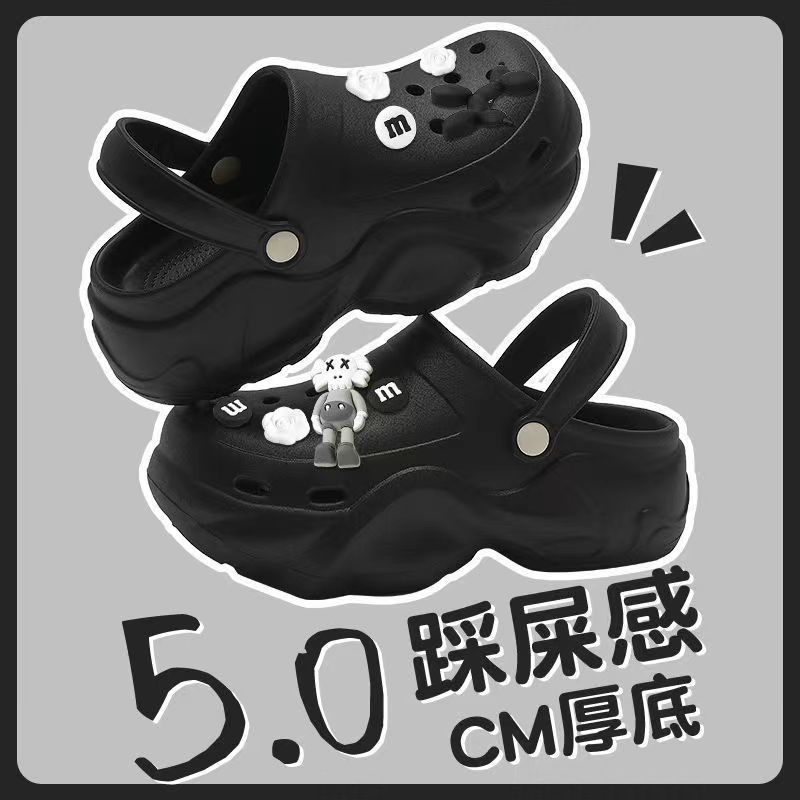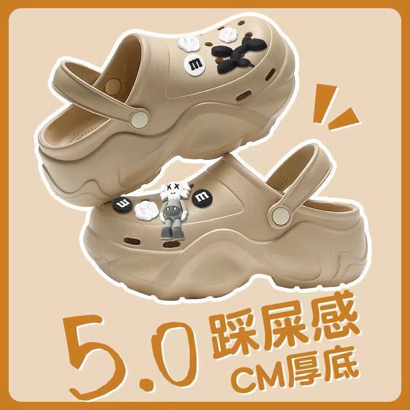 두꺼운 밑창 구멍 신발 여성의 여름 2025 새로운 온라인 유명 인사 공주가 머리를 덮고 여성을위한 귀여운 샌들 슬리퍼를 느끼고 배설물을 밟았습니다.스토어 가기